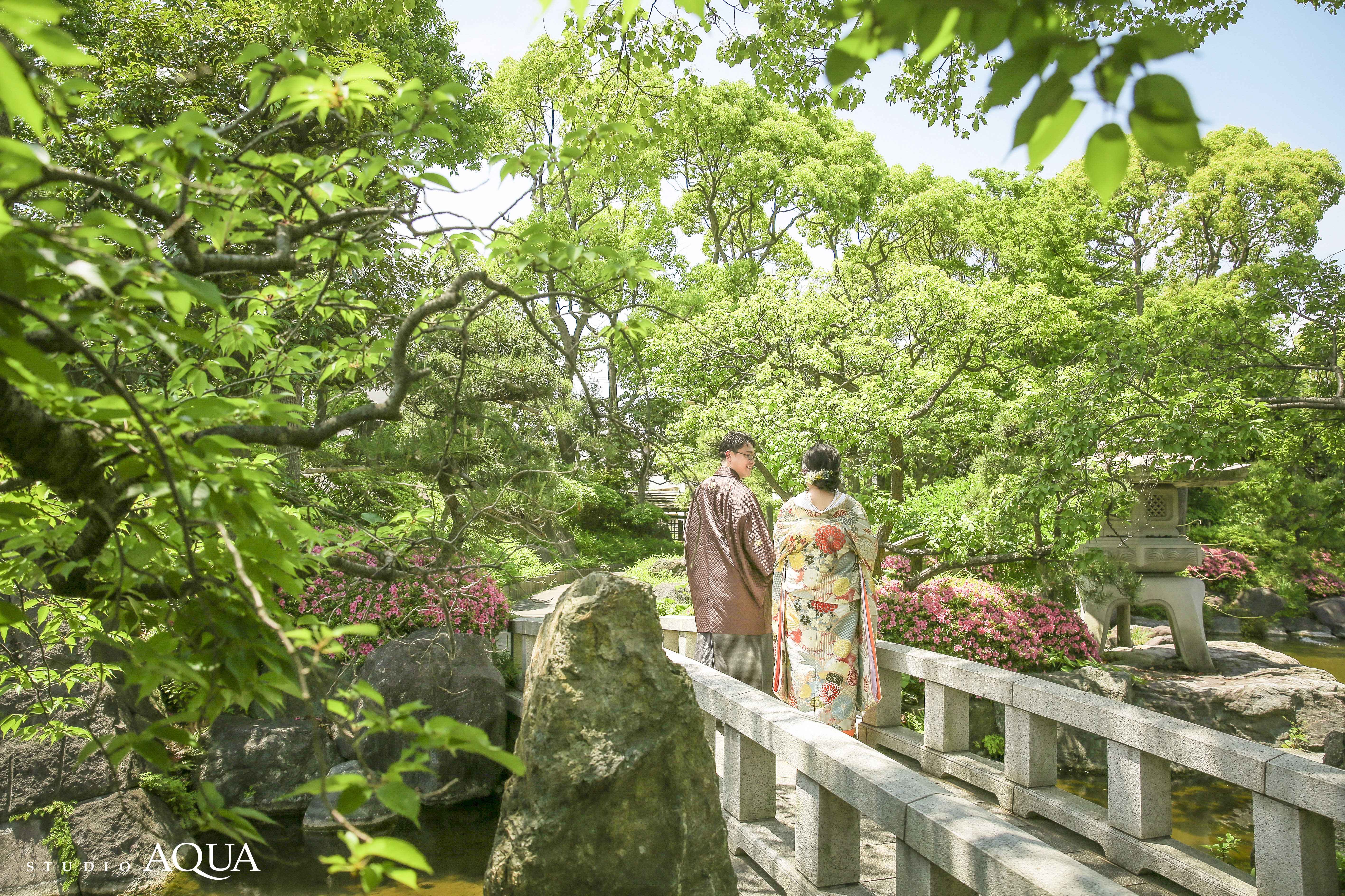 本格日本庭園を再現したスタジオで撮る 和装の結婚写真