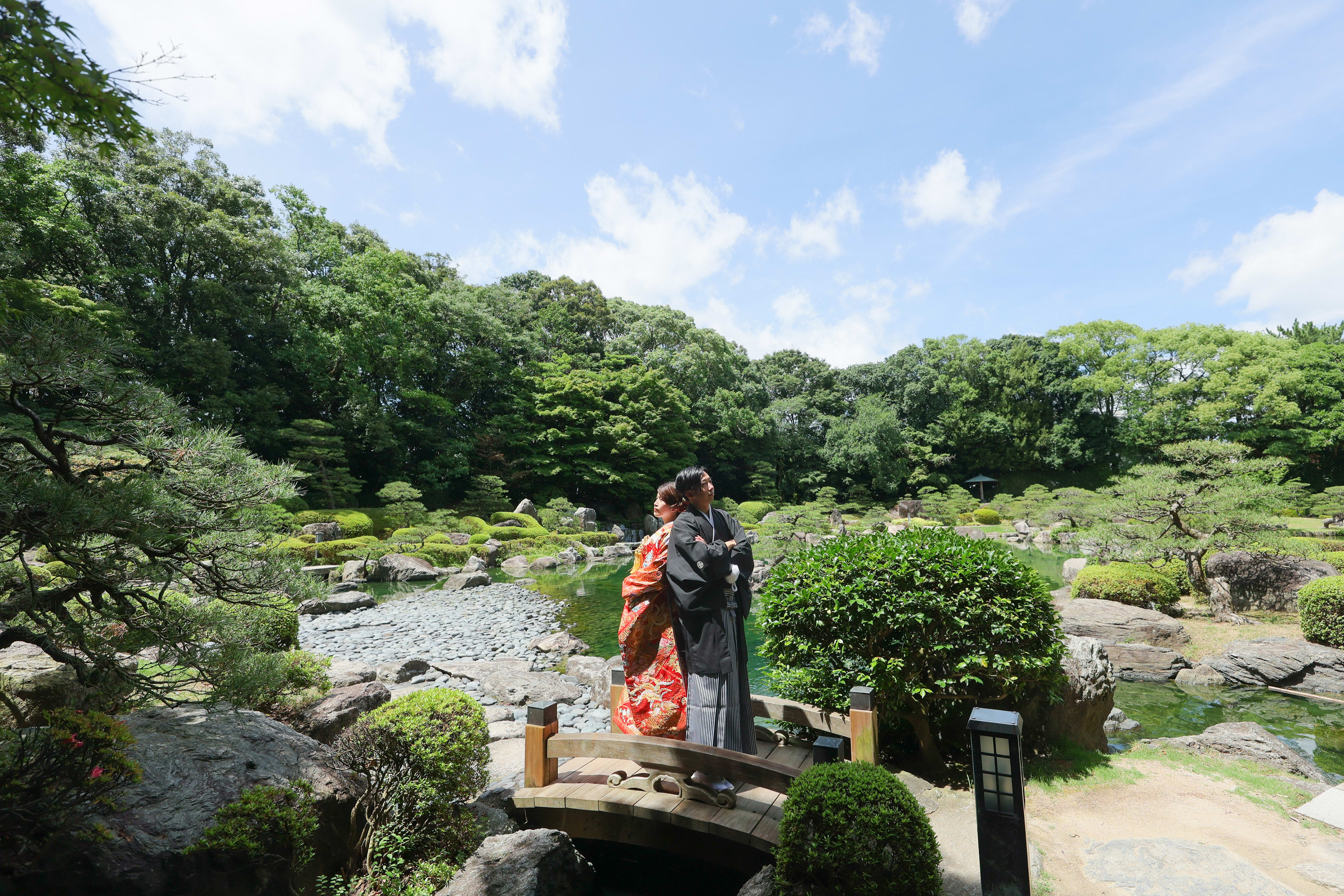 本格日本庭園を再現したスタジオで撮る 和装の結婚写真