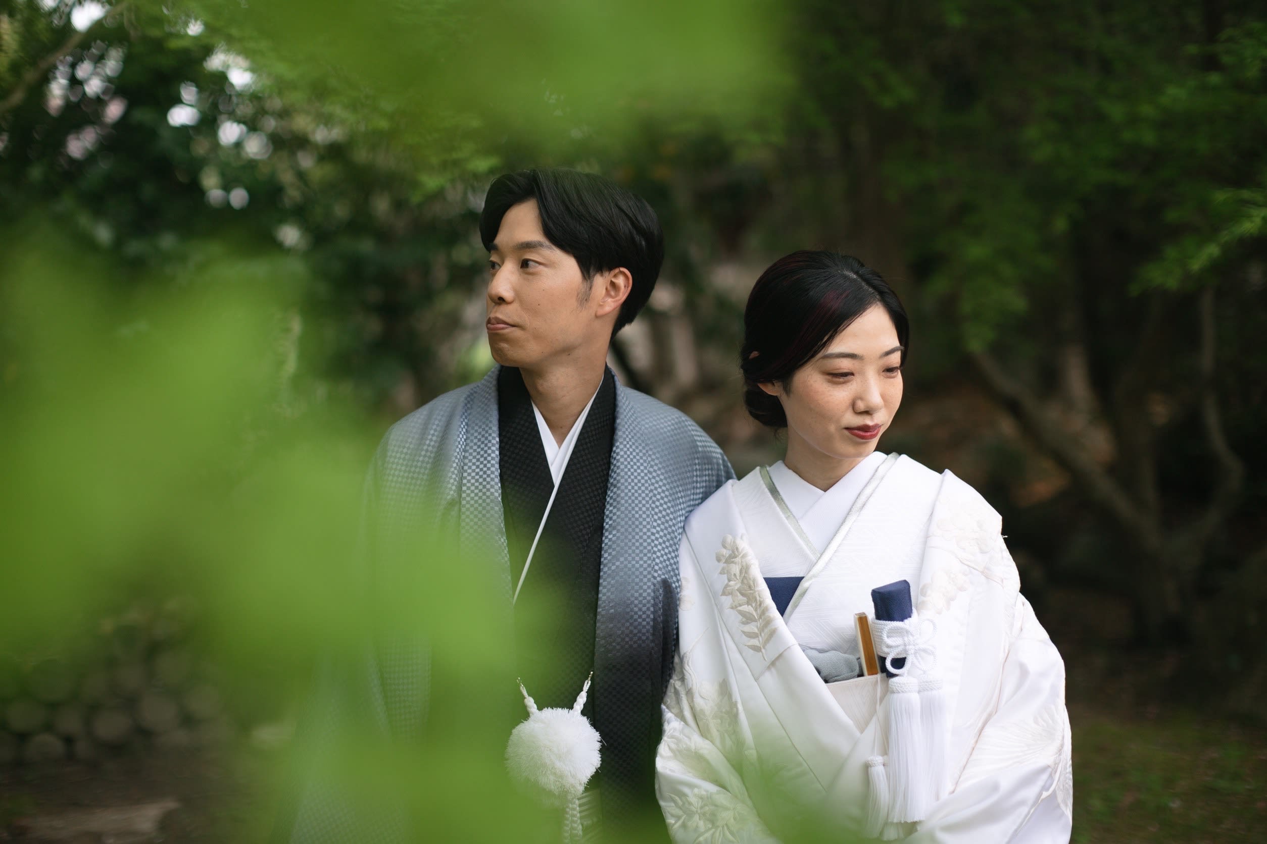 本格日本庭園を再現したスタジオで撮る 和装の結婚写真