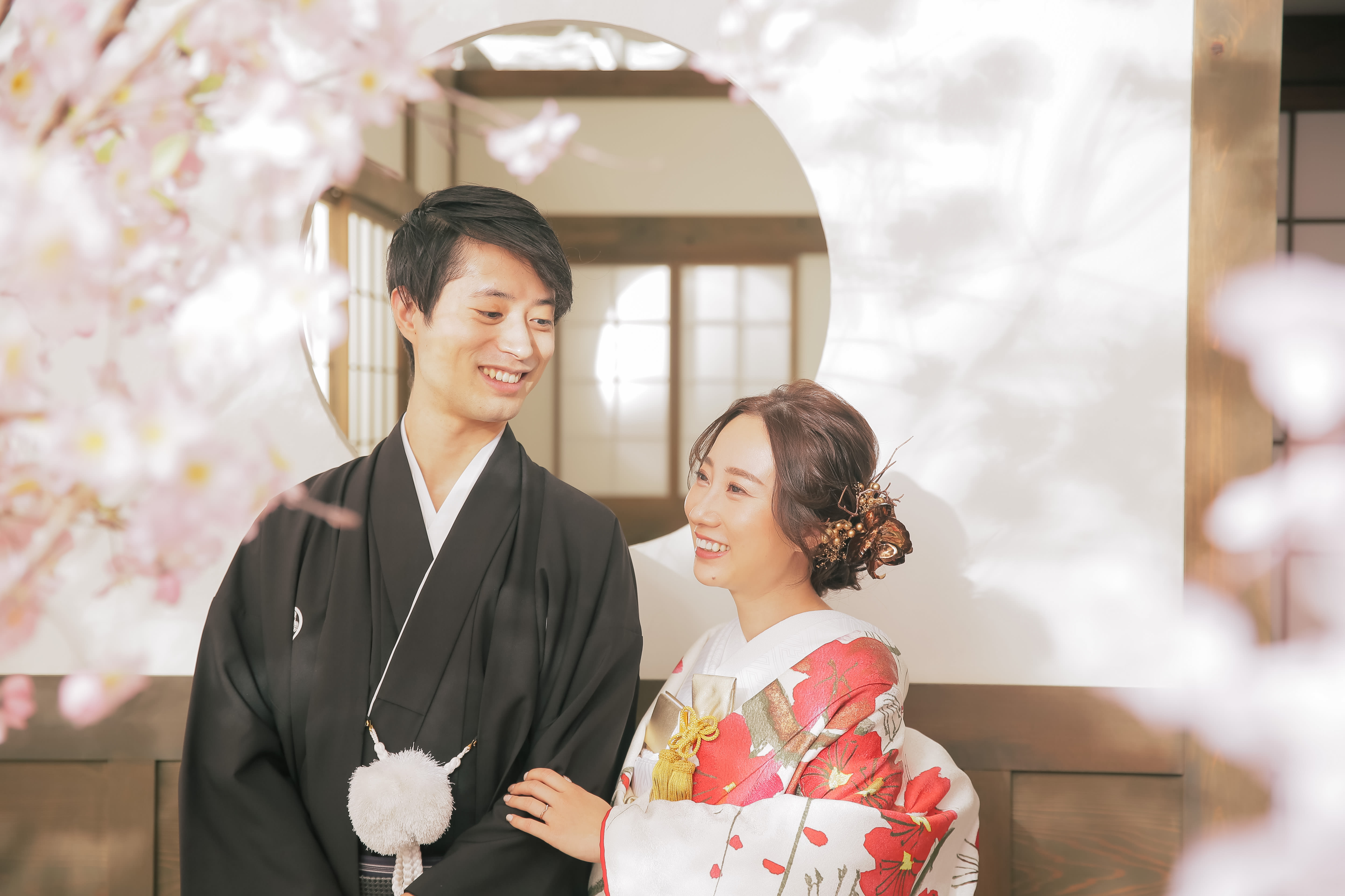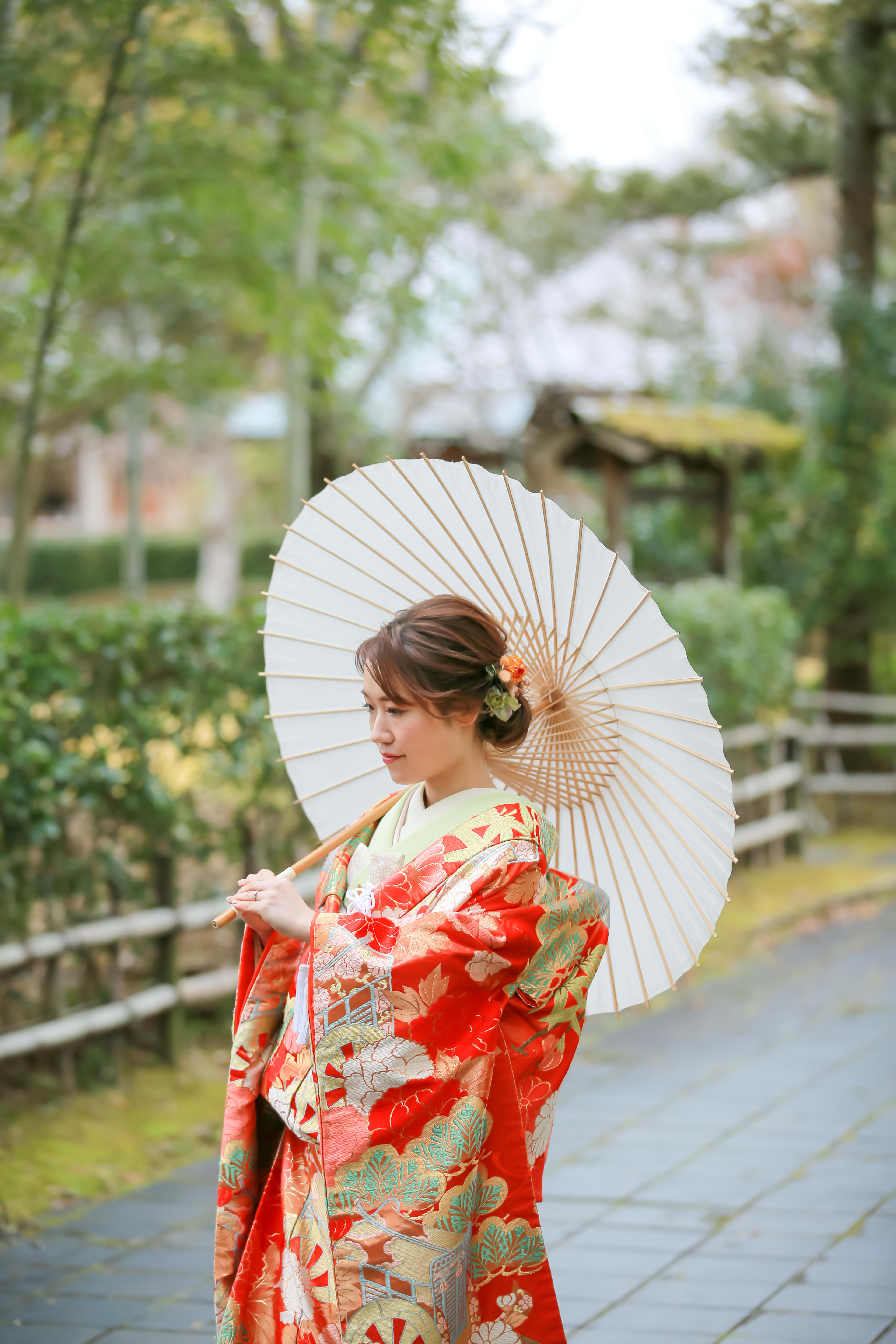 本格日本庭園を再現したスタジオで撮る 和装の結婚写真
