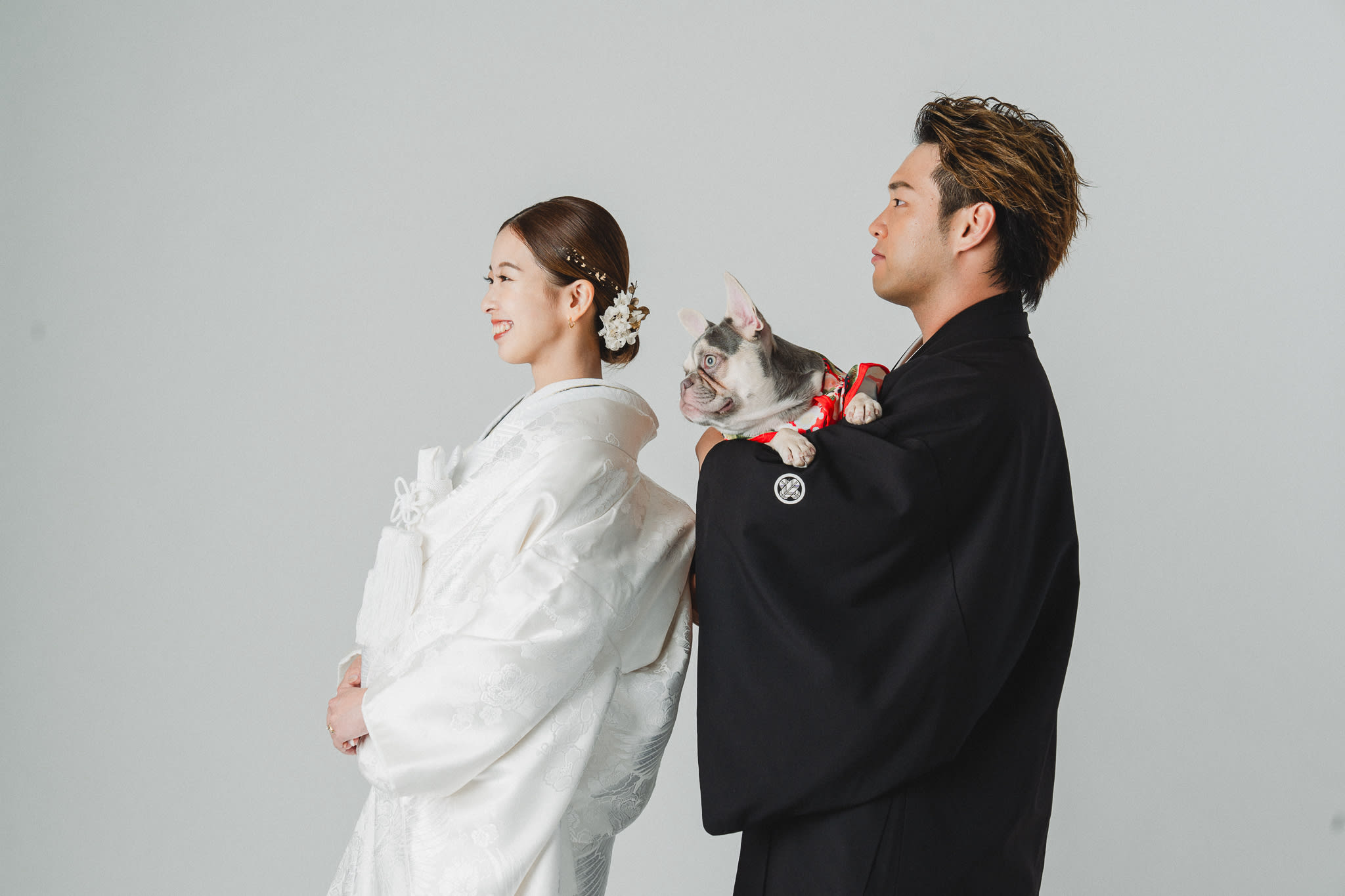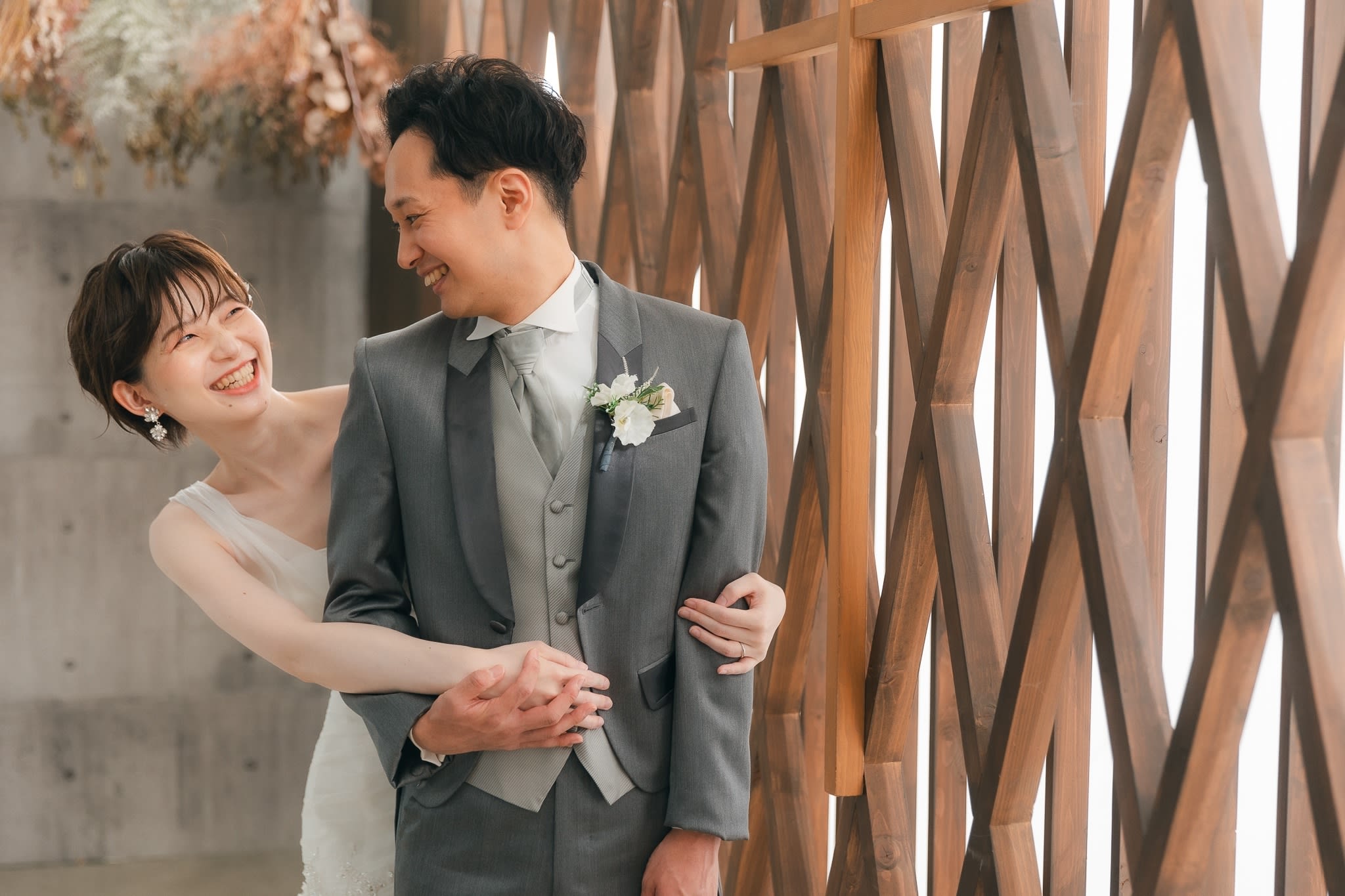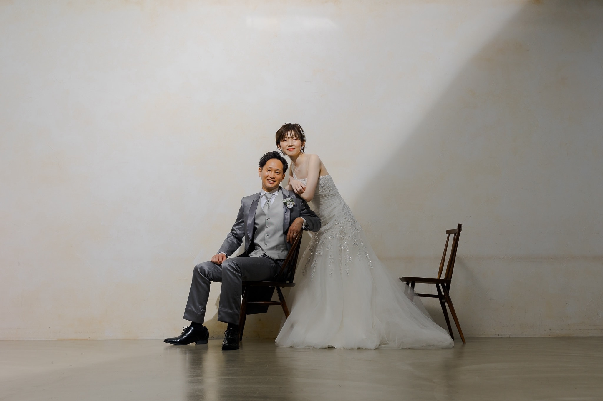 シンプルな背景で、おふたりの幸せな表情を主役にした一枚を