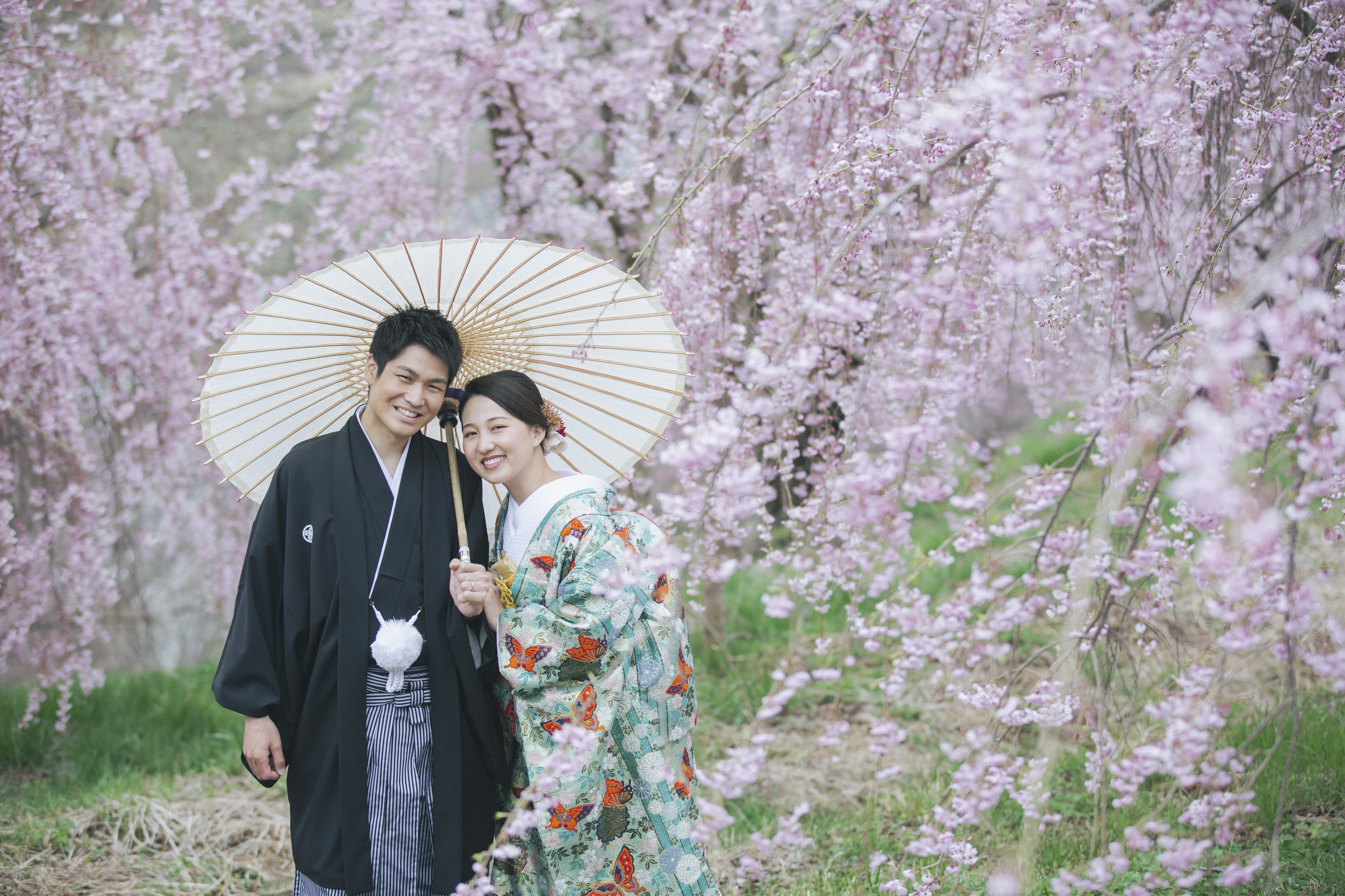 本格日本庭園を再現したスタジオで撮る 和装の結婚写真