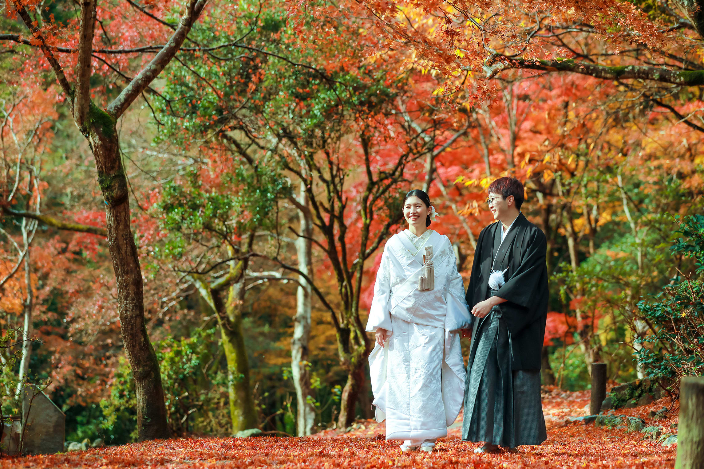 本格日本庭園を再現したスタジオで撮る 和装の結婚写真