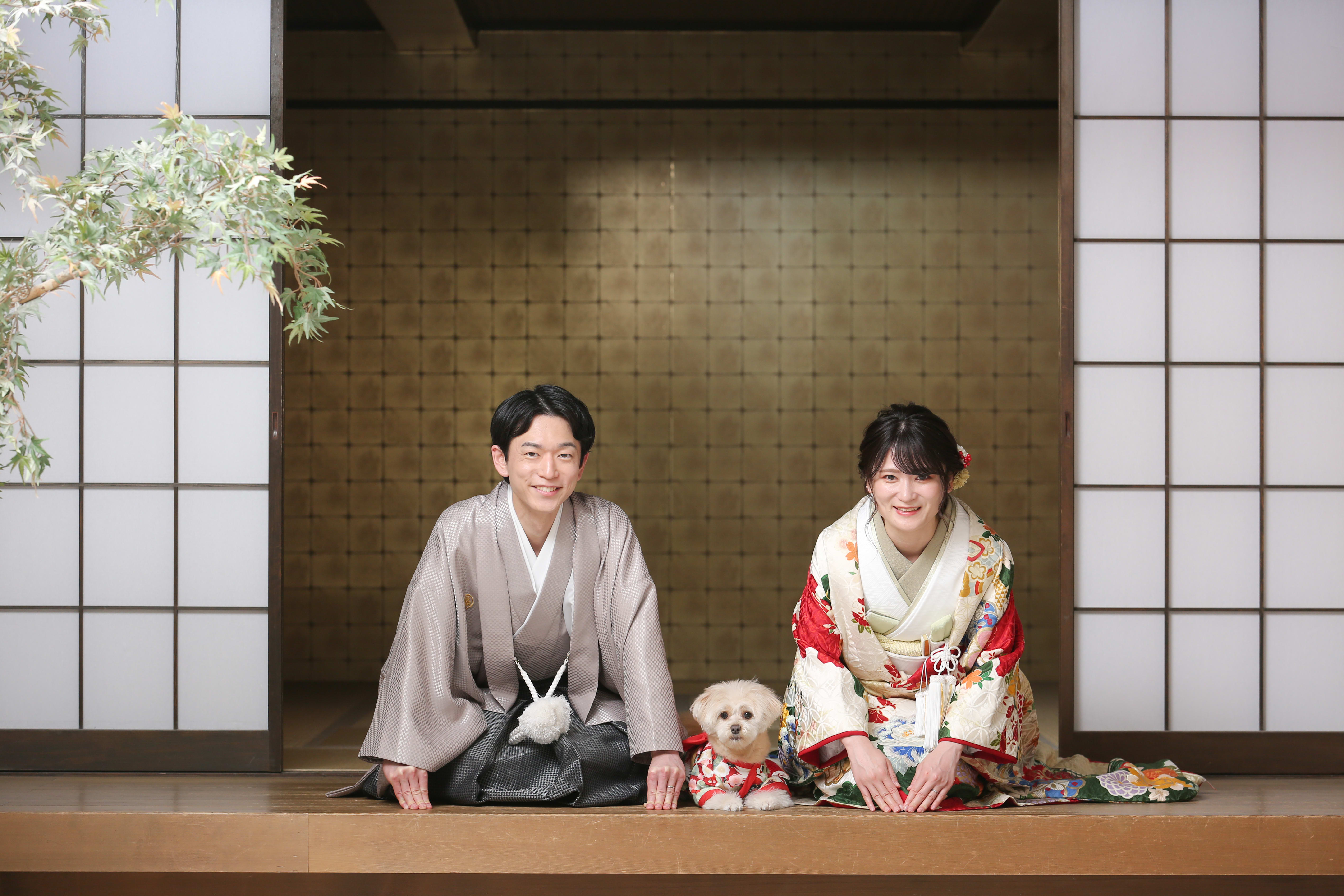 本格日本庭園を再現したスタジオで撮る 和装の結婚写真