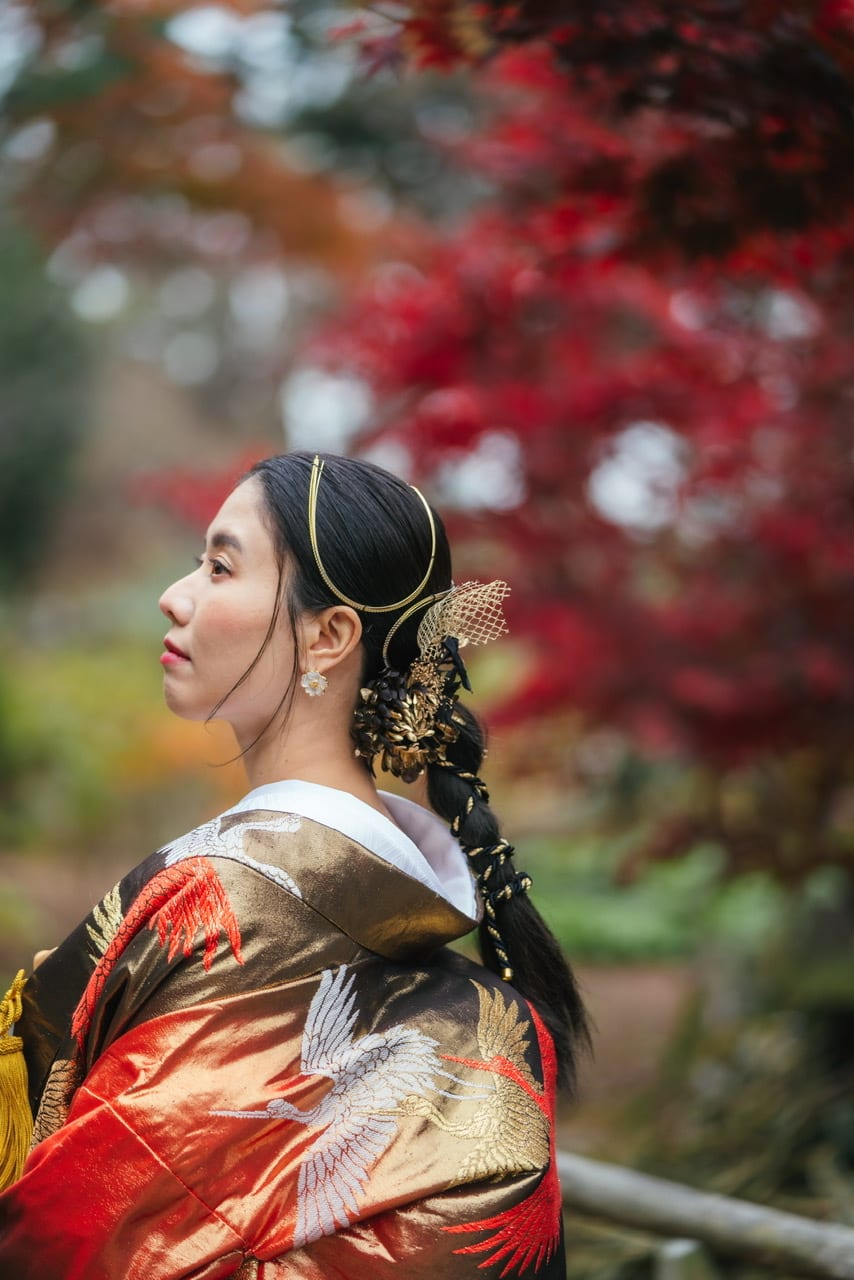 本格日本庭園を再現したスタジオで撮る 和装の結婚写真