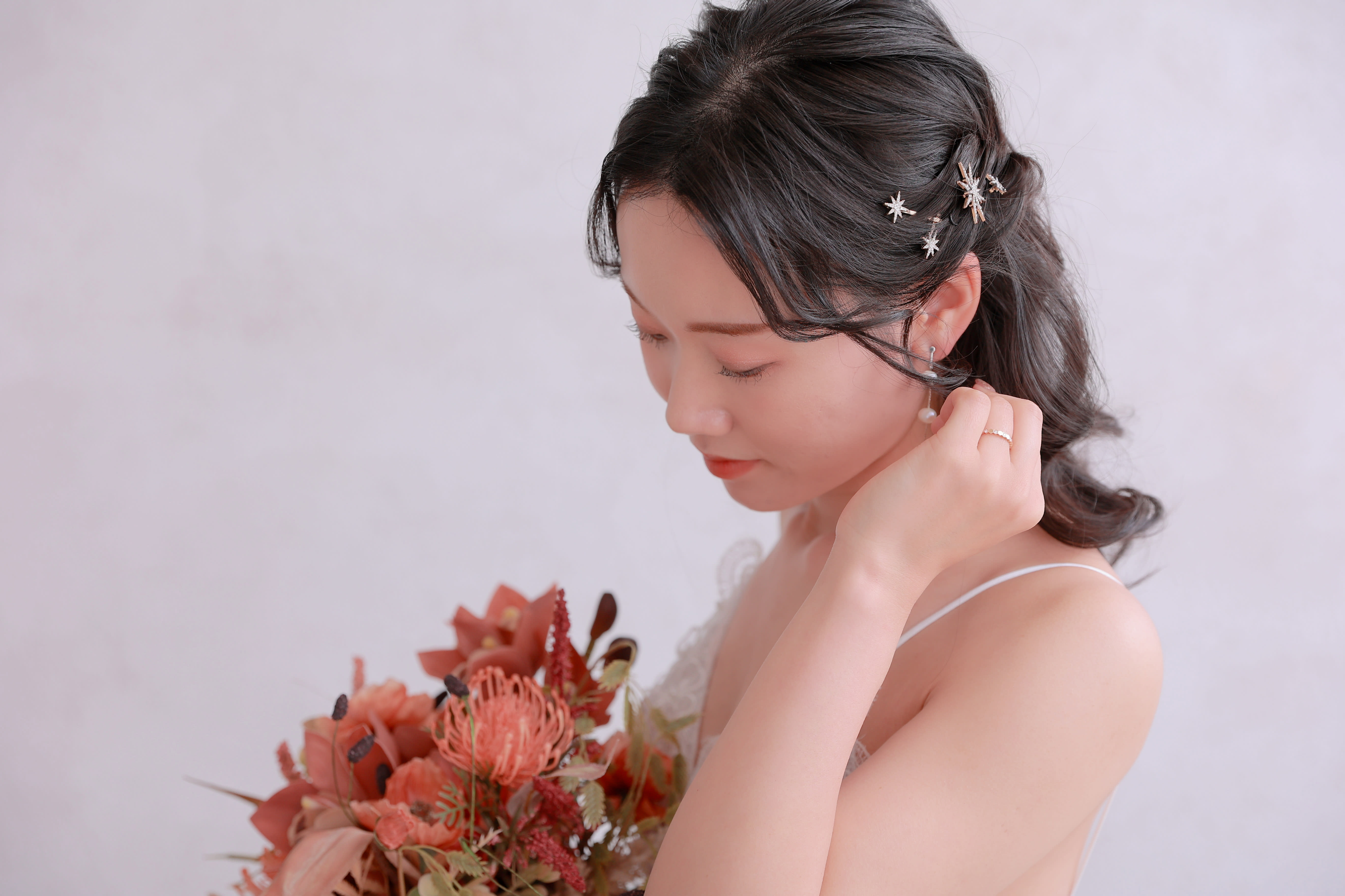 スタジオエイトのキュート担当”きんちゃん”こと金森です🧸💖 得意テイストは”愛されキュート” ご新婦様のかわいらしさを最大限に引き出します! キュートスタイルから大人かわいいまで”かわいい”がお好きな方はぜひお任せ下さい!✨ ヘア:動きのあるふわふわルーズなアレンジ メイク:多幸感あふれるコーラルメイク、愛されピンクメイク、うるちゅや水光メイク コーデ:淡色コーデ、パステルカラー、レース、 お衣装合わせではおふたりのリンクコーデも取り入れています👍✨ おふたりに寄り添った提案を心がけています。 特別な1日がさらに素敵になるよう心を込めてお手伝いいたします!