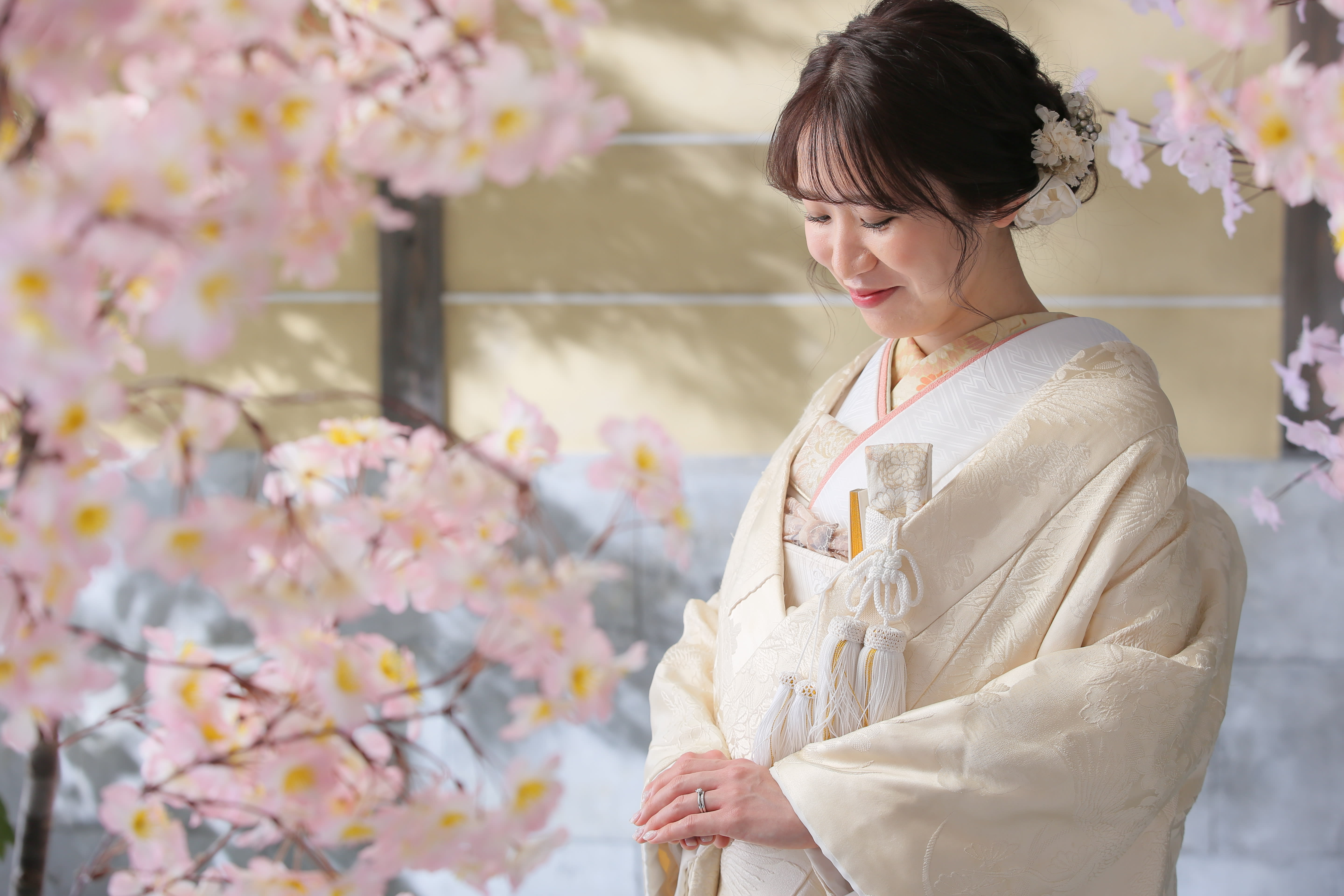 本格日本庭園を再現したスタジオで撮る 和装の結婚写真