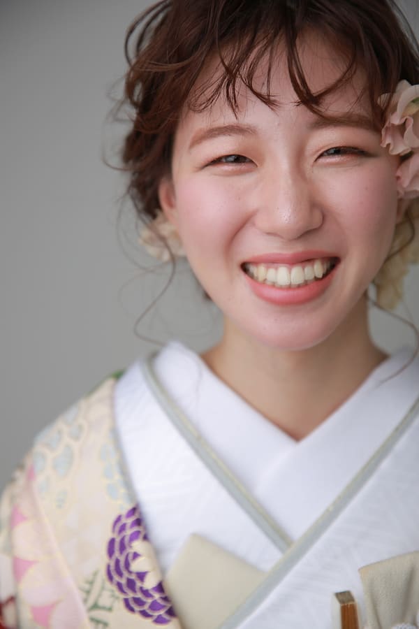 いくつになっても、一生に一度の瞬間を懐かしんでもらいたいから 新婦様に寄り添って、”自分らしさ”を大切にしたご提案を心掛けています🕊️ 衣装合わせから当日まで、楽しい時間を一緒に過ごしていただけたら嬉しいです🙌 美容師として7年の経験を積み、ブライダルの世界に飛び込みたくさんの花嫁さまを担当してきました👰♀️💐 明るく親しみやすい性格なので、どんなことでも気軽にご相談ください。 お二人の特別な思い出のお手伝いができるのを楽しみにしています。 お支度から楽しくリラックスしていきましょ〜 ※生花を使用したアレンジもご相談ください