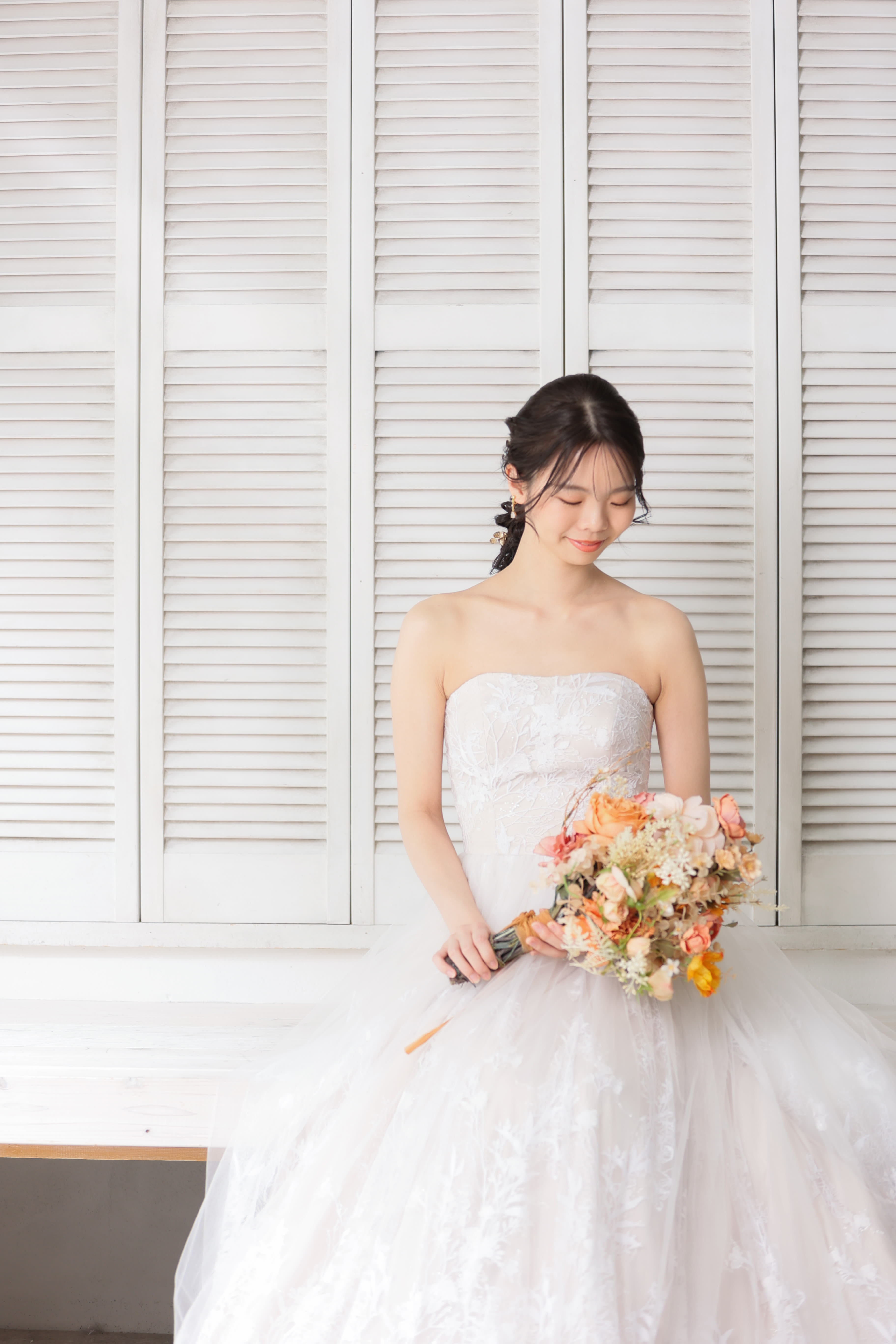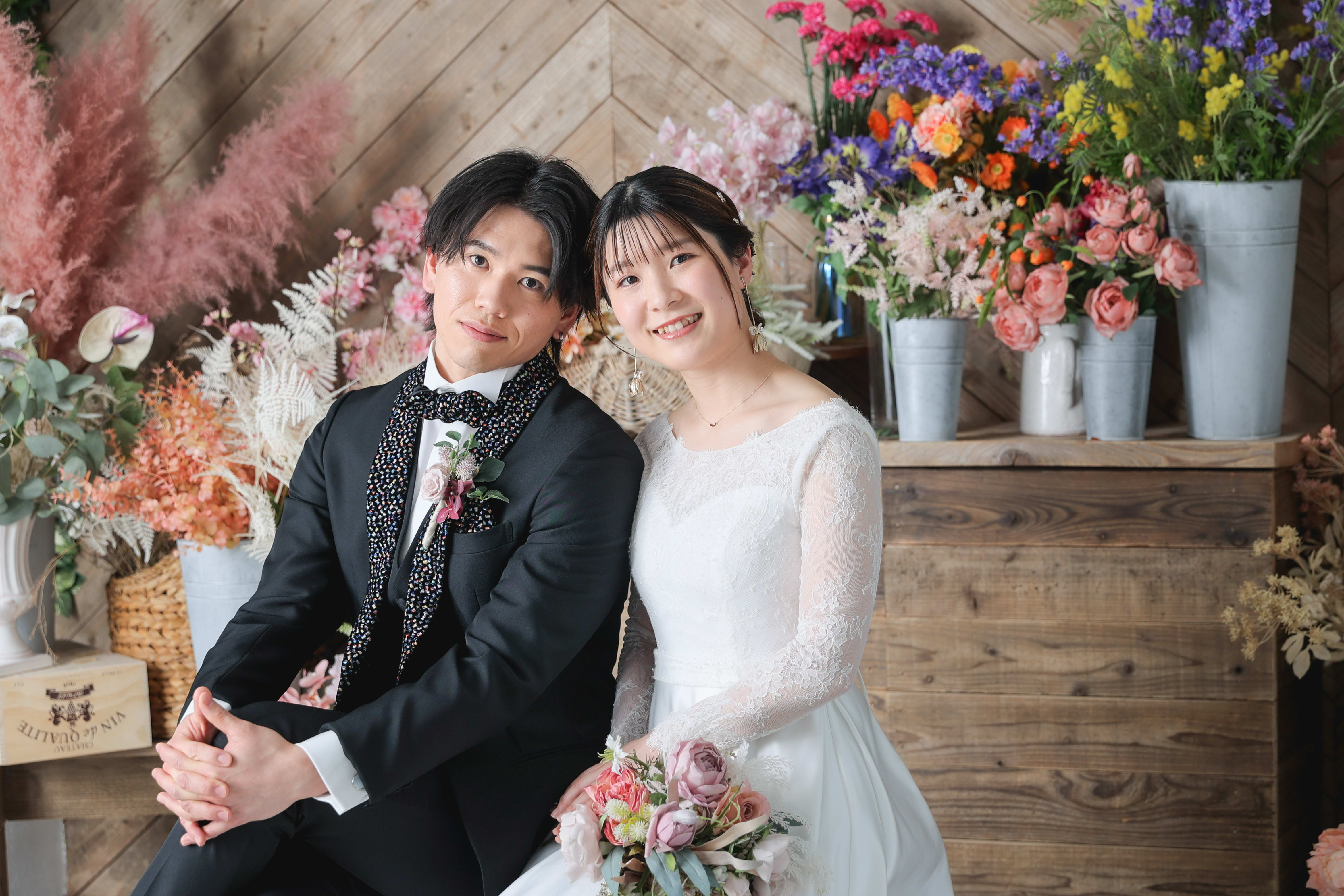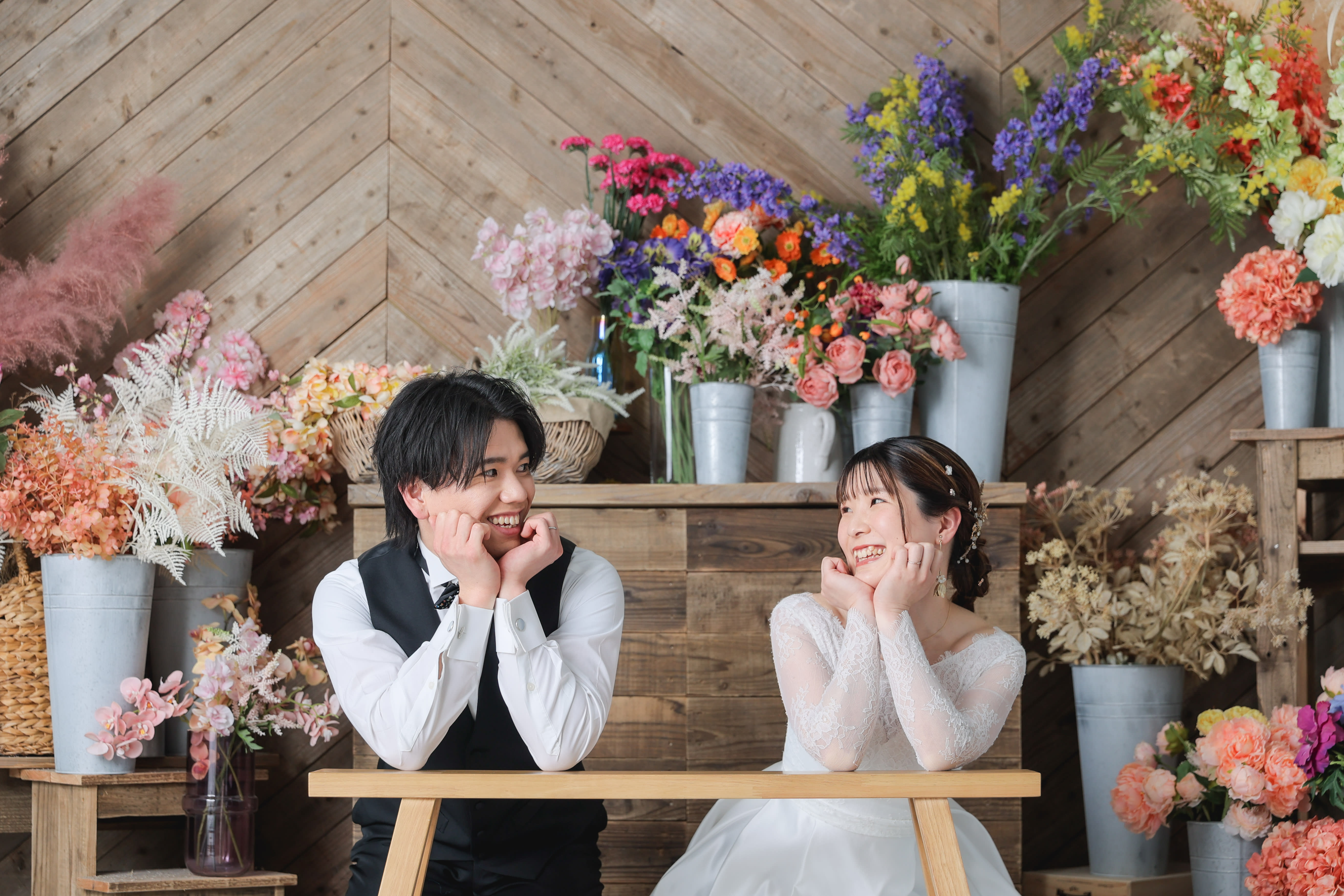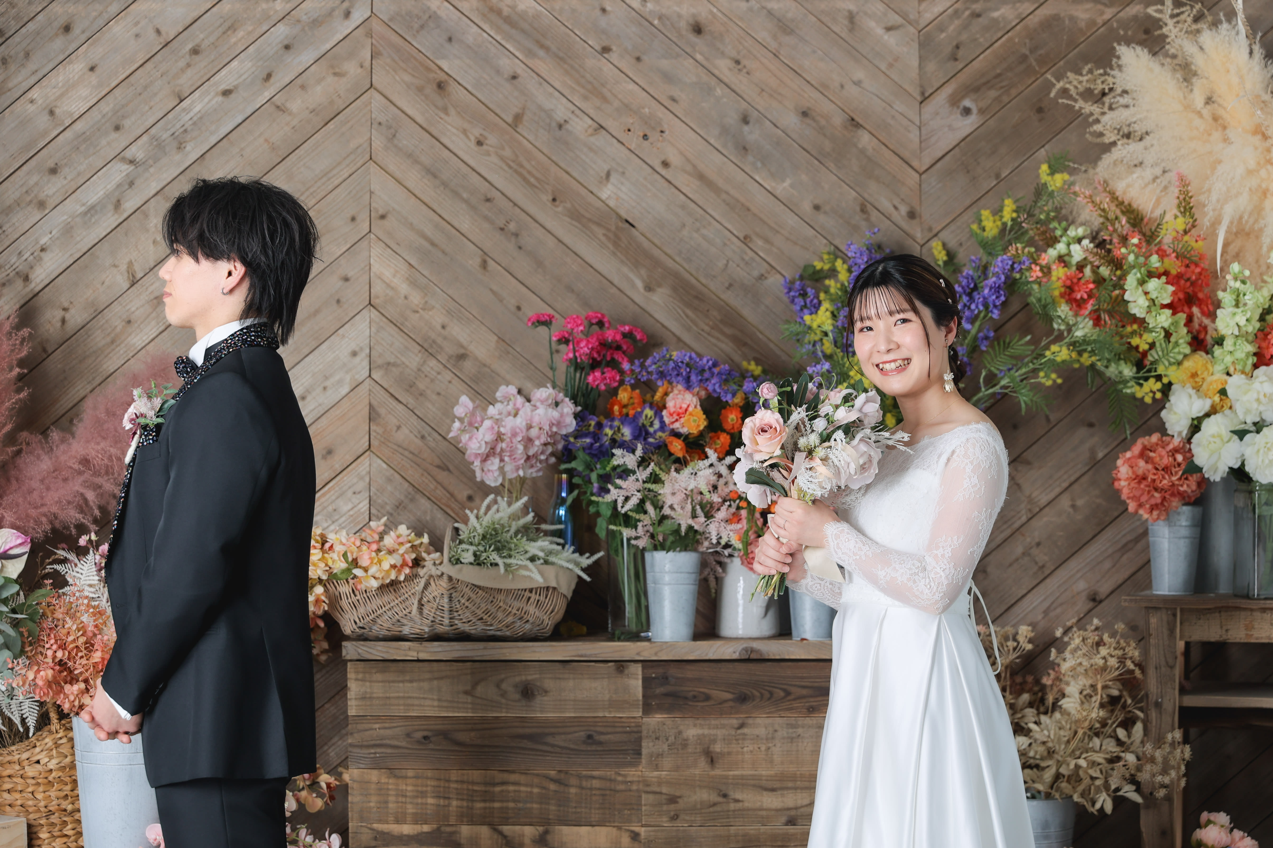一面お花の壁が登場!新宿店ハウススタジオで撮影する洋装ウェディングフォトプラン