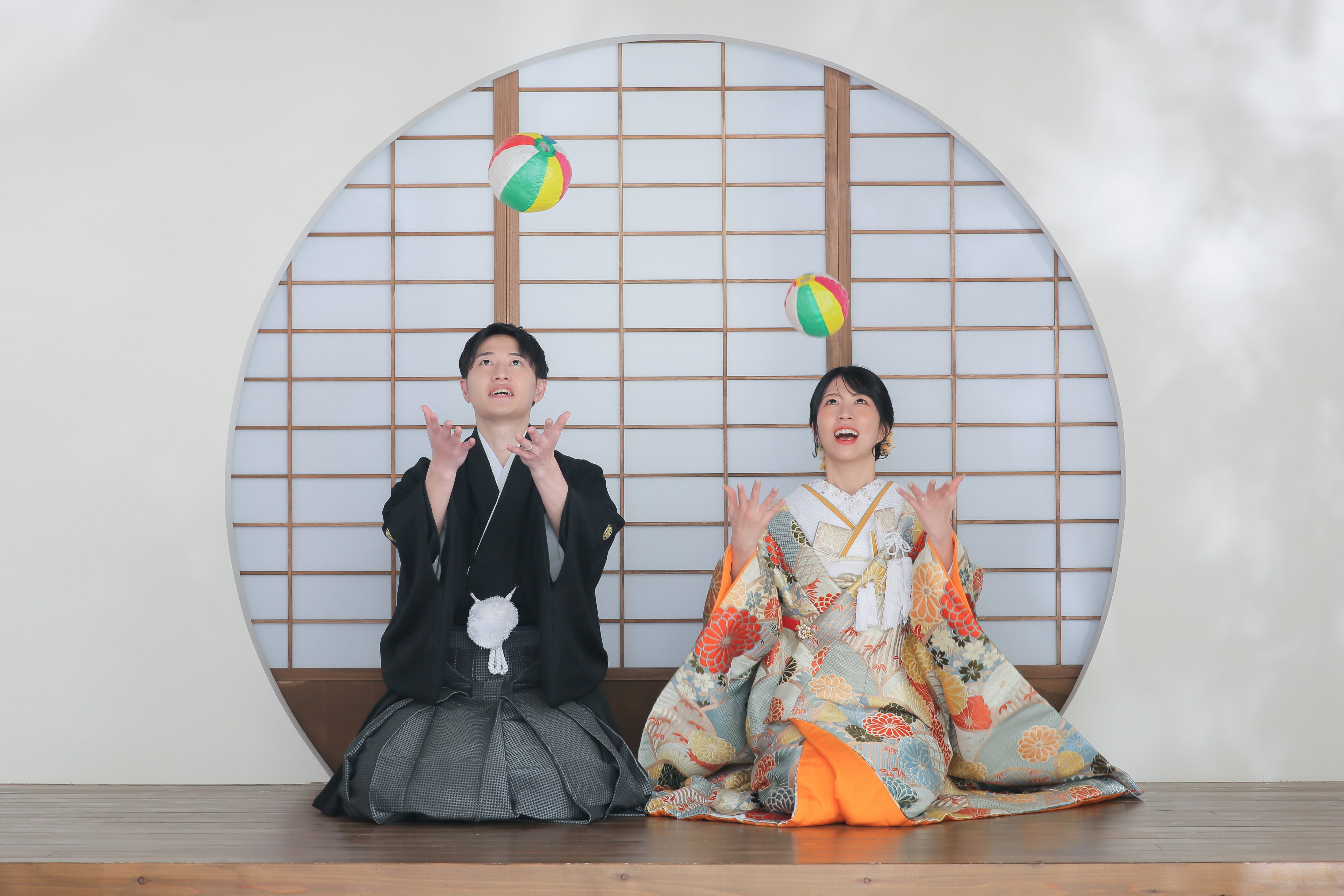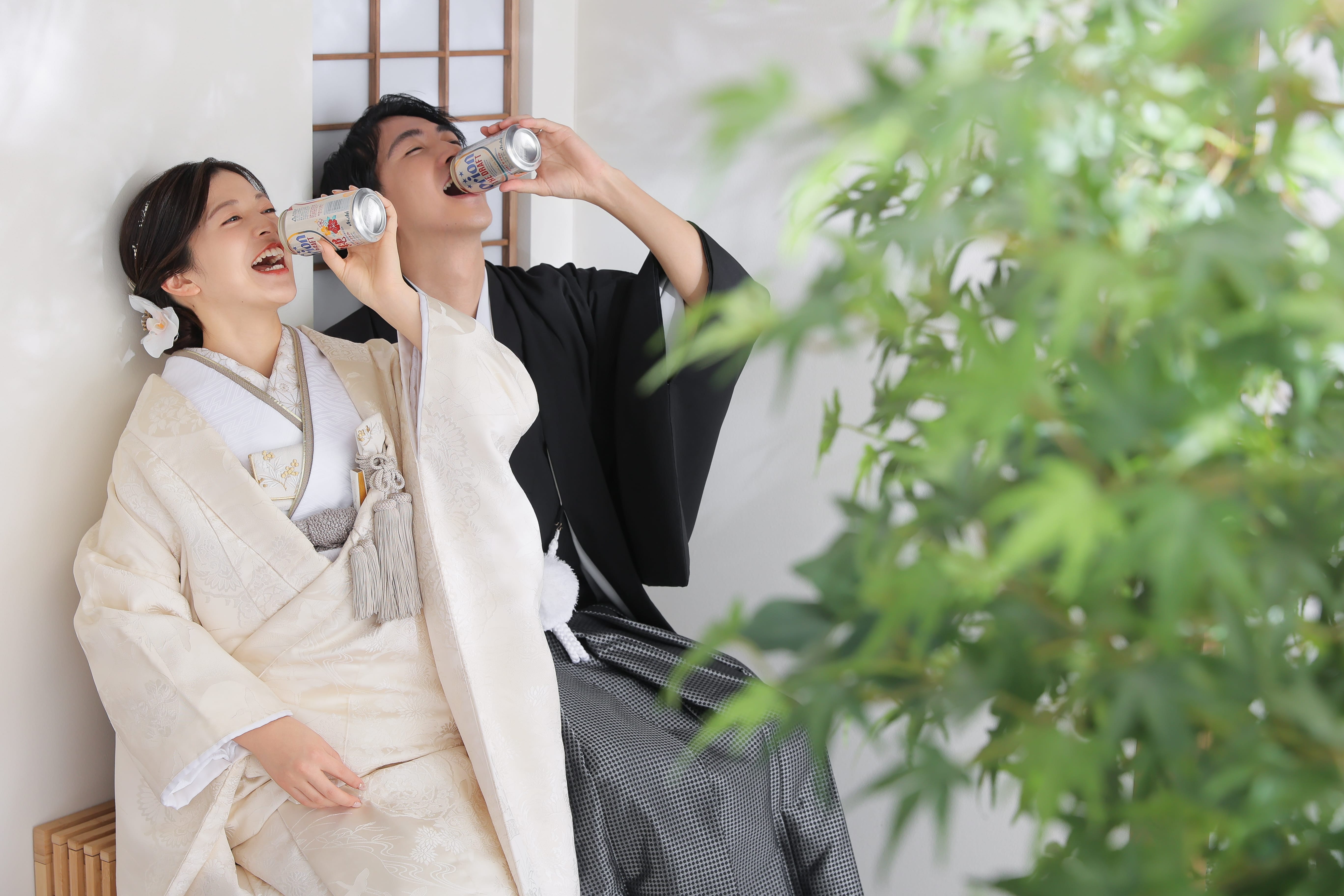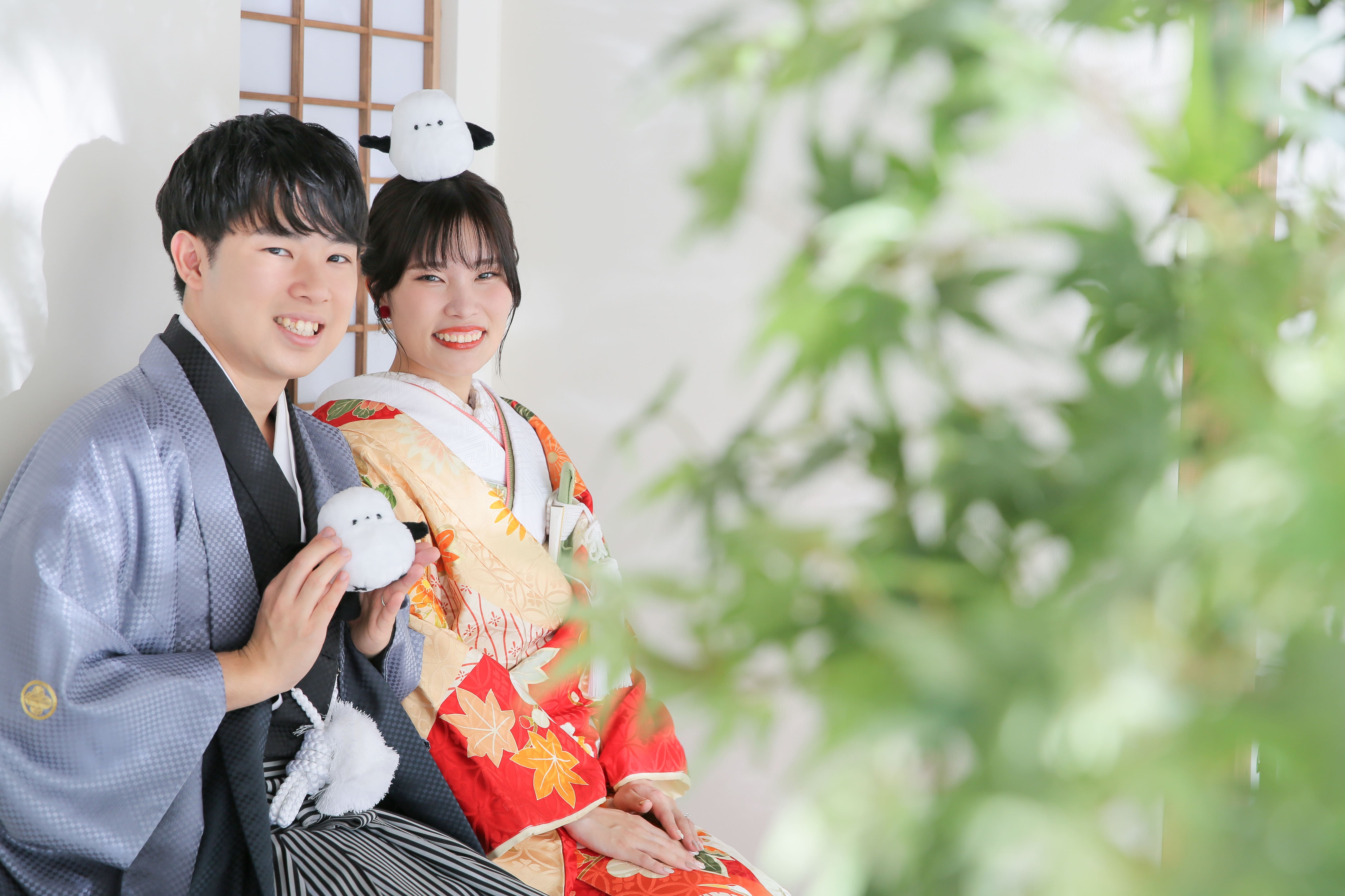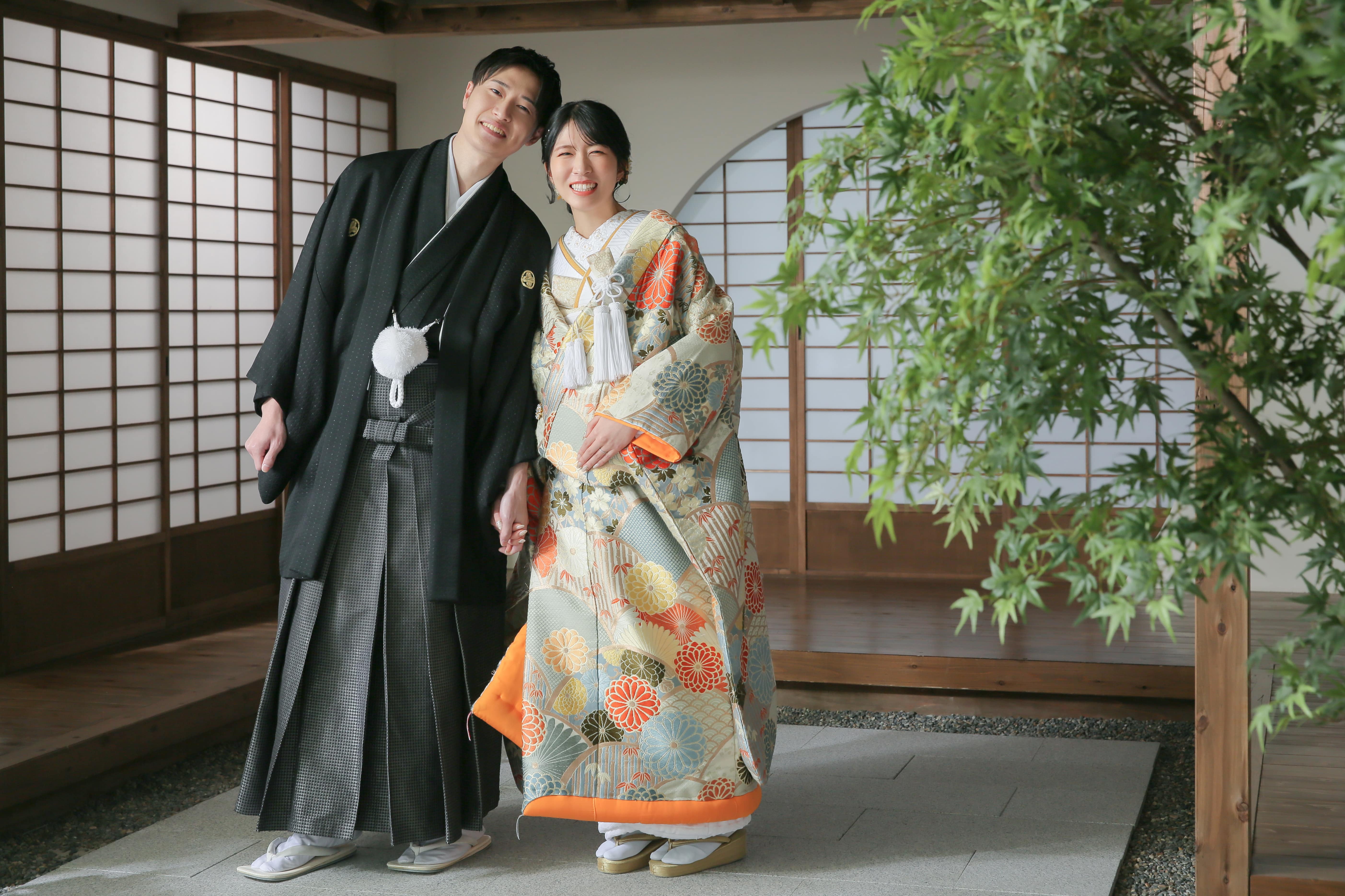 本格日本庭園を再現したスタジオで撮る 和装の結婚写真