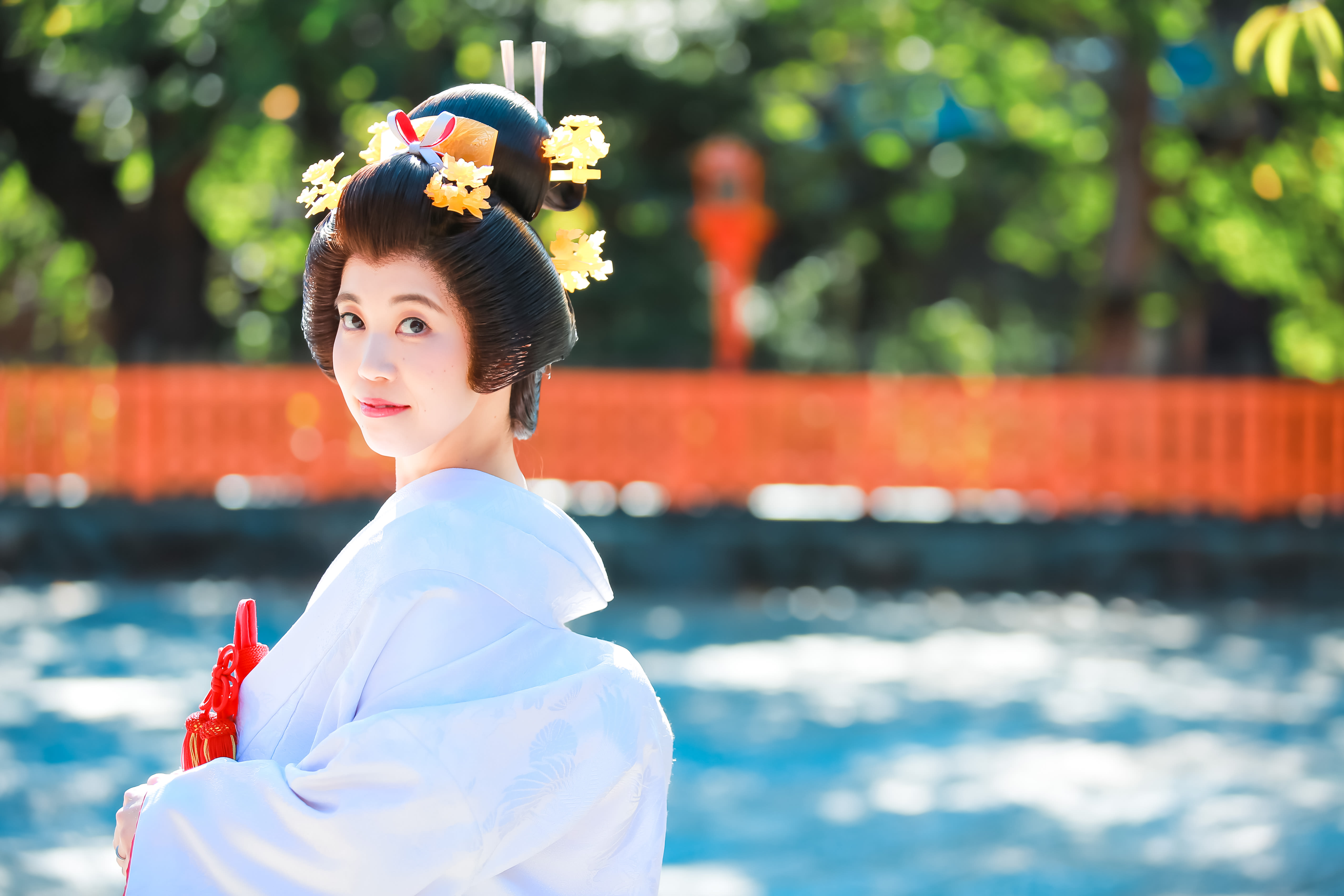 本格日本庭園を再現したスタジオで撮る 和装の結婚写真