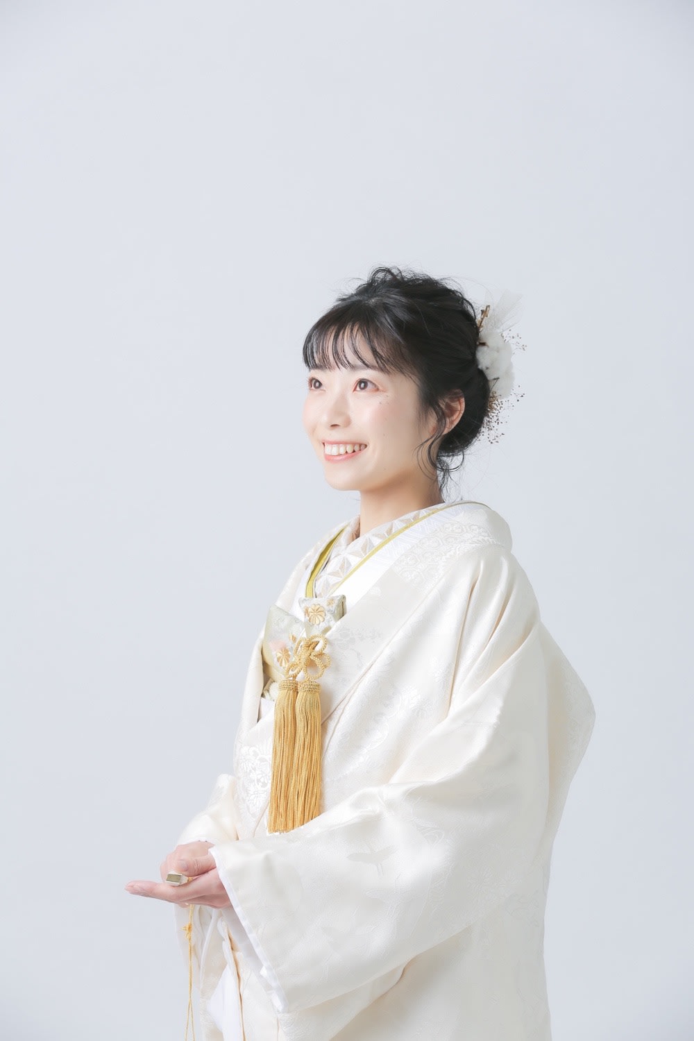 いくつになっても、一生に一度の瞬間を懐かしんでもらいたいから 新婦様に寄り添って、”自分らしさ”を大切にしたご提案を心掛けています🕊️ 衣装合わせから当日まで、楽しい時間を一緒に過ごしていただけたら嬉しいです🙌 美容師として7年の経験を積み、ブライダルの世界に飛び込みたくさんの花嫁さまを担当してきました👰♀️💐 明るく親しみやすい性格なので、どんなことでも気軽にご相談ください。 お二人の特別な思い出のお手伝いができるのを楽しみにしています。 お支度から楽しくリラックスしていきましょ〜 ※生花を使用したアレンジもご相談ください