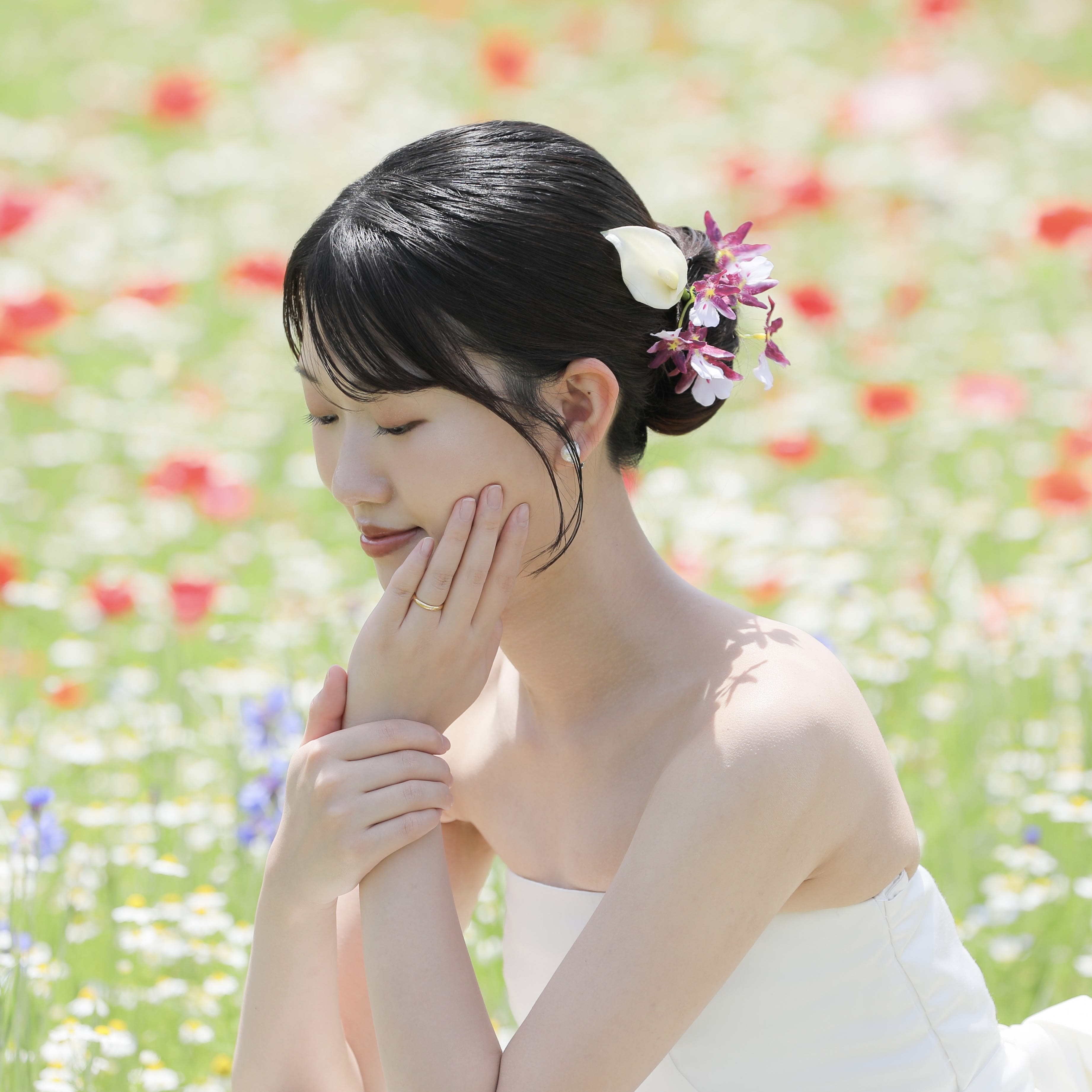 この度はご結婚おめでとうございます ヘアメイクは大人綺麗めな王道スタイルからロケーションに合うカジュアルなスタイルまでお任せください◎ 骨格やお肌に合わせて一人一人に似合うヘアメイクをご提案いたします🎀 お二人の大切な思い出を全力でサポートいたします^^ 2/5-2/19まで河津店におります🌸