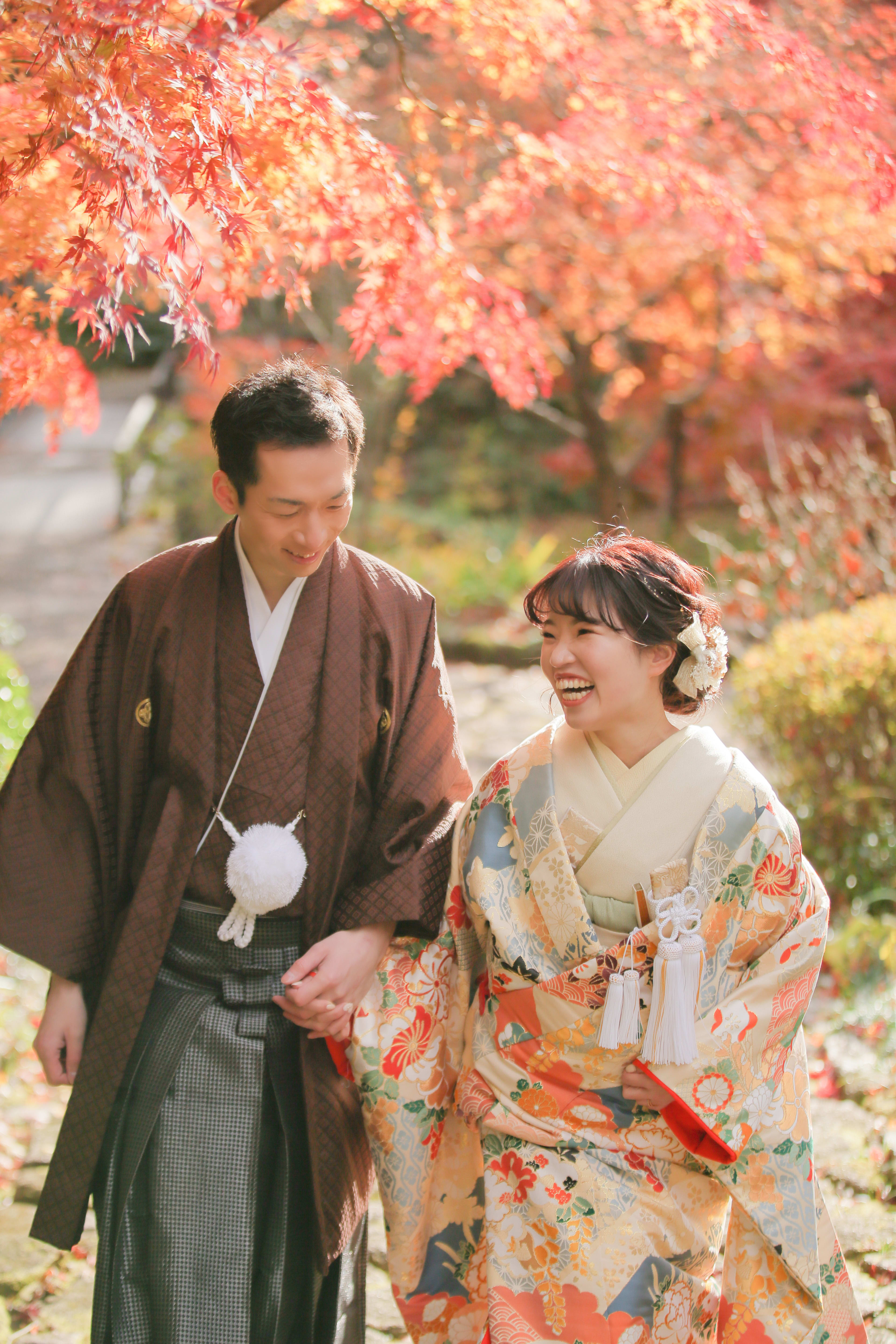 本格日本庭園を再現したスタジオで撮る 和装の結婚写真