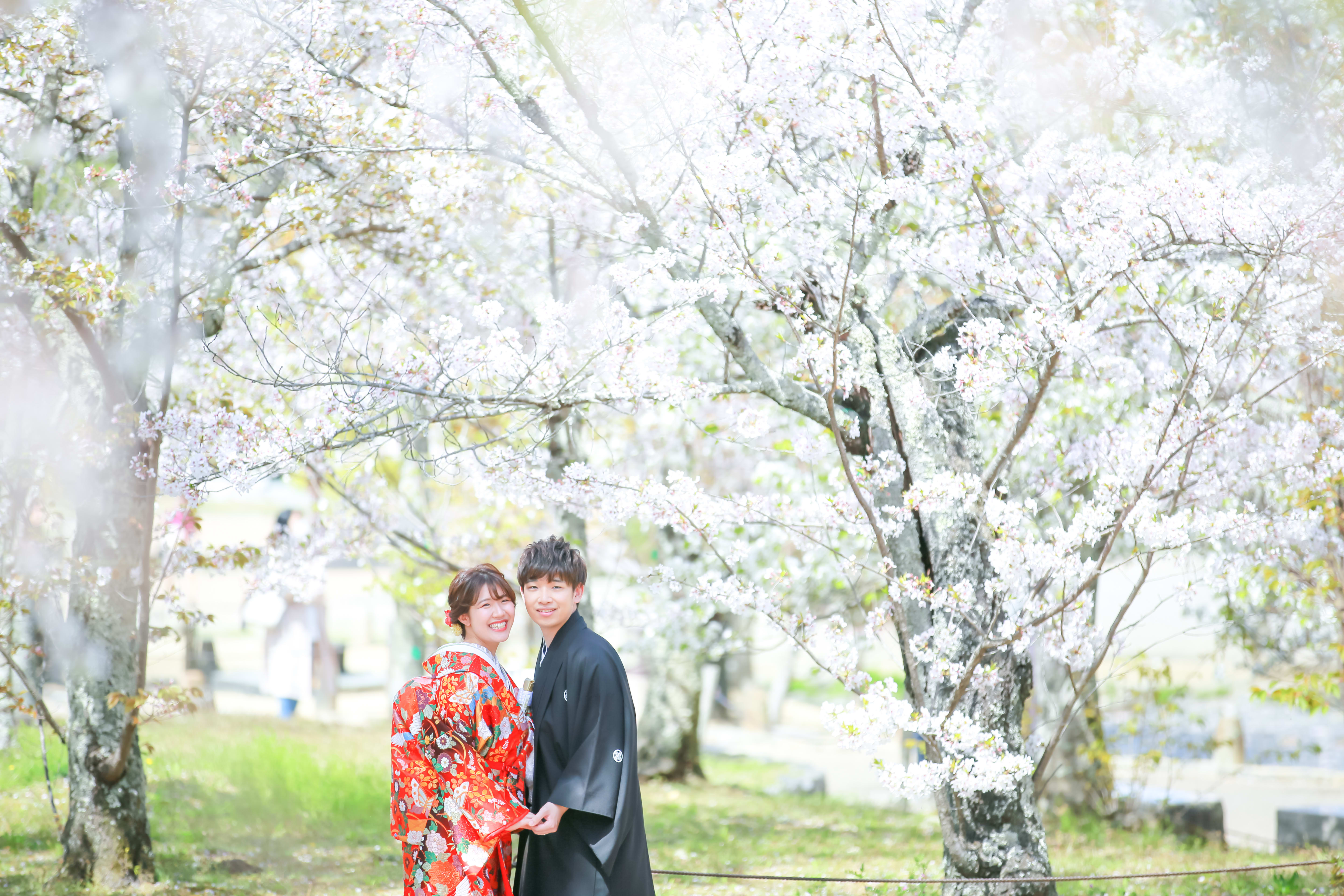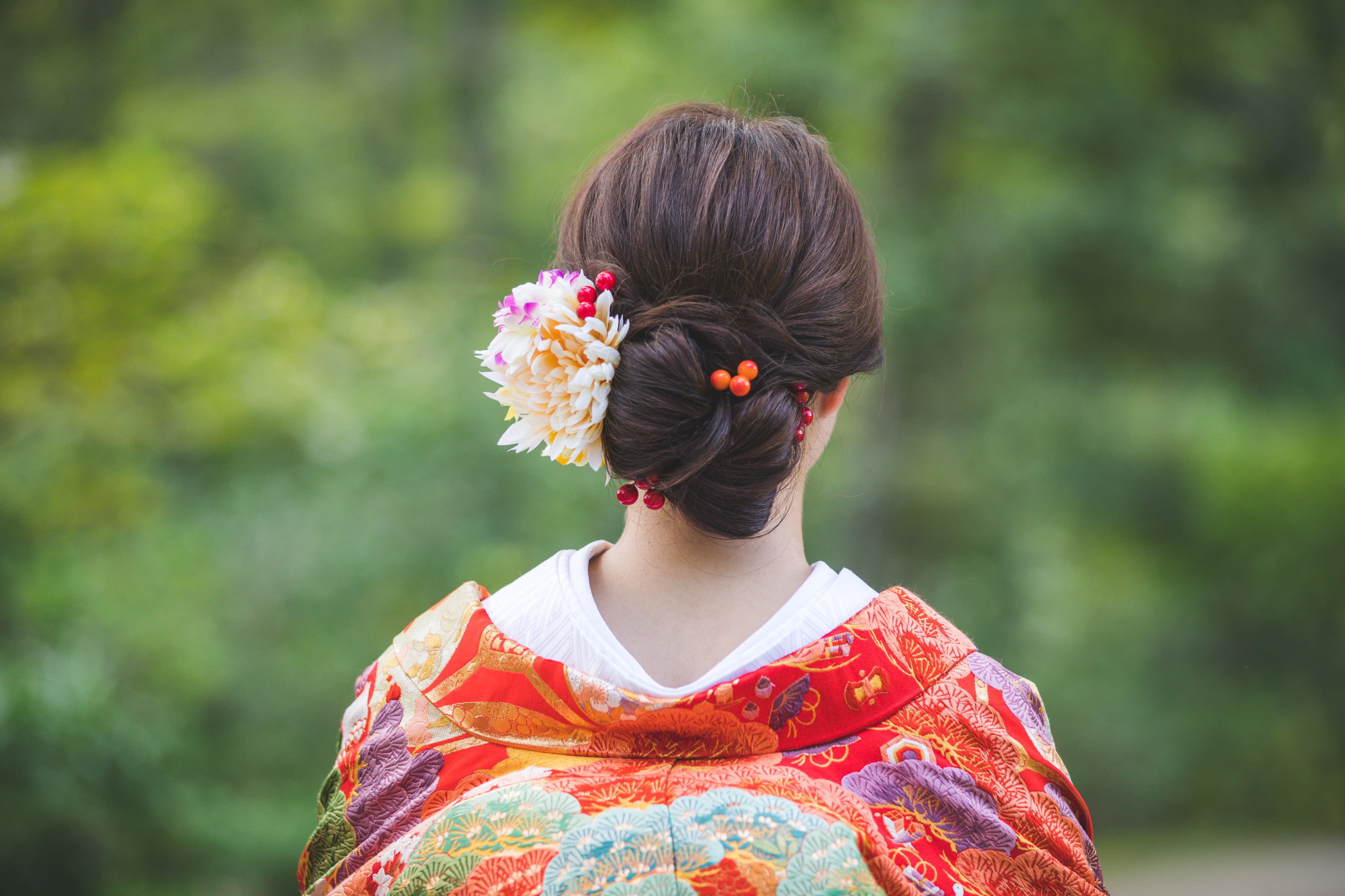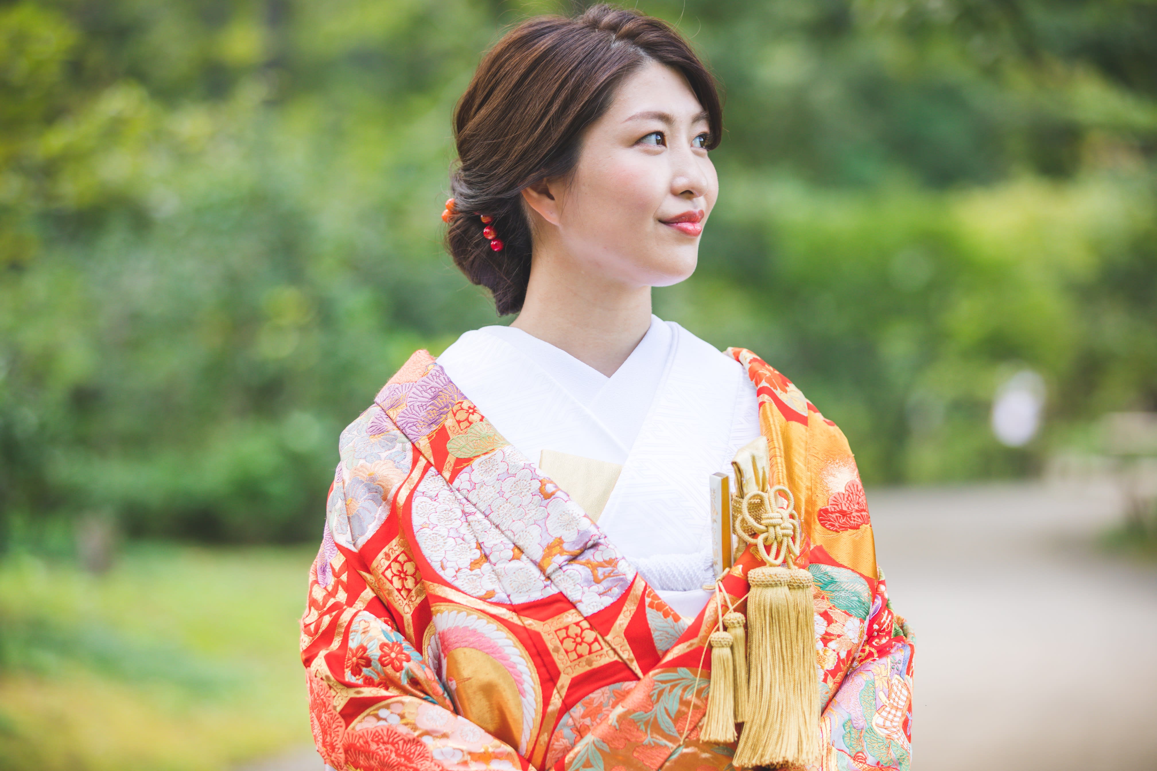 本格日本庭園を再現したスタジオで撮る 和装の結婚写真