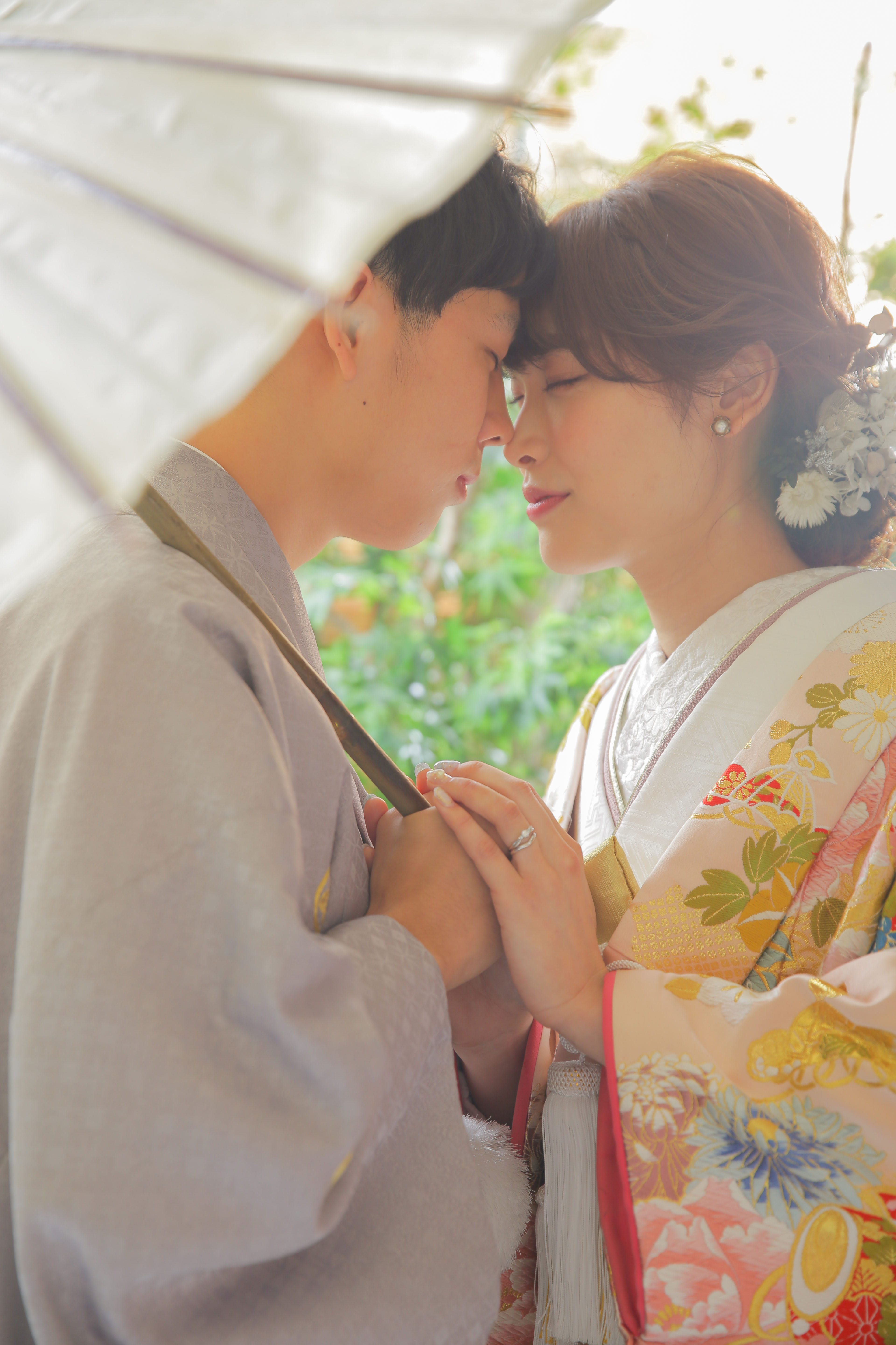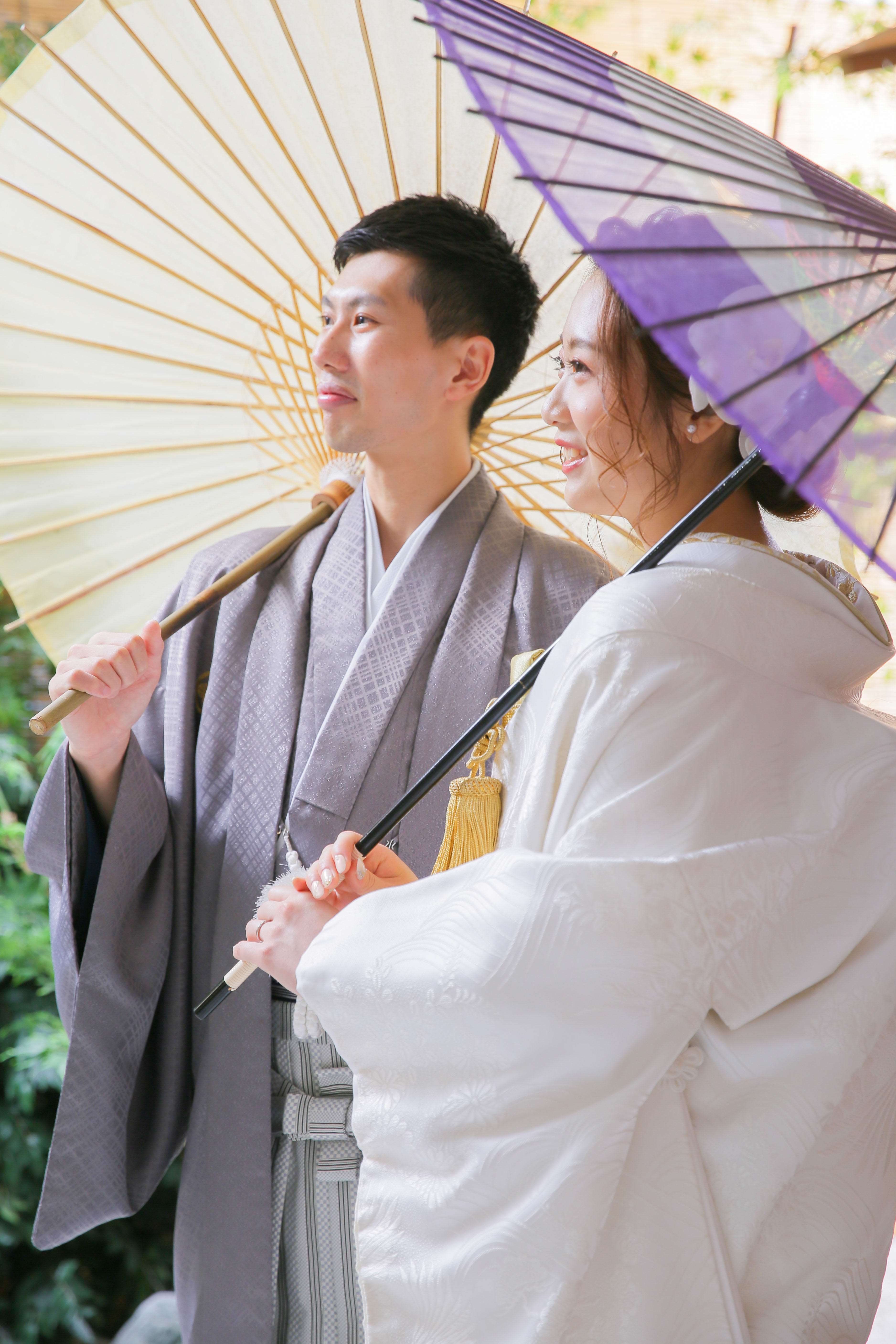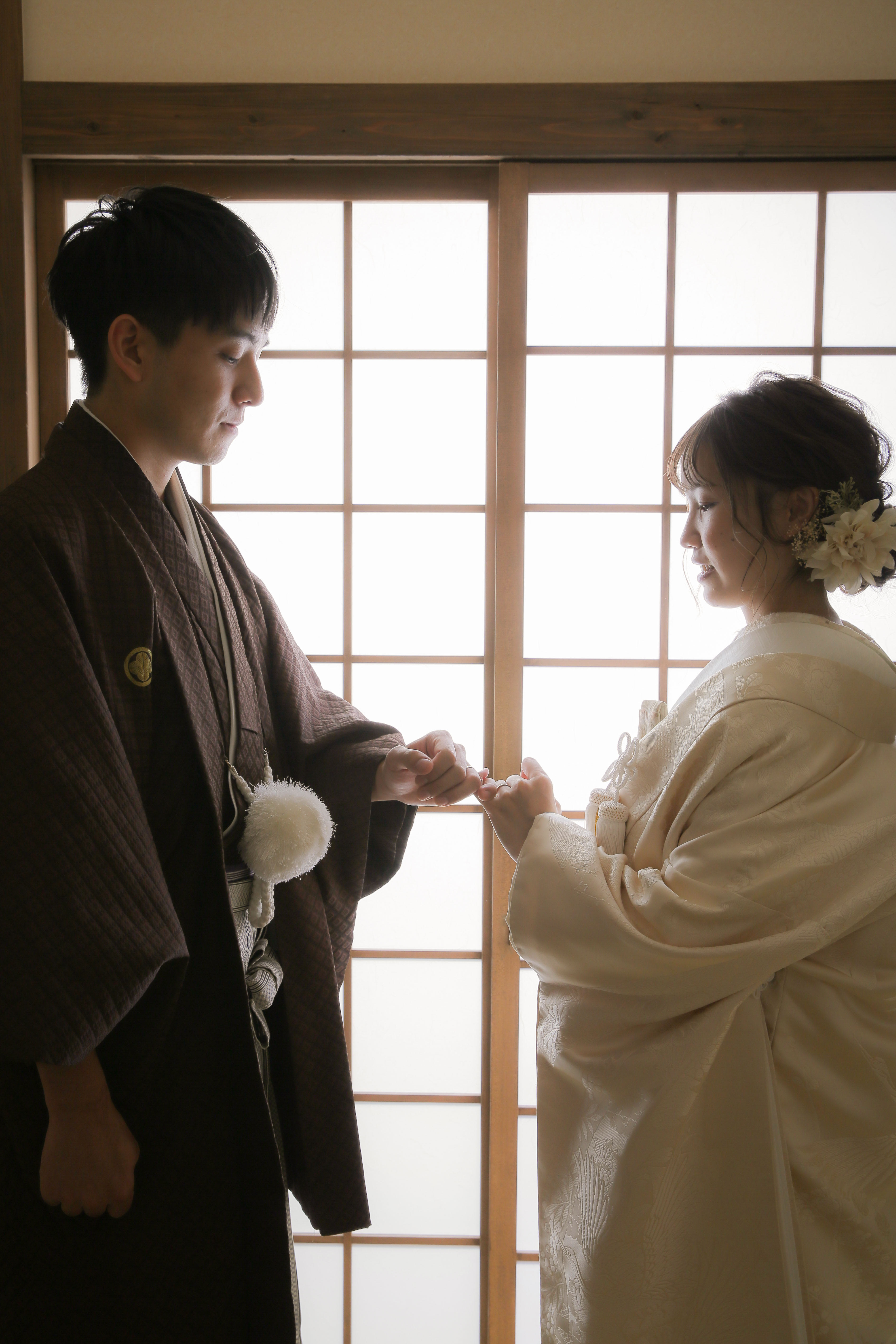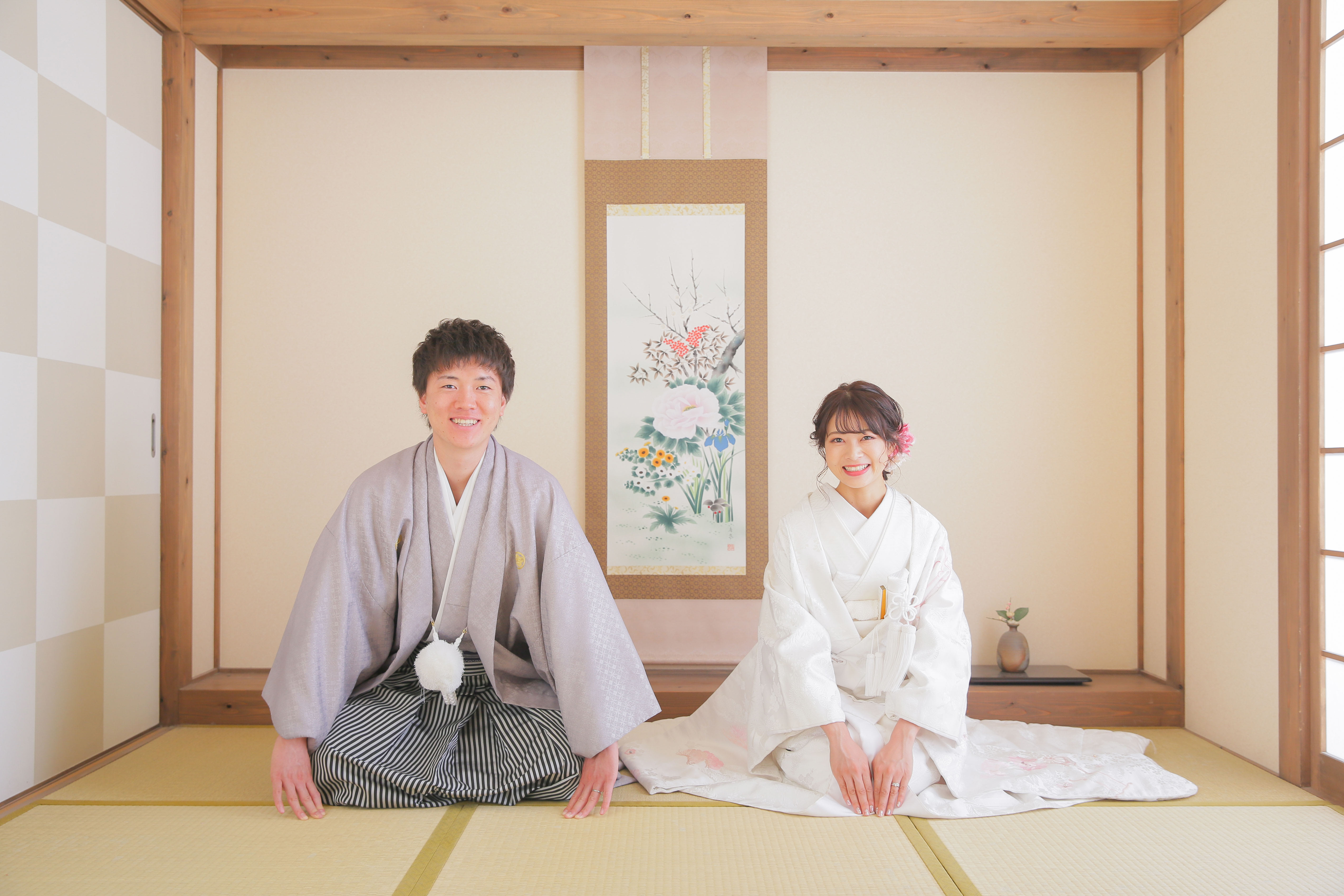 本格日本庭園を再現したスタジオで撮る 和装の結婚写真