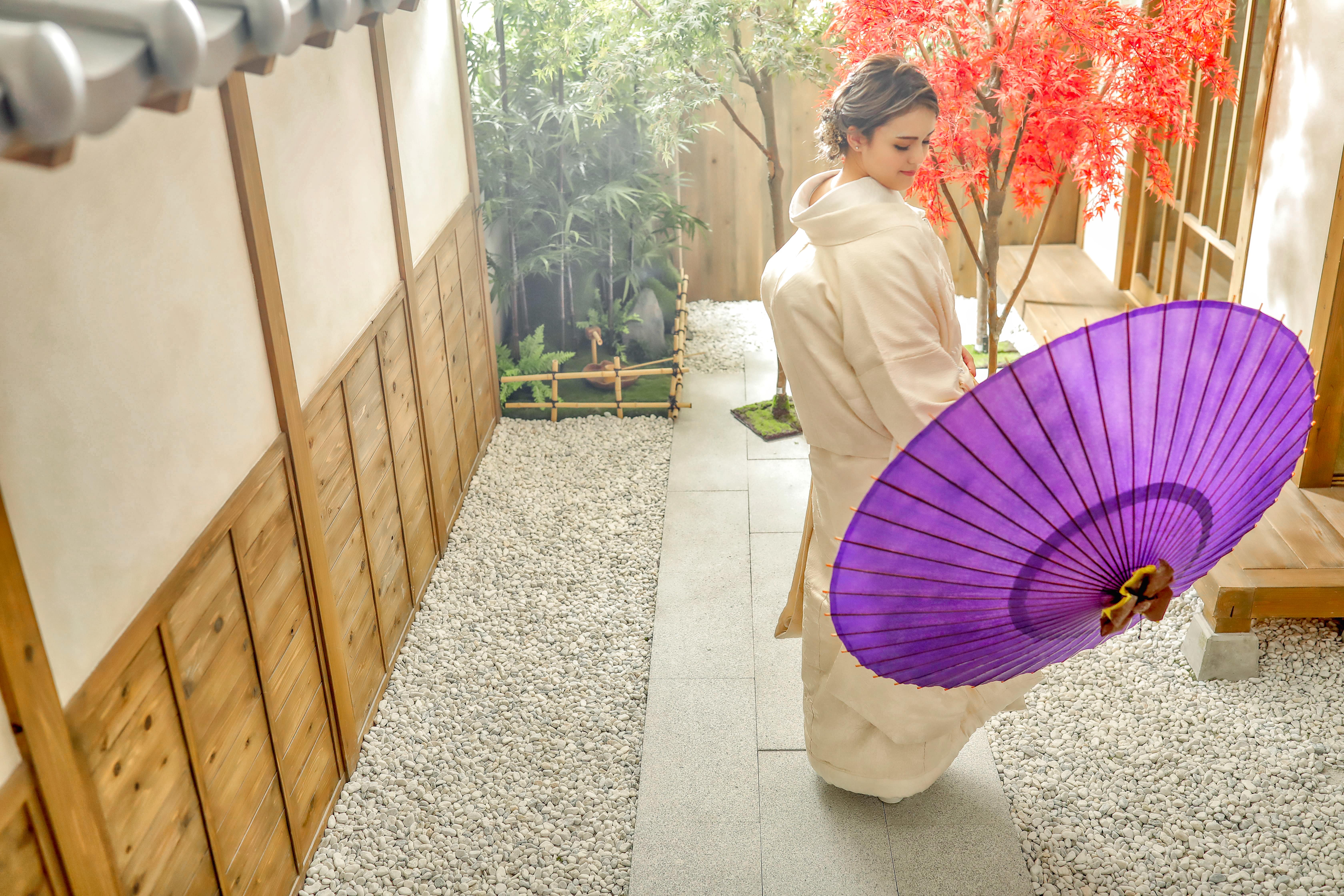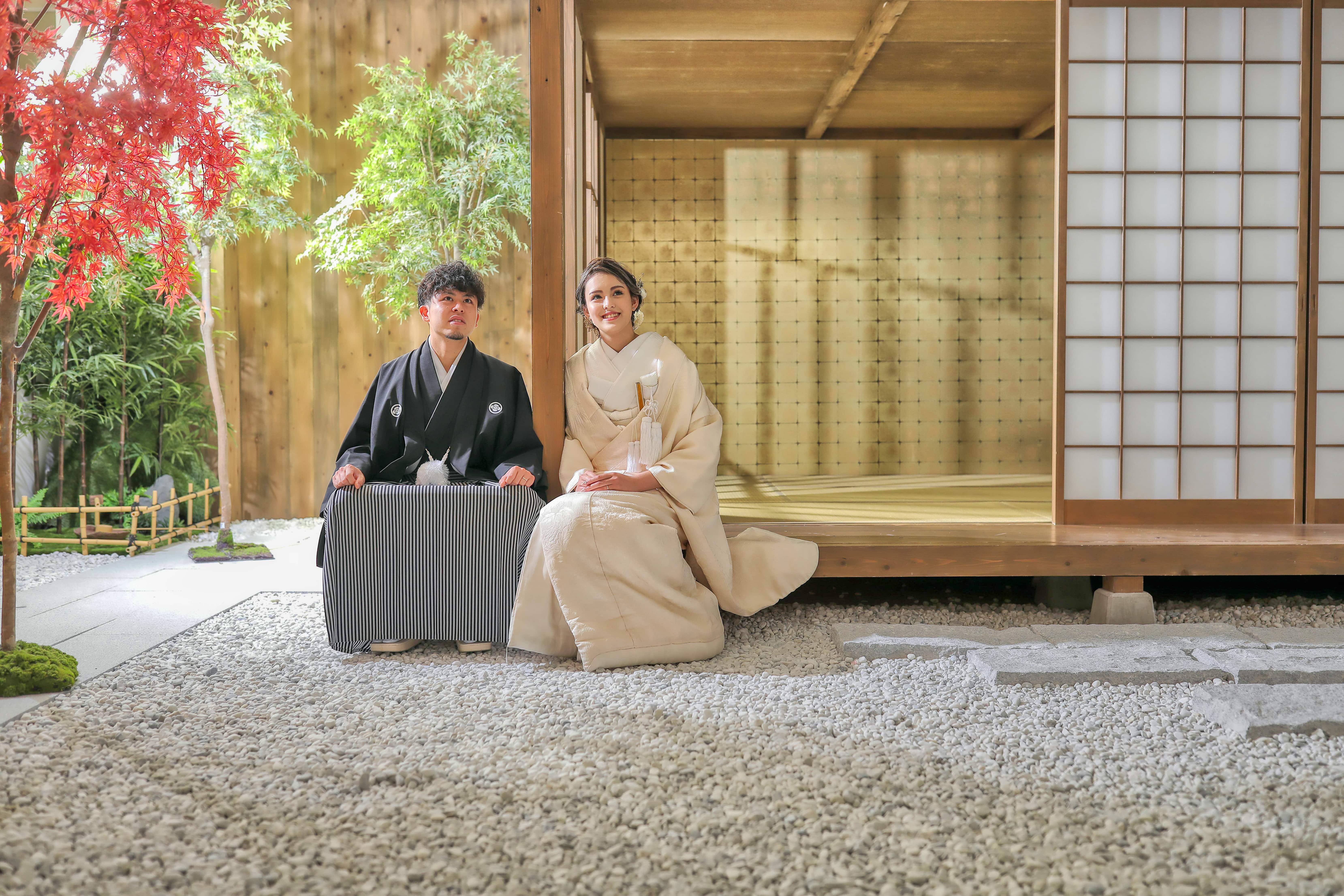本格日本庭園を再現したスタジオで撮る 和装の結婚写真
