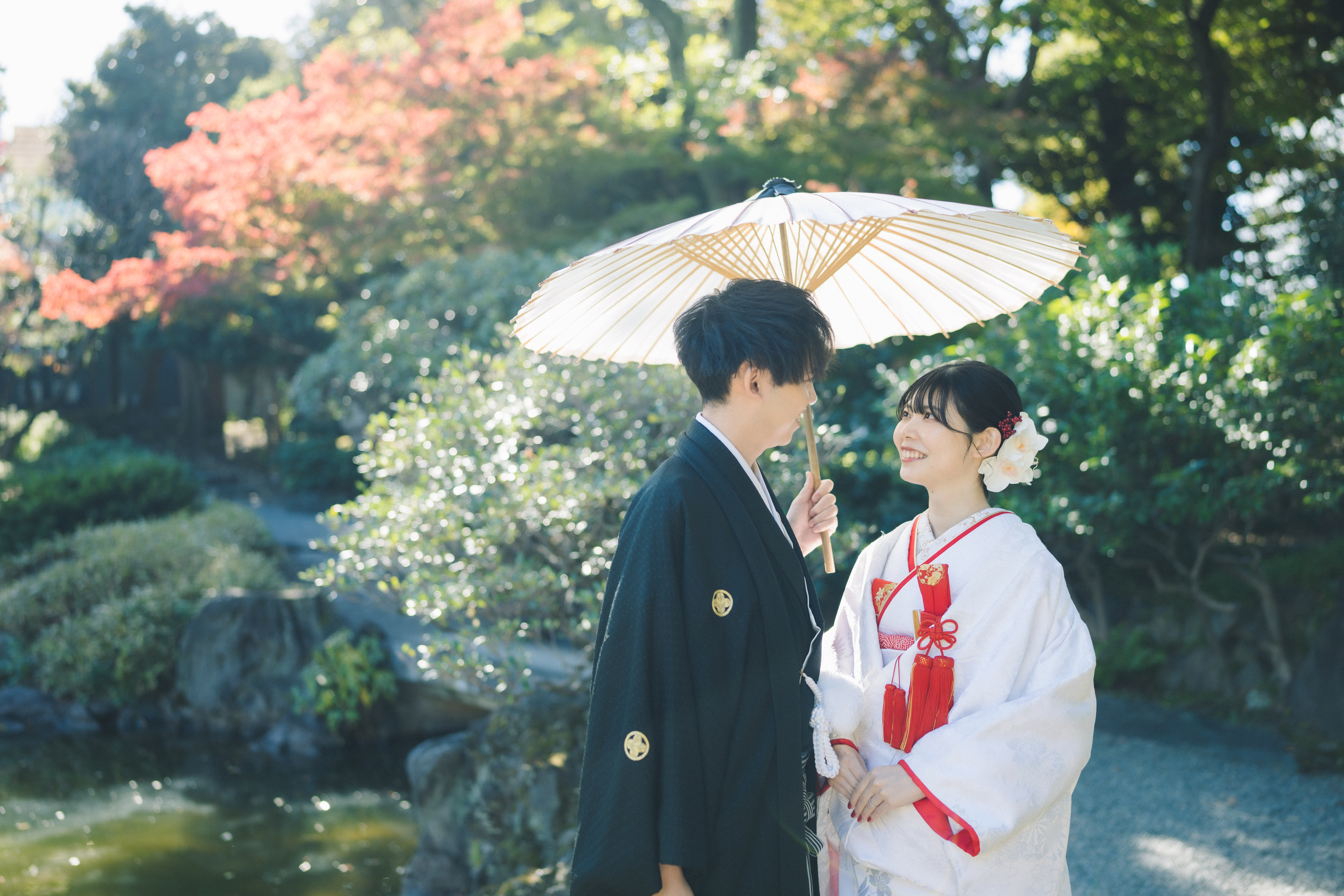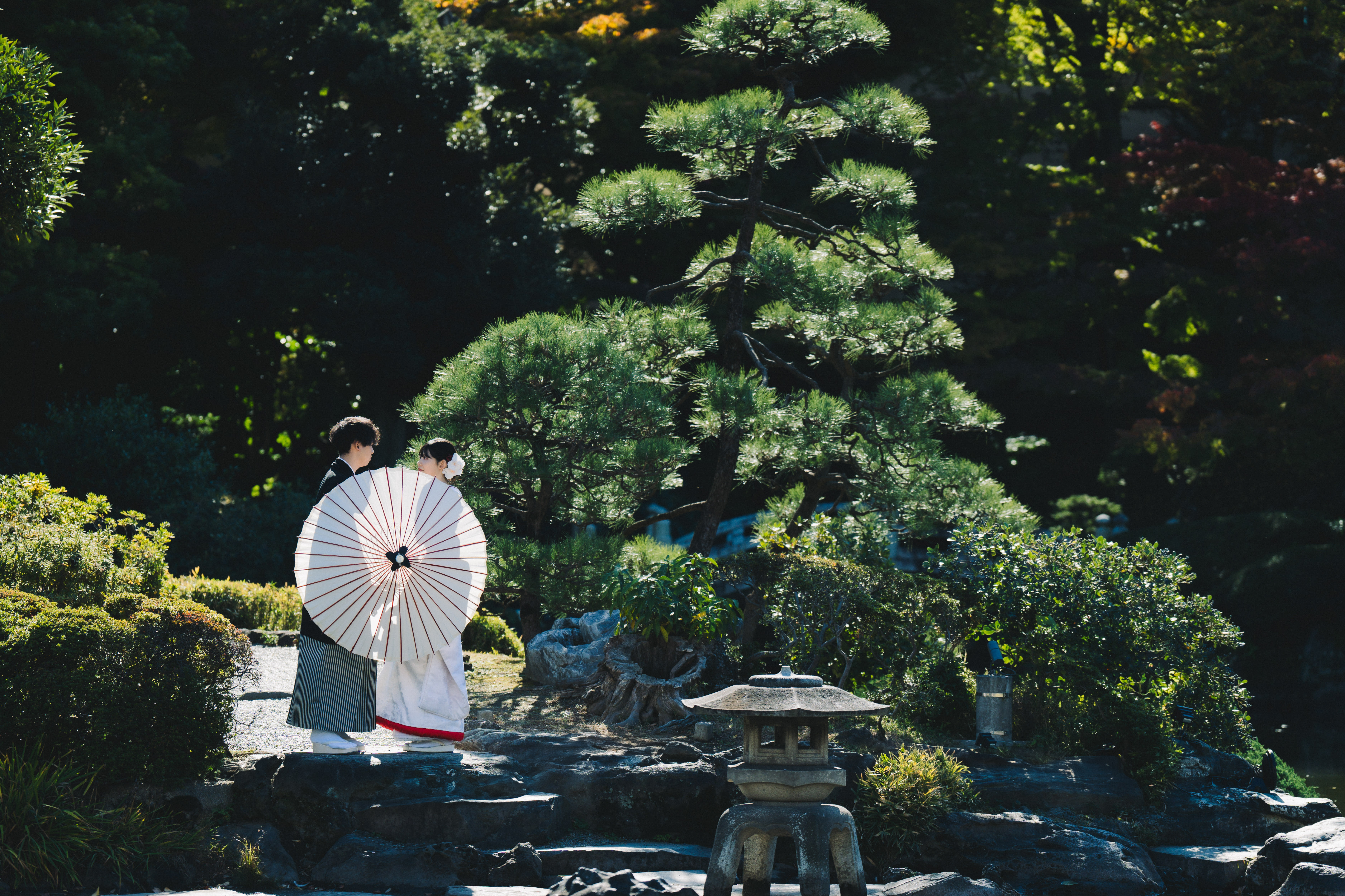 本格日本庭園を再現したスタジオで撮る 和装の結婚写真