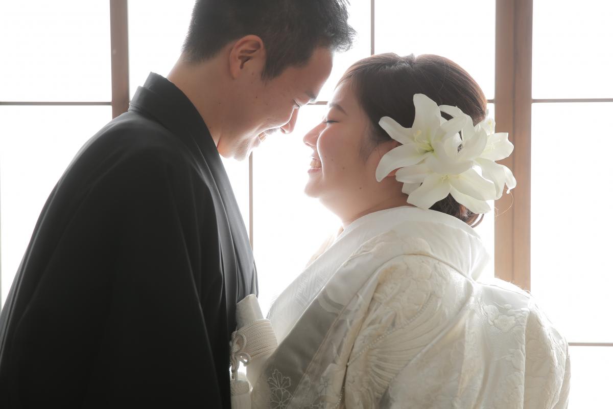 本格日本庭園を再現したスタジオで撮る 和装の結婚写真