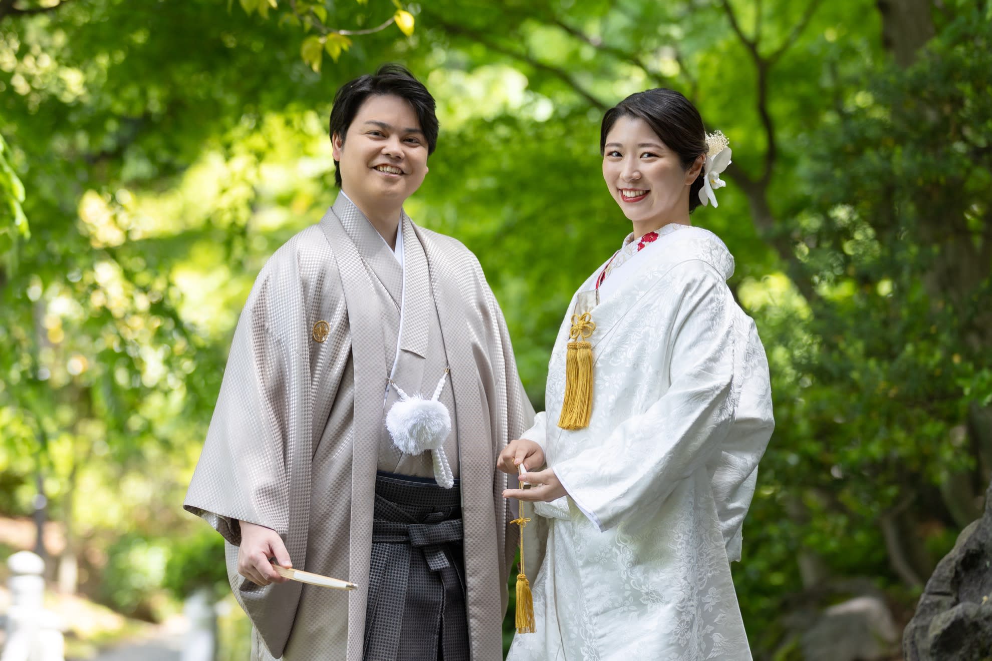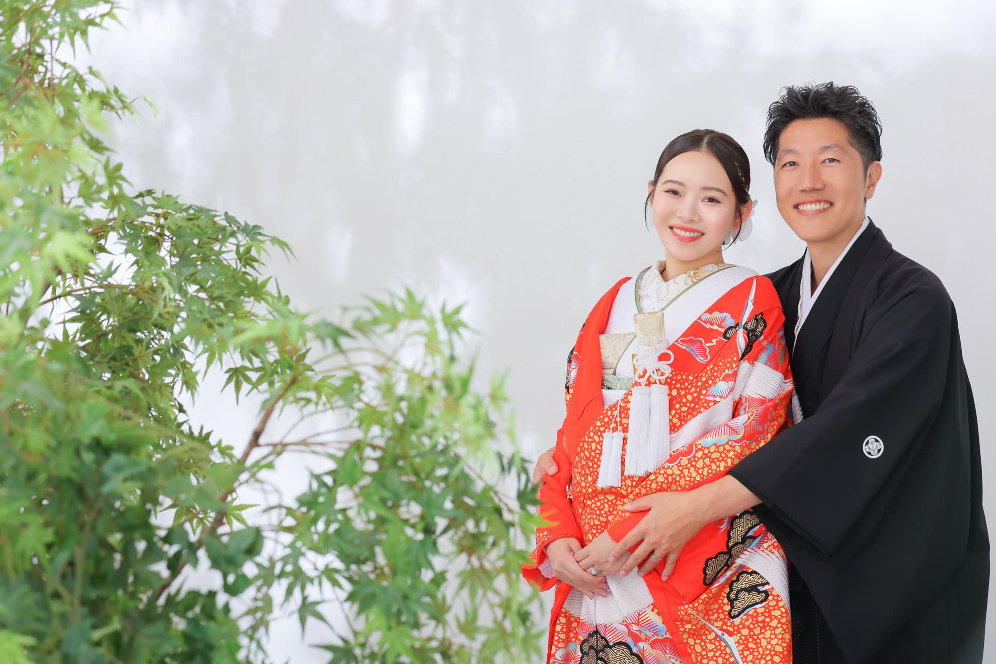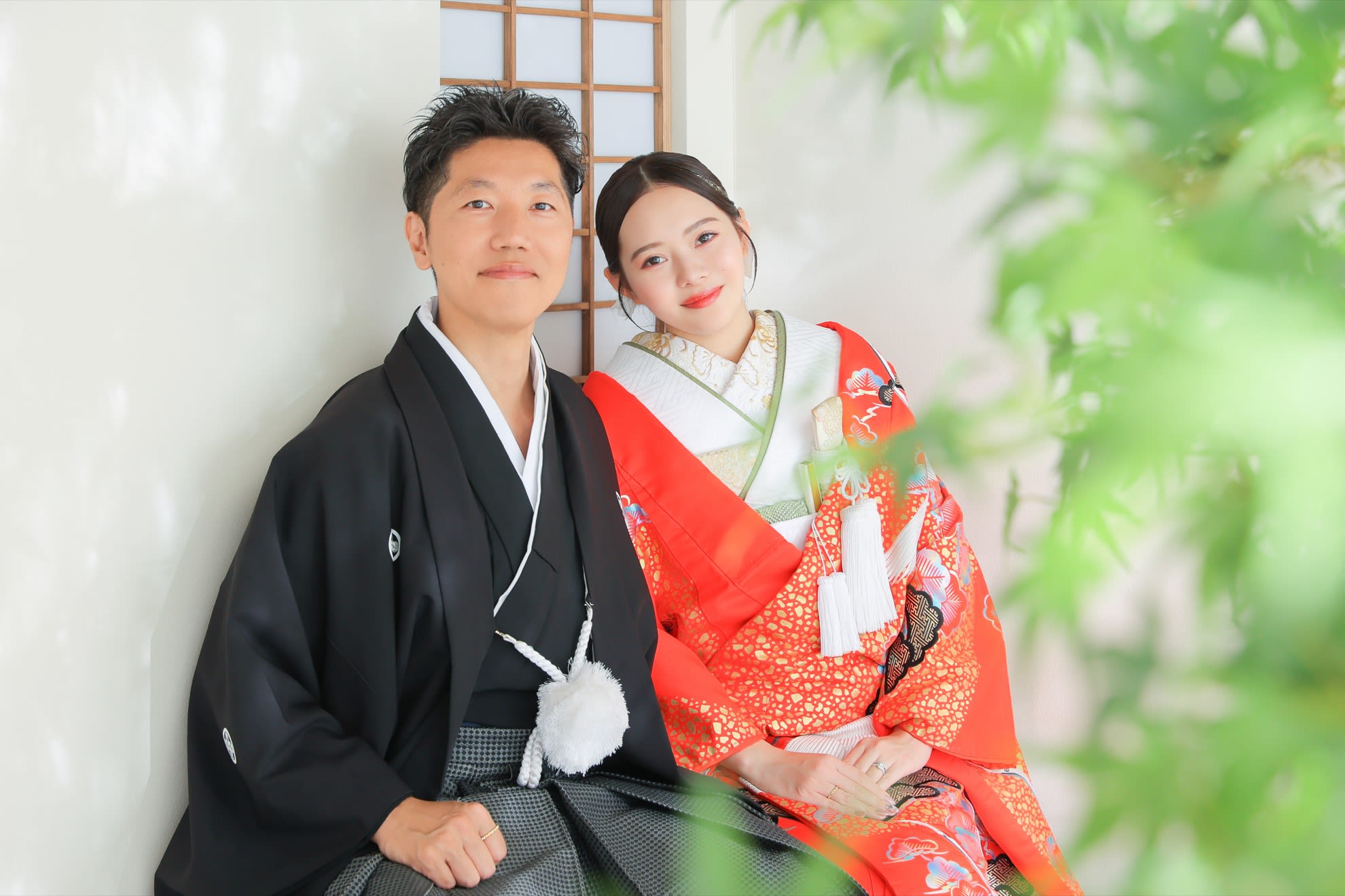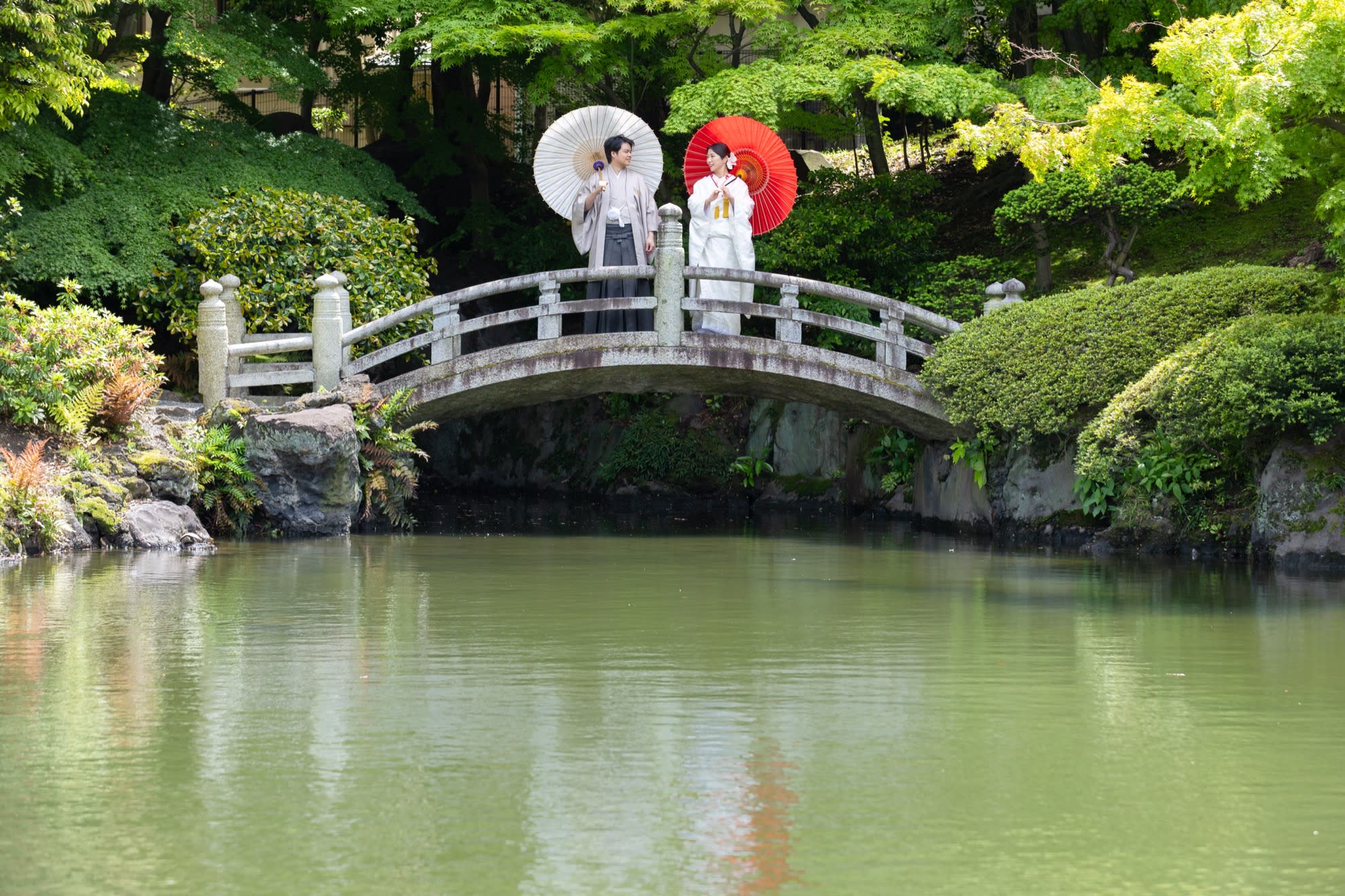 本格日本庭園を再現したスタジオで撮る 和装の結婚写真