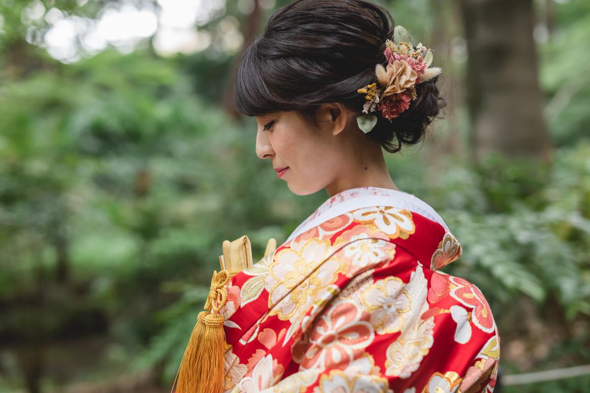本格日本庭園を再現したスタジオで撮る 和装の結婚写真