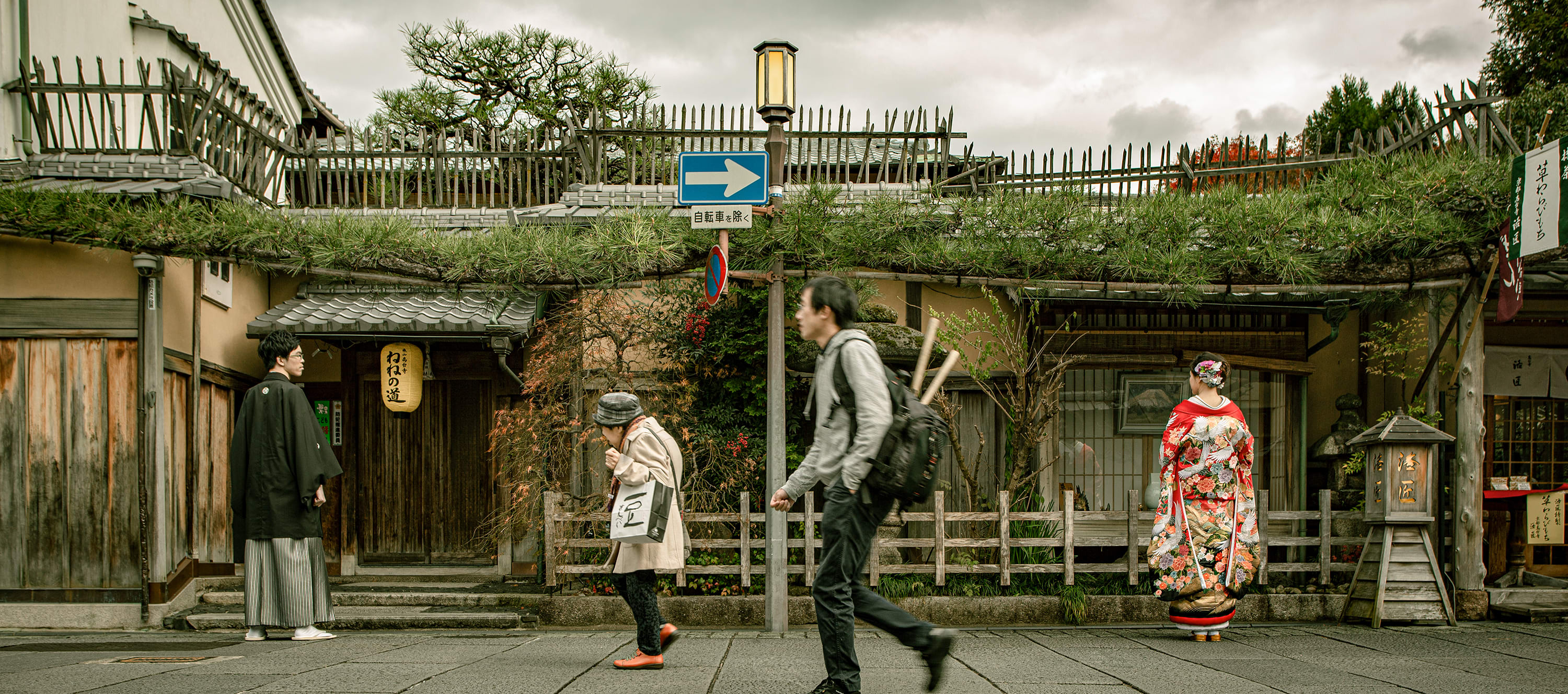 本格日本庭園を再現したスタジオで撮る 和装の結婚写真