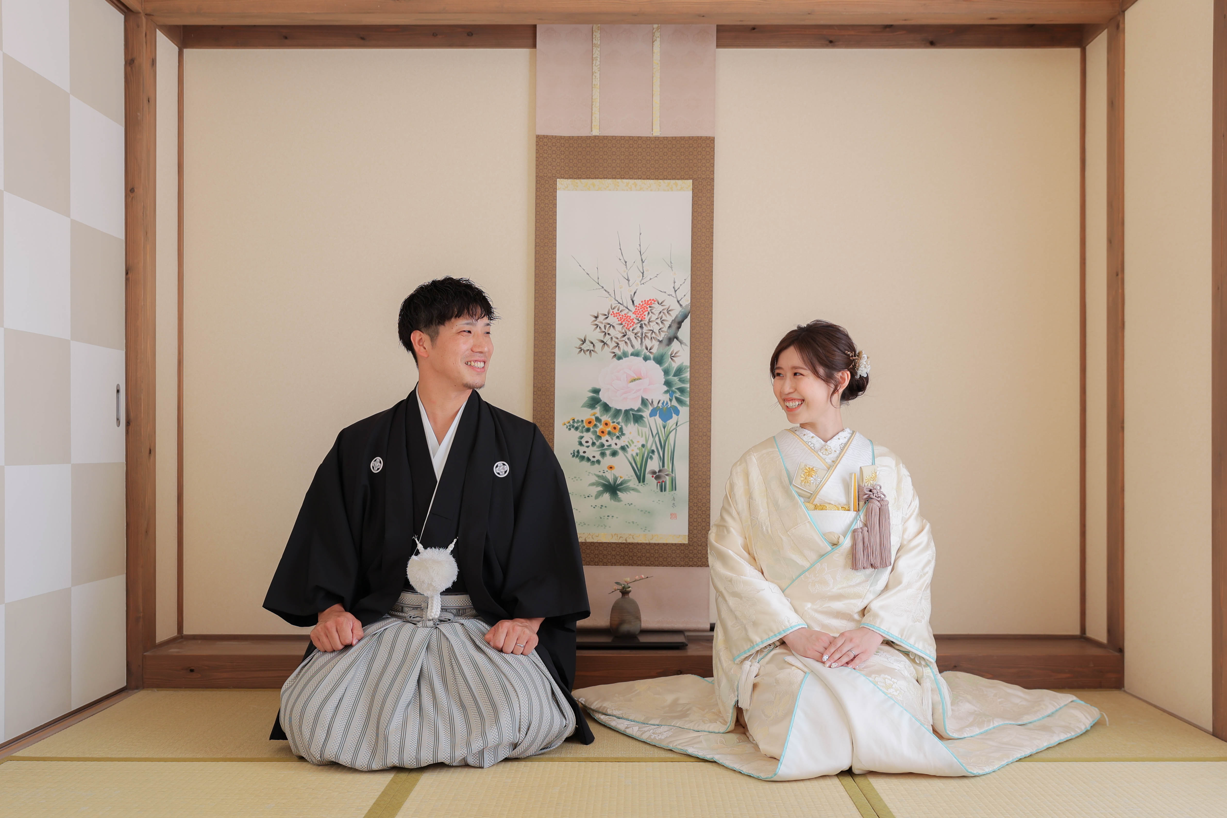 本格日本庭園を再現したスタジオで撮る 和装の結婚写真