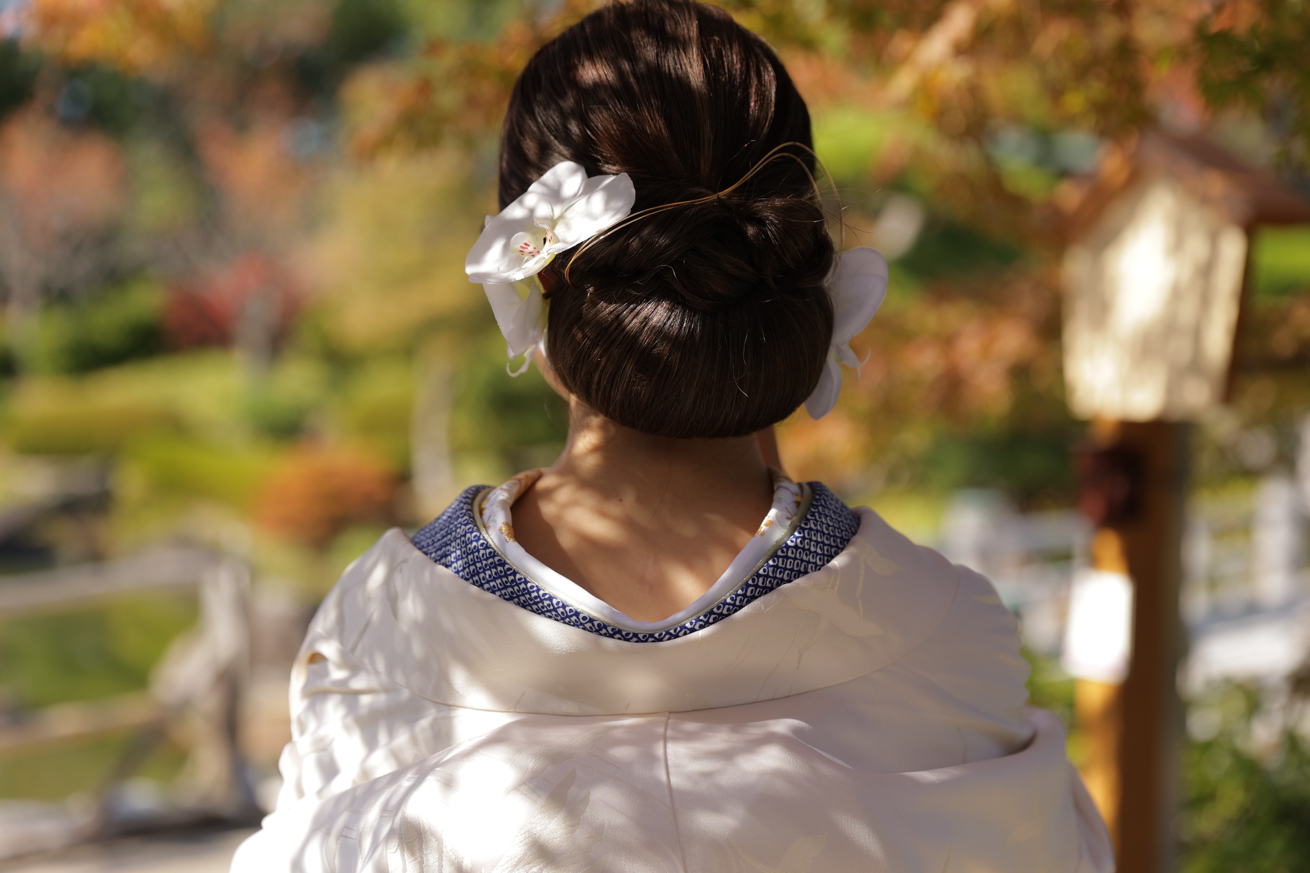 本格日本庭園を再現したスタジオで撮る 和装の結婚写真