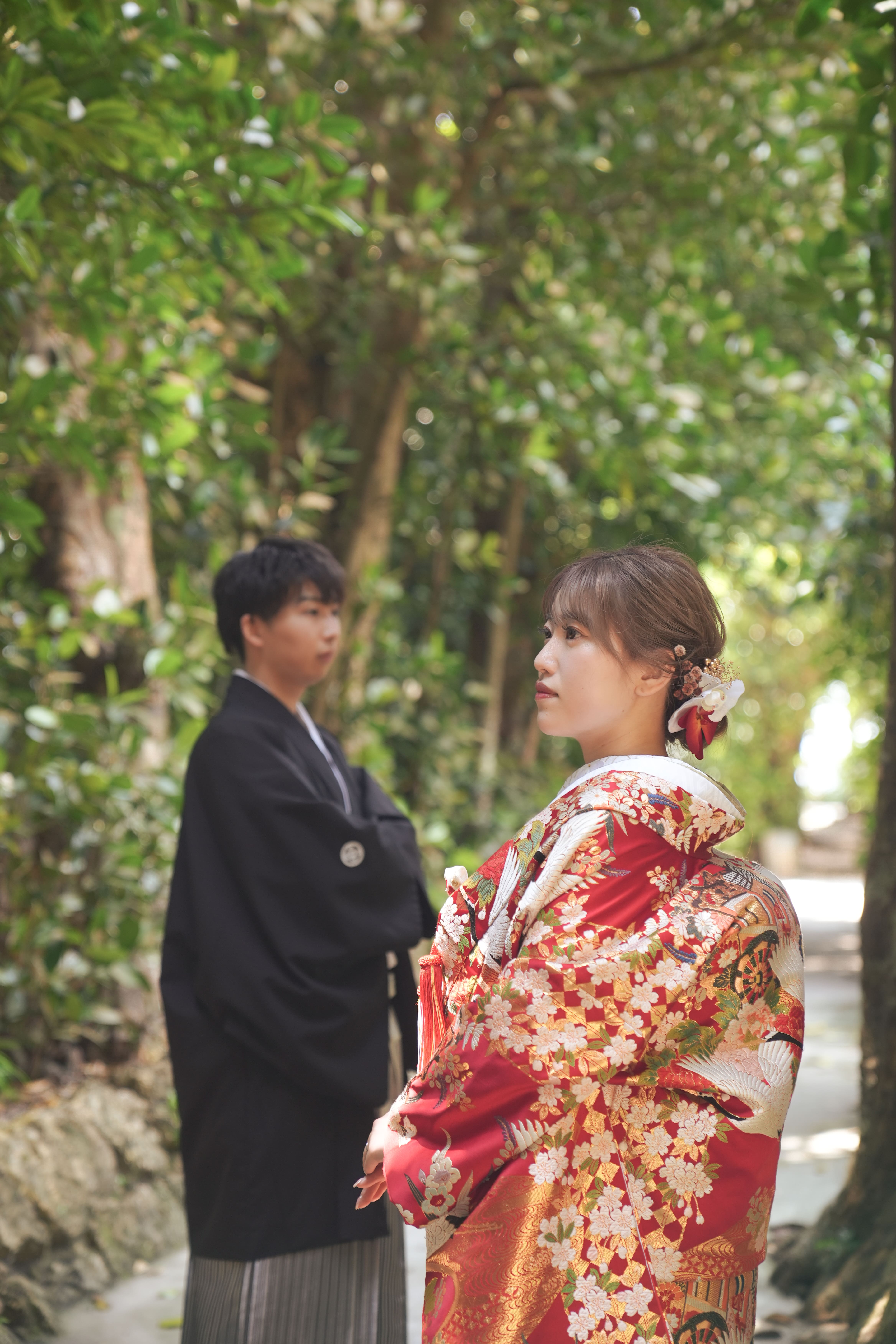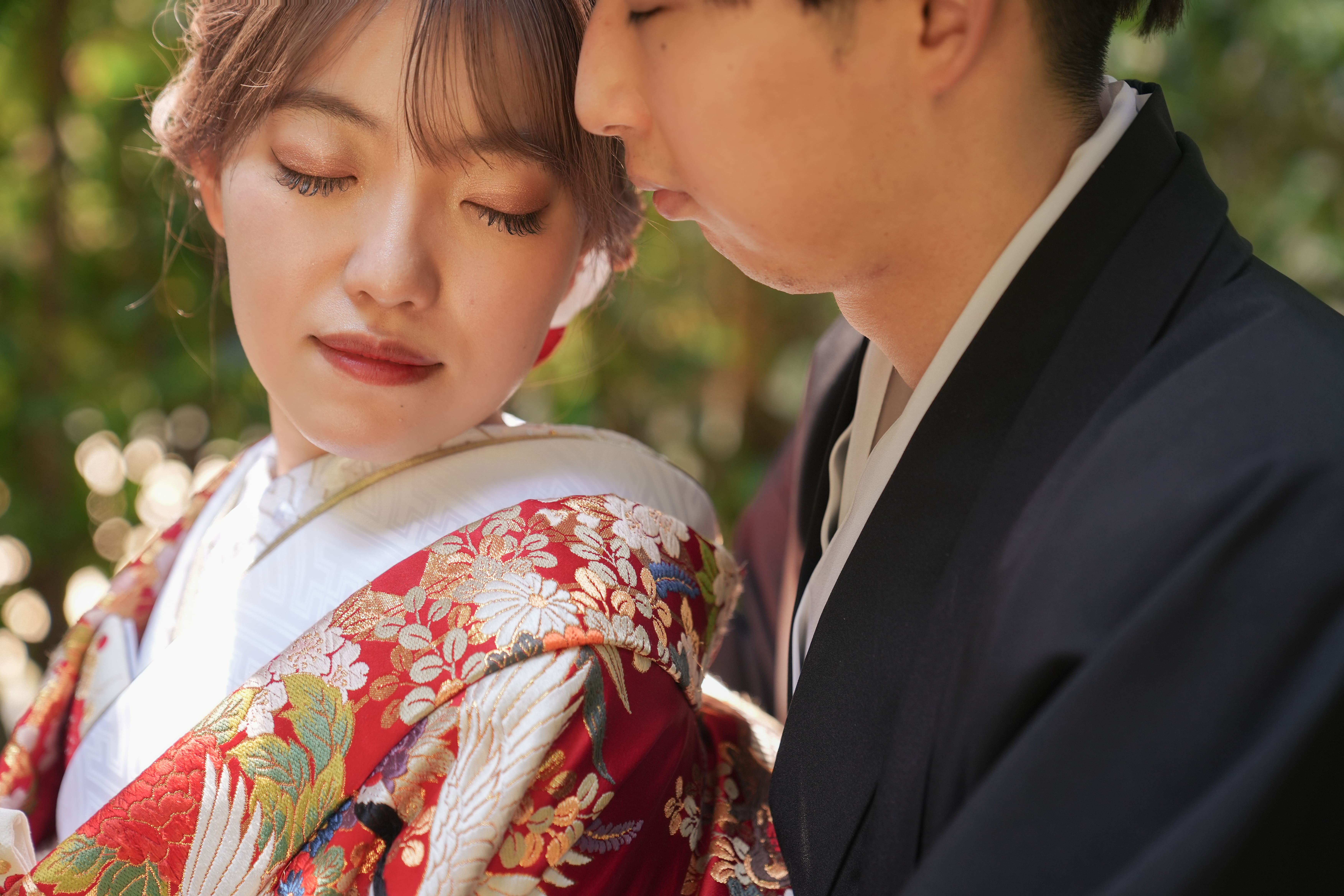 本格日本庭園を再現したスタジオで撮る 和装の結婚写真