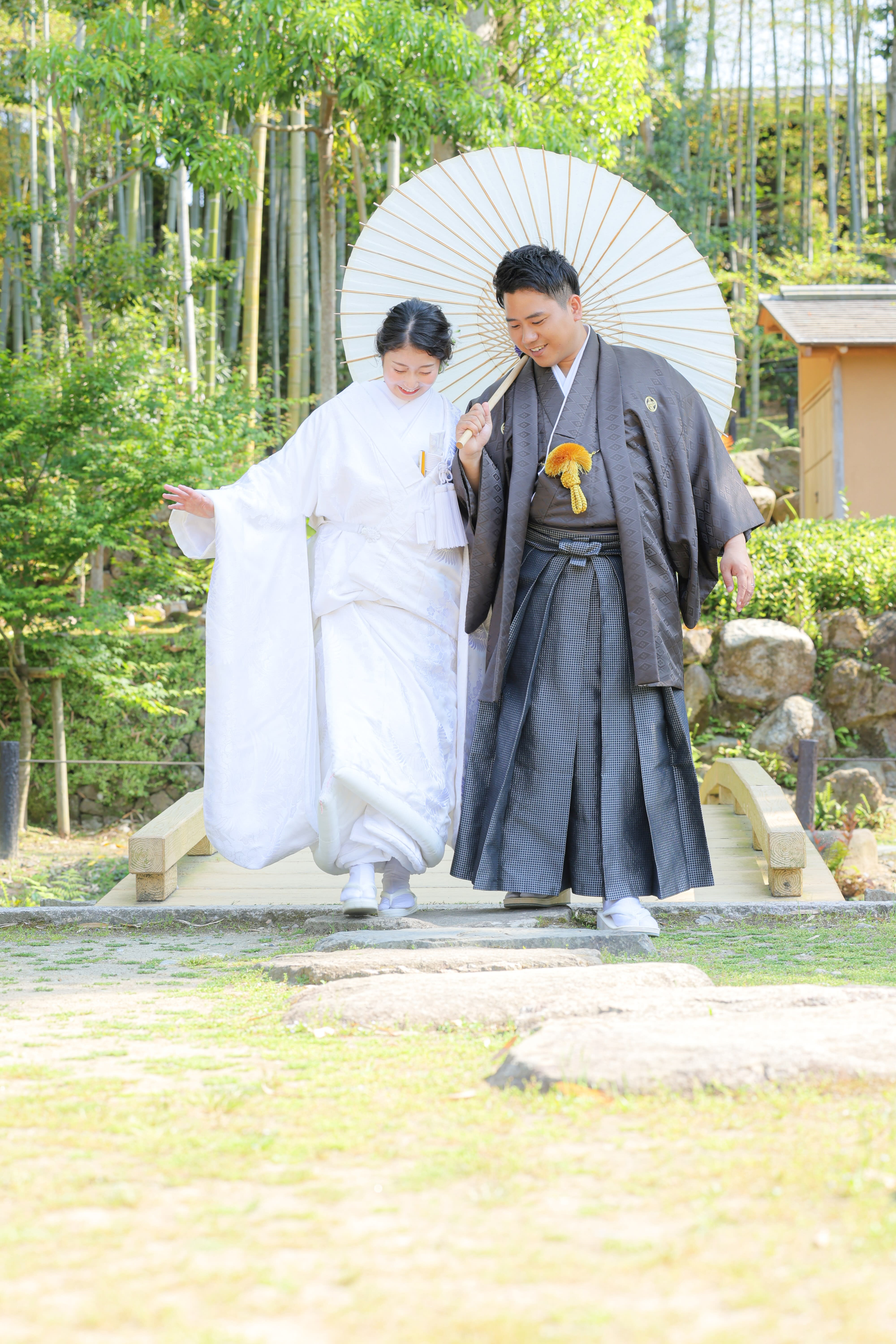 本格日本庭園を再現したスタジオで撮る 和装の結婚写真