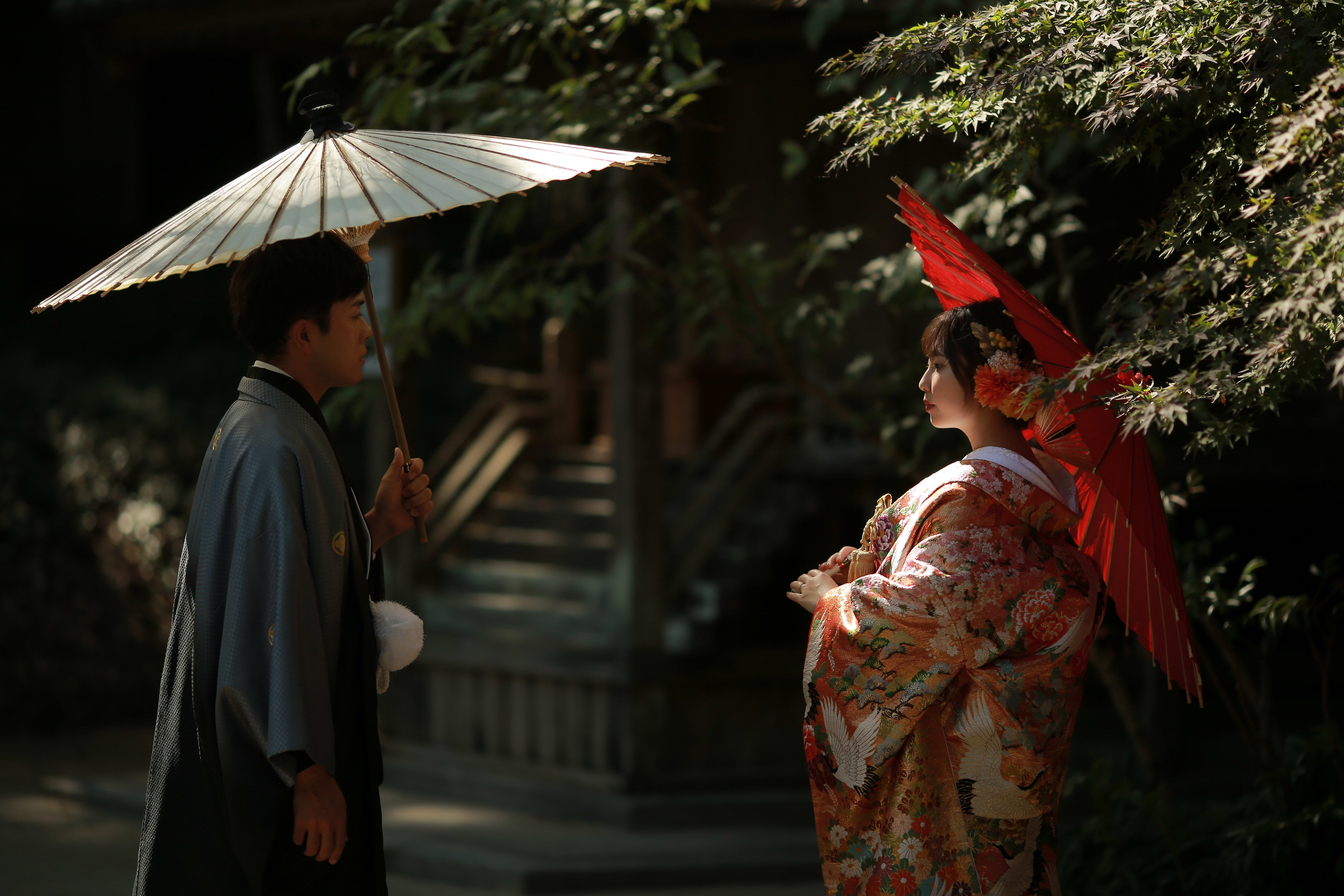 本格的な茶室スタジオで撮影する、和装の結婚写真