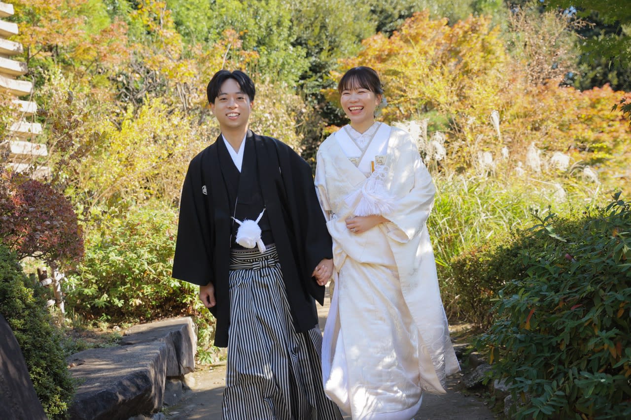 新宿店の本格的な茶室スタジオで撮影する、和装の結婚写真