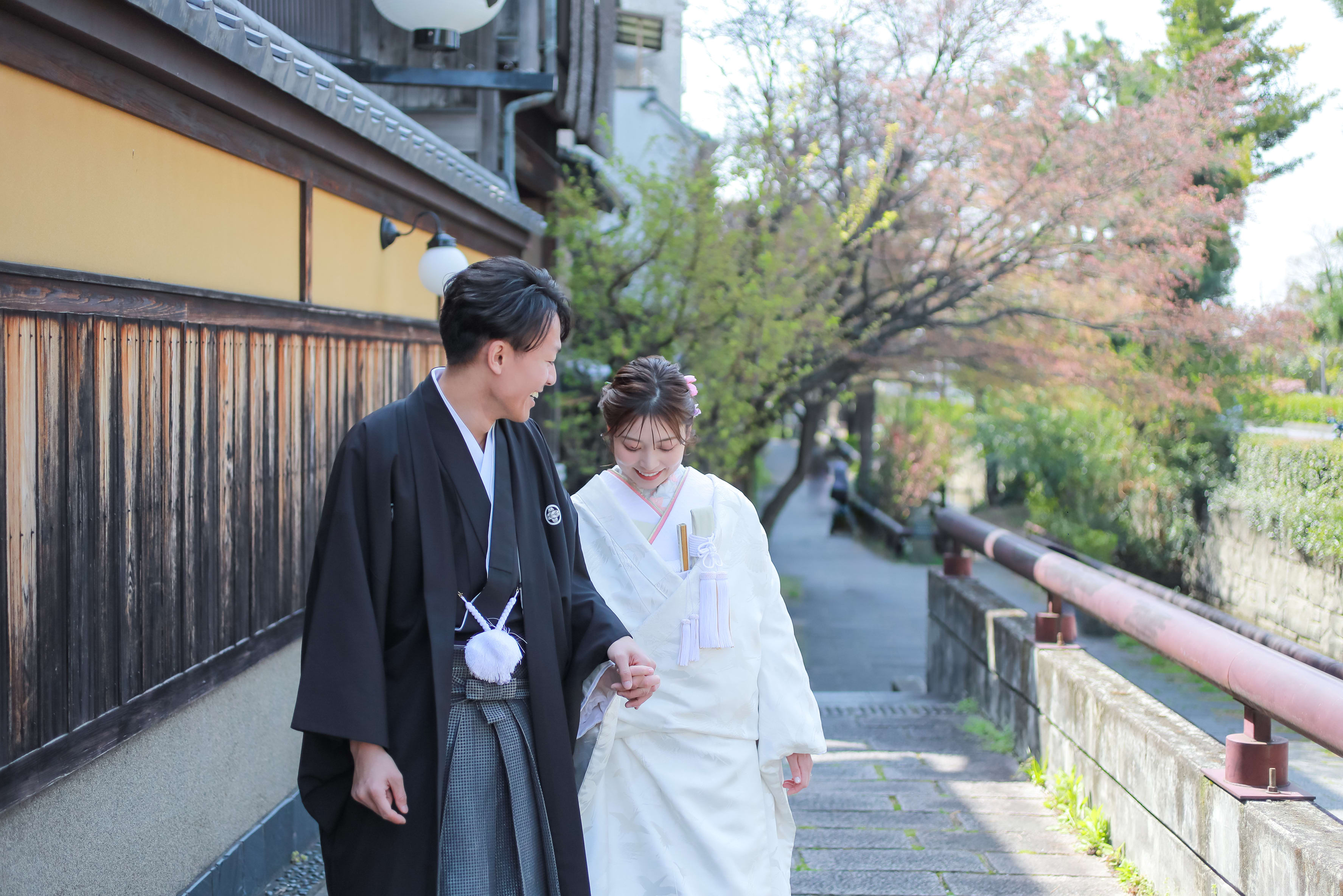 本格日本庭園を再現したスタジオで撮る 和装の結婚写真