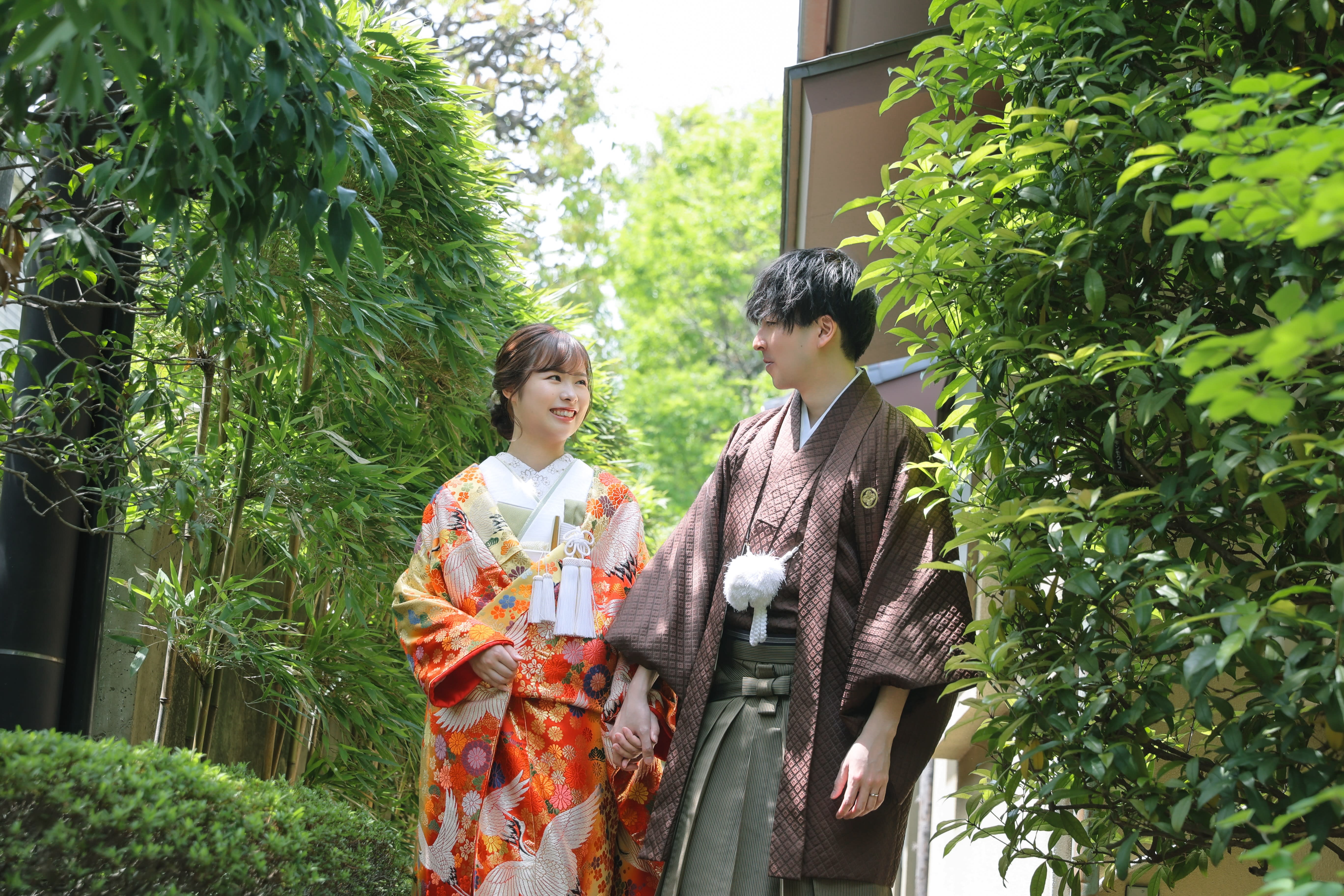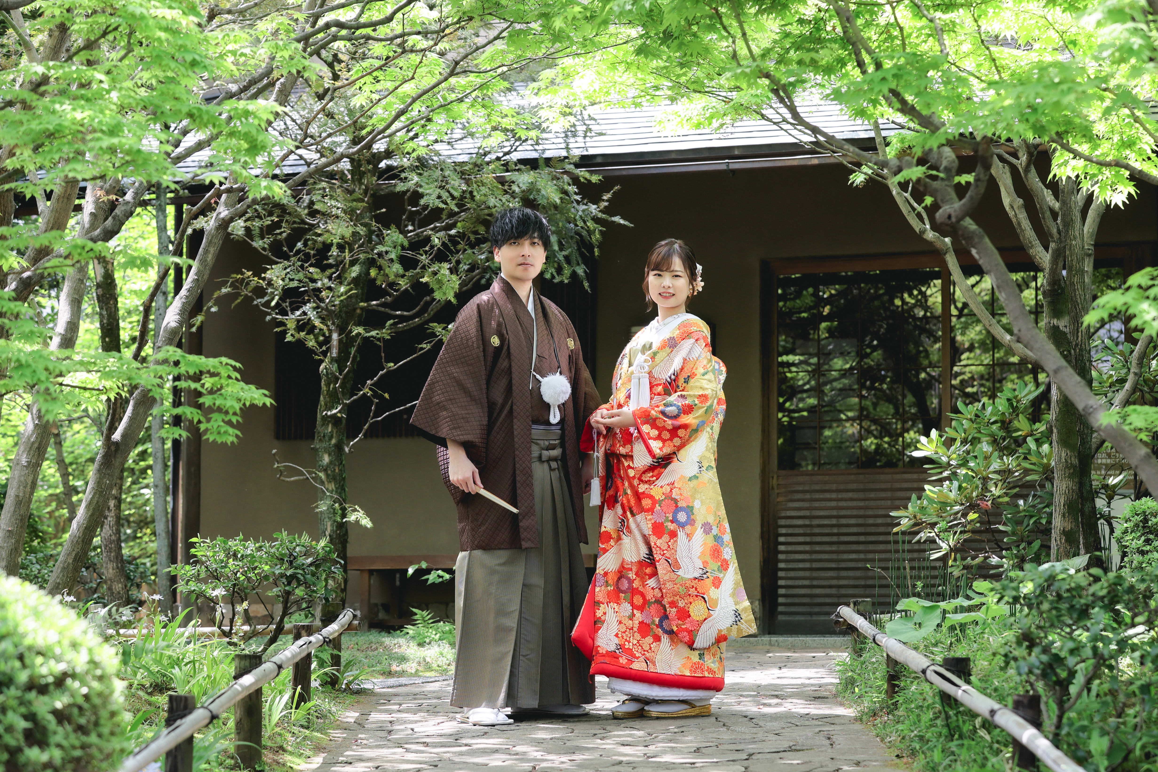 本格日本庭園を再現したスタジオで撮る 和装の結婚写真