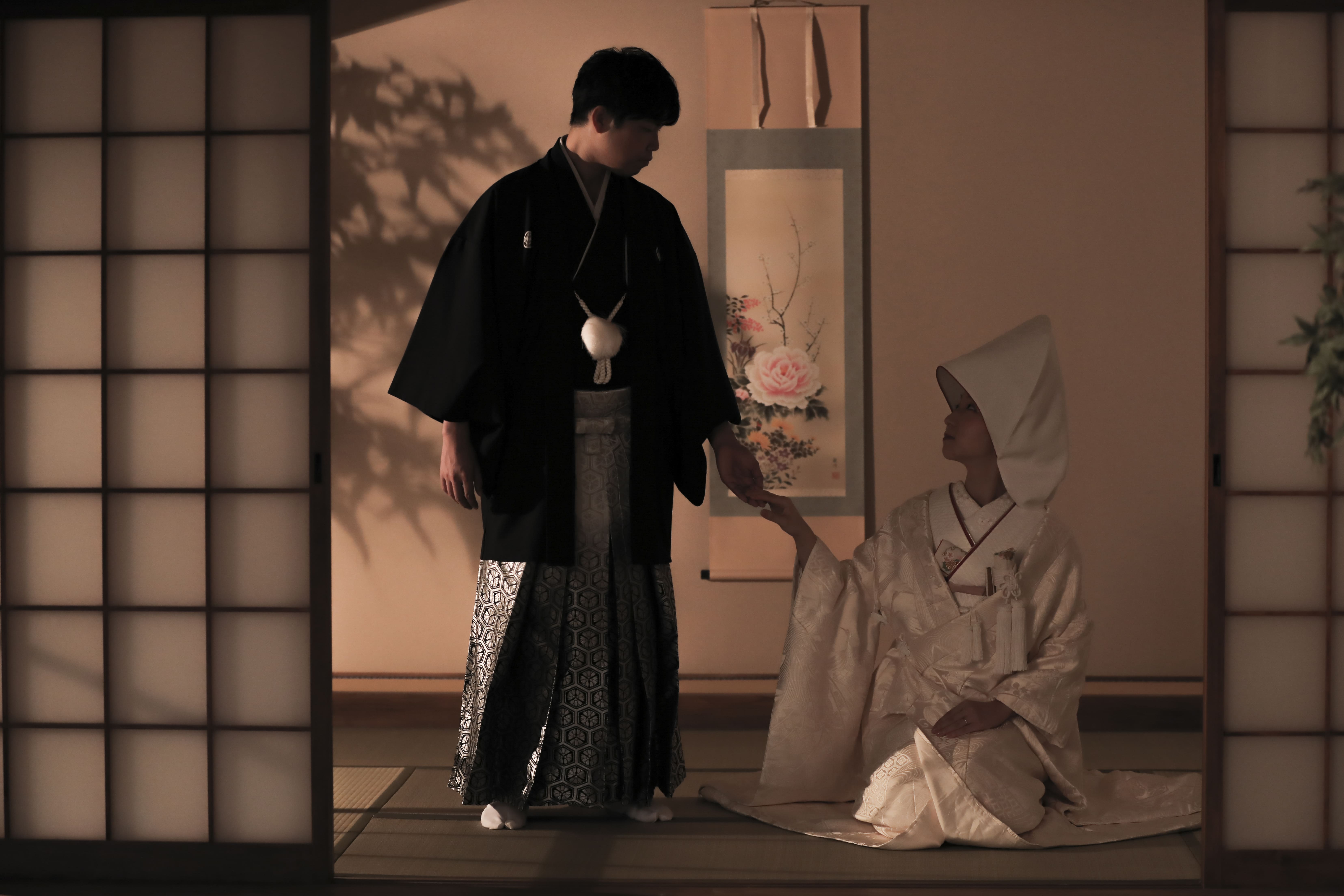 本格日本庭園を再現したスタジオで撮る 和装の結婚写真