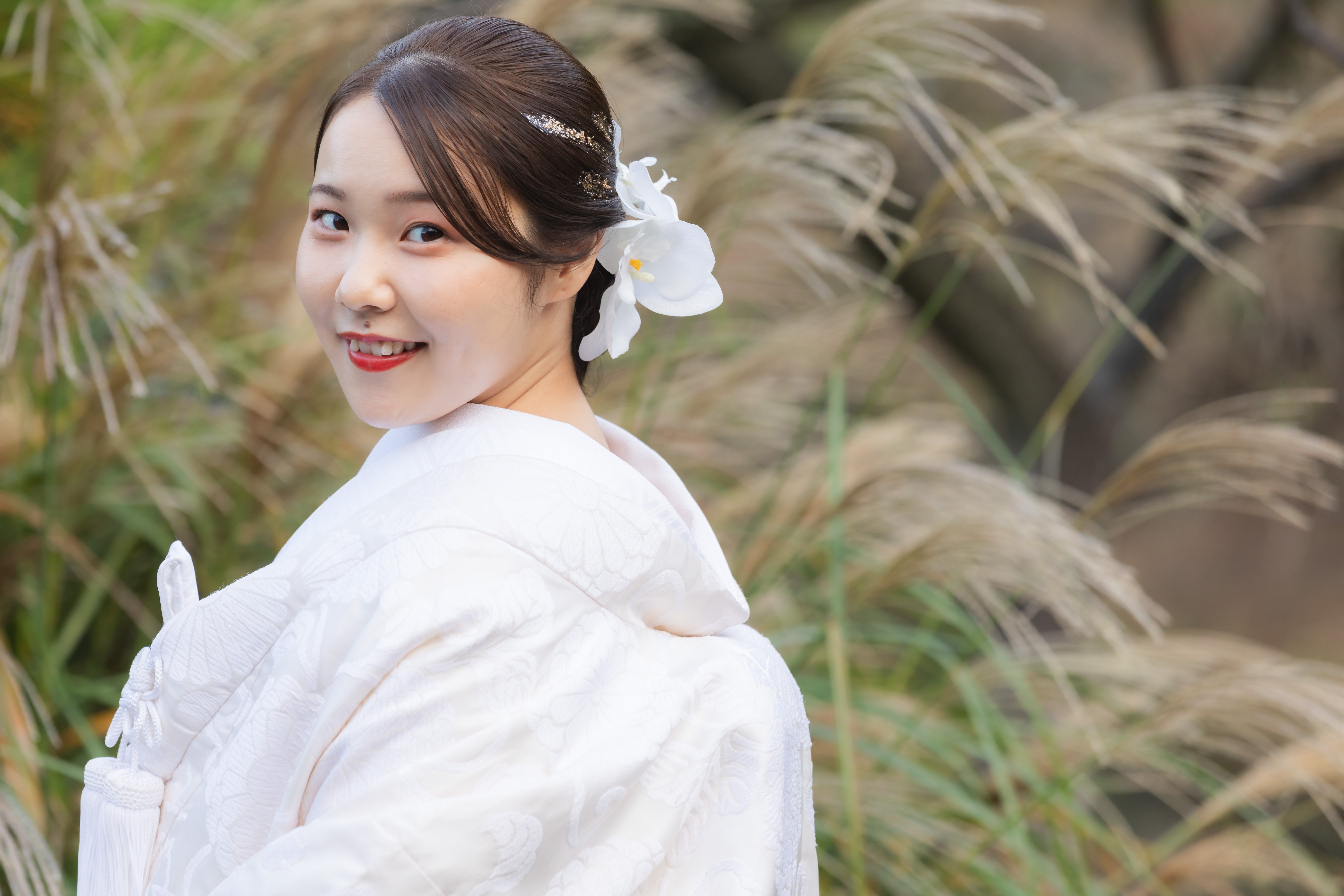 新郎新婦様お二人の個性やお好みに合ったヘアメイク、お衣装選び、小物アレンジをご提案させて頂きます。 新婦様の柔らかい雰囲気を引き出せるようなヘアメイクを心がけております。 一級着付け技能士資格も取得し、着付けの技術にこだわって新郎新婦様のお着付けをさせていただいております!! 美容師の経験を積み、現在のヘアメイクの仕事をさせていただいてます。 お二人らしさが残るウェディングフォトのサポートさせて頂きます!! どこの店舗でもご指名を承ります。 ヘアメイク歴 14年 美容師国家資格取得 一級着付け技能士資格取得