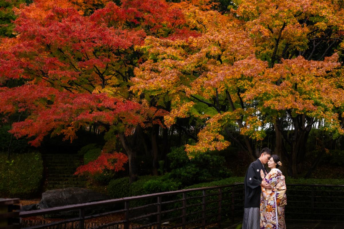 本格日本庭園を再現したスタジオで撮る 和装の結婚写真