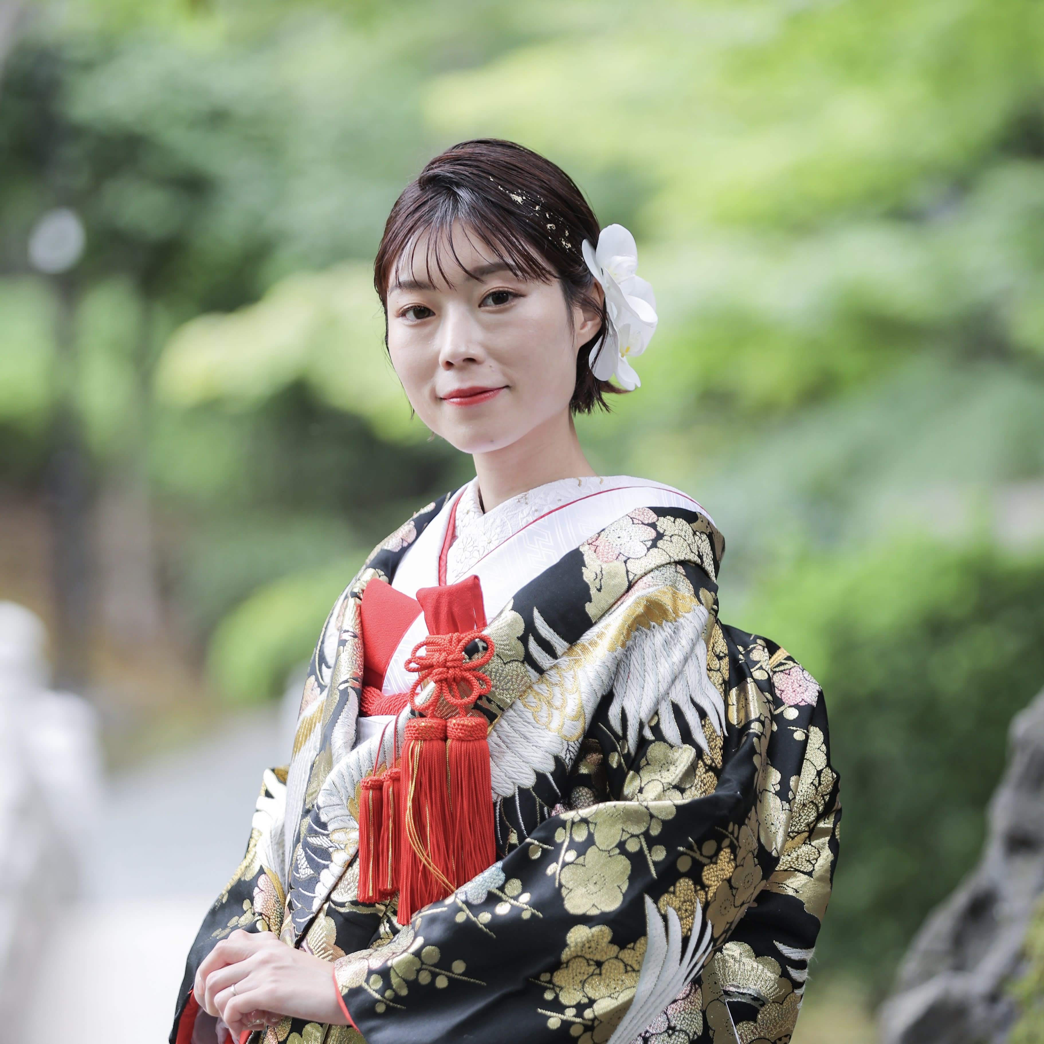 本格日本庭園を再現したスタジオで撮る 和装の結婚写真