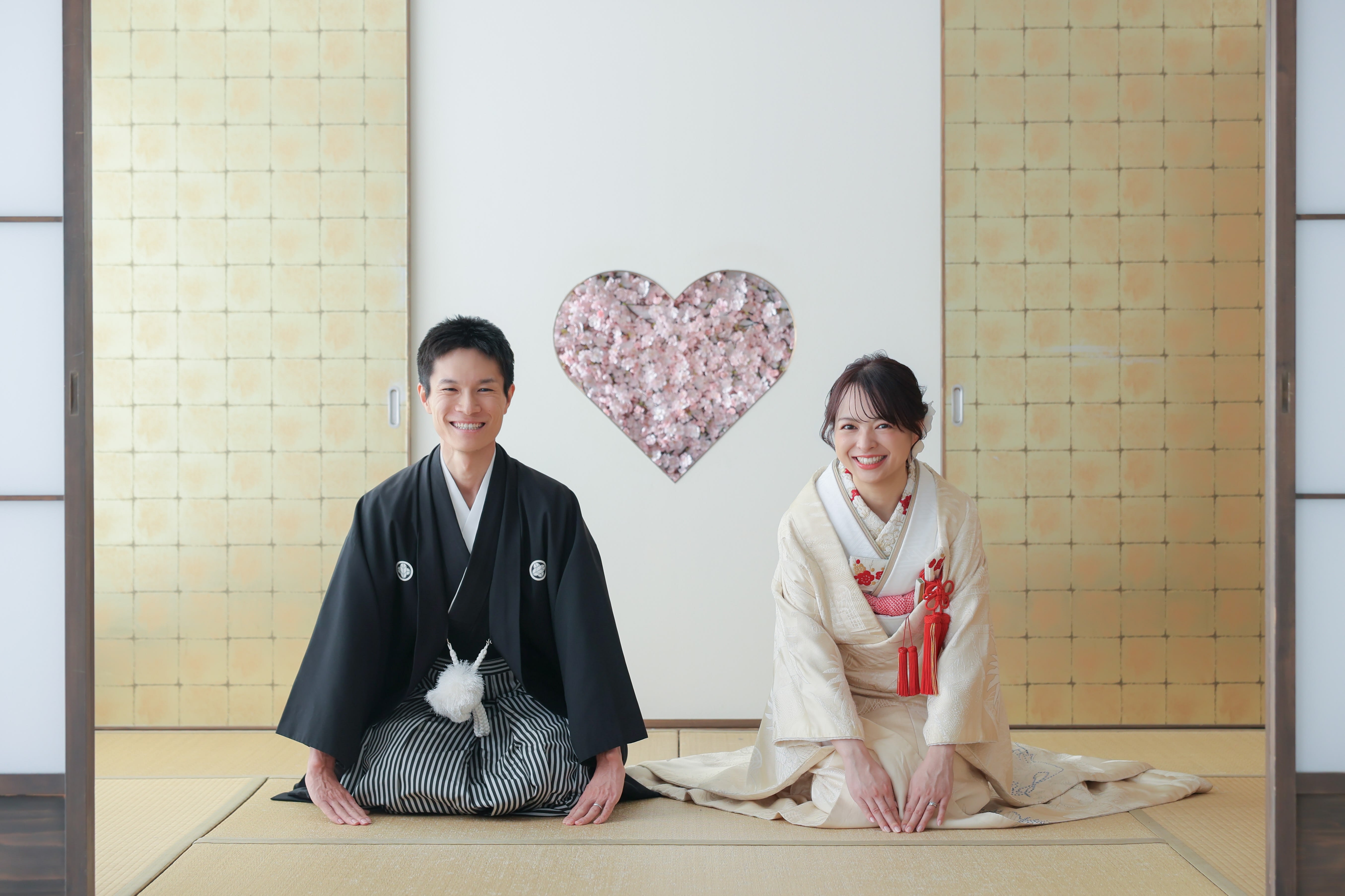 新宿店の本格的な茶室スタジオで撮影する、和装の結婚写真