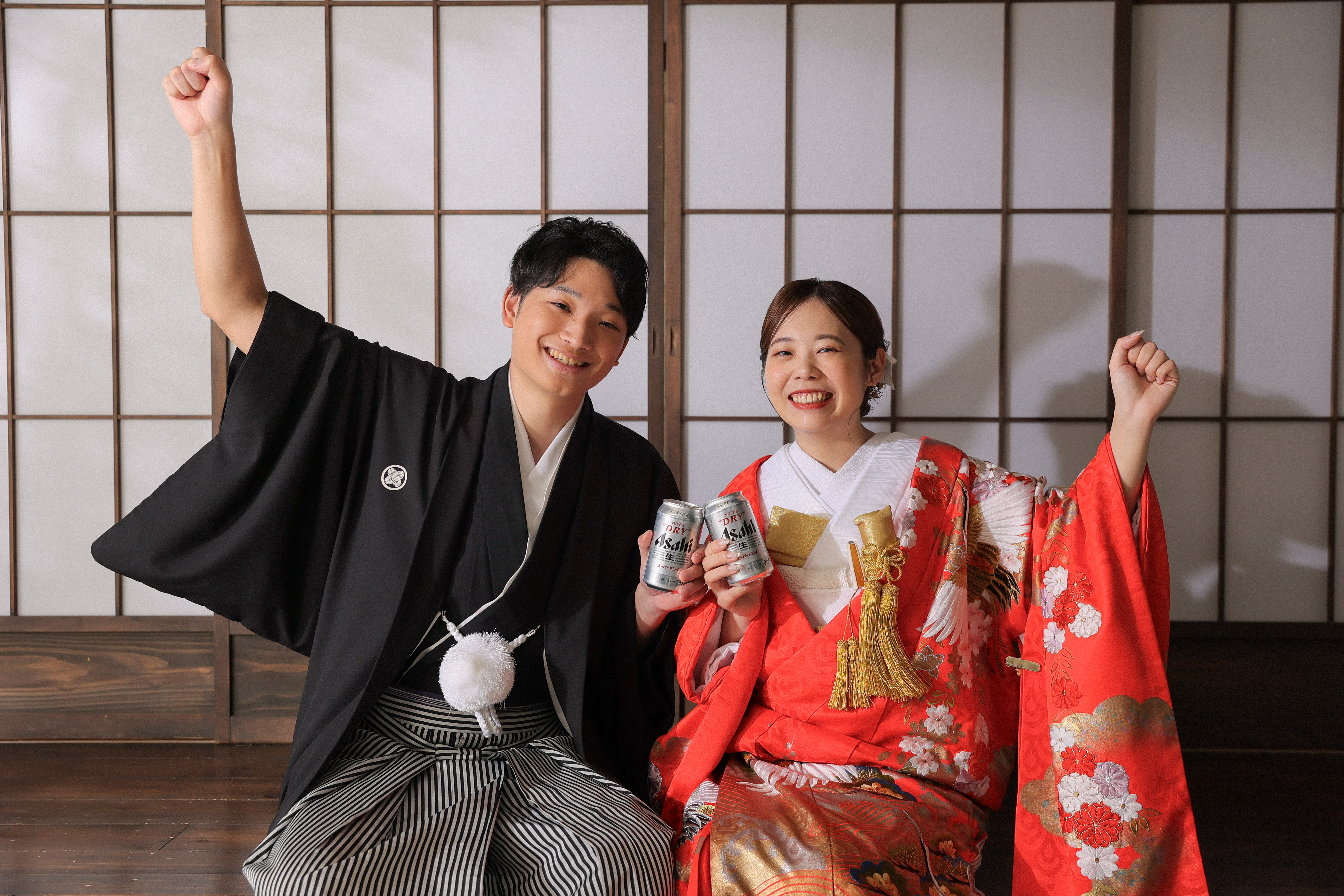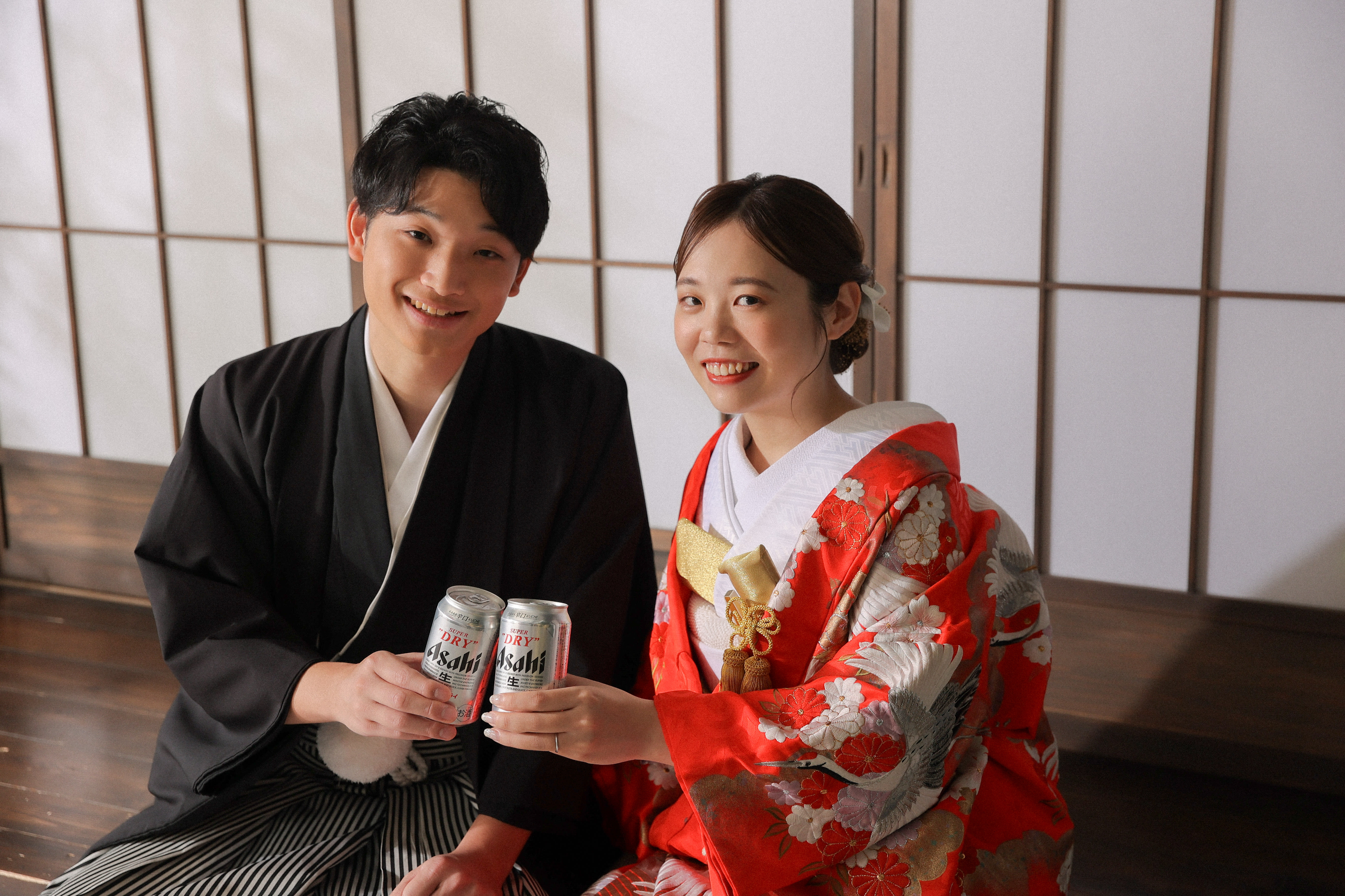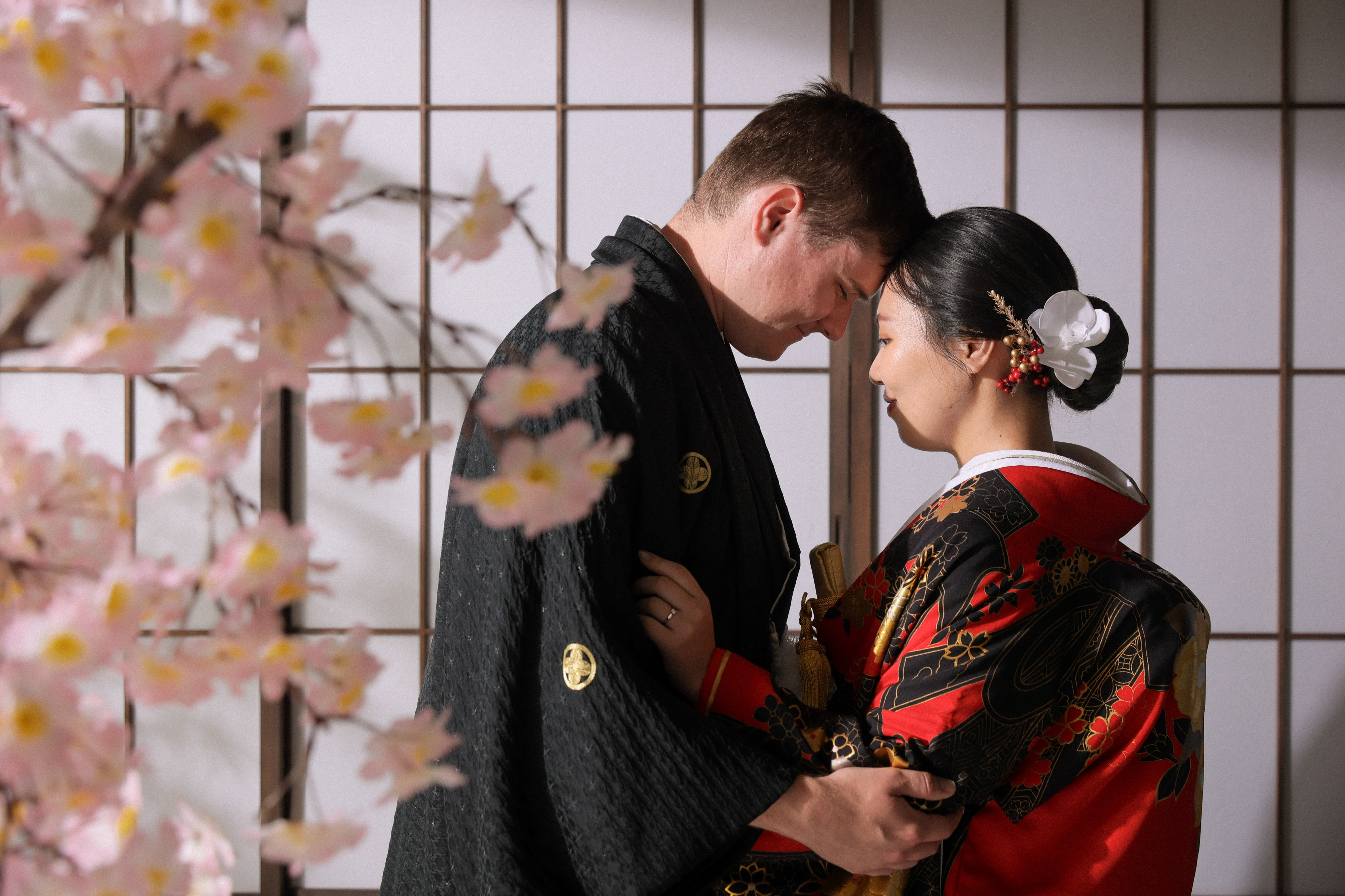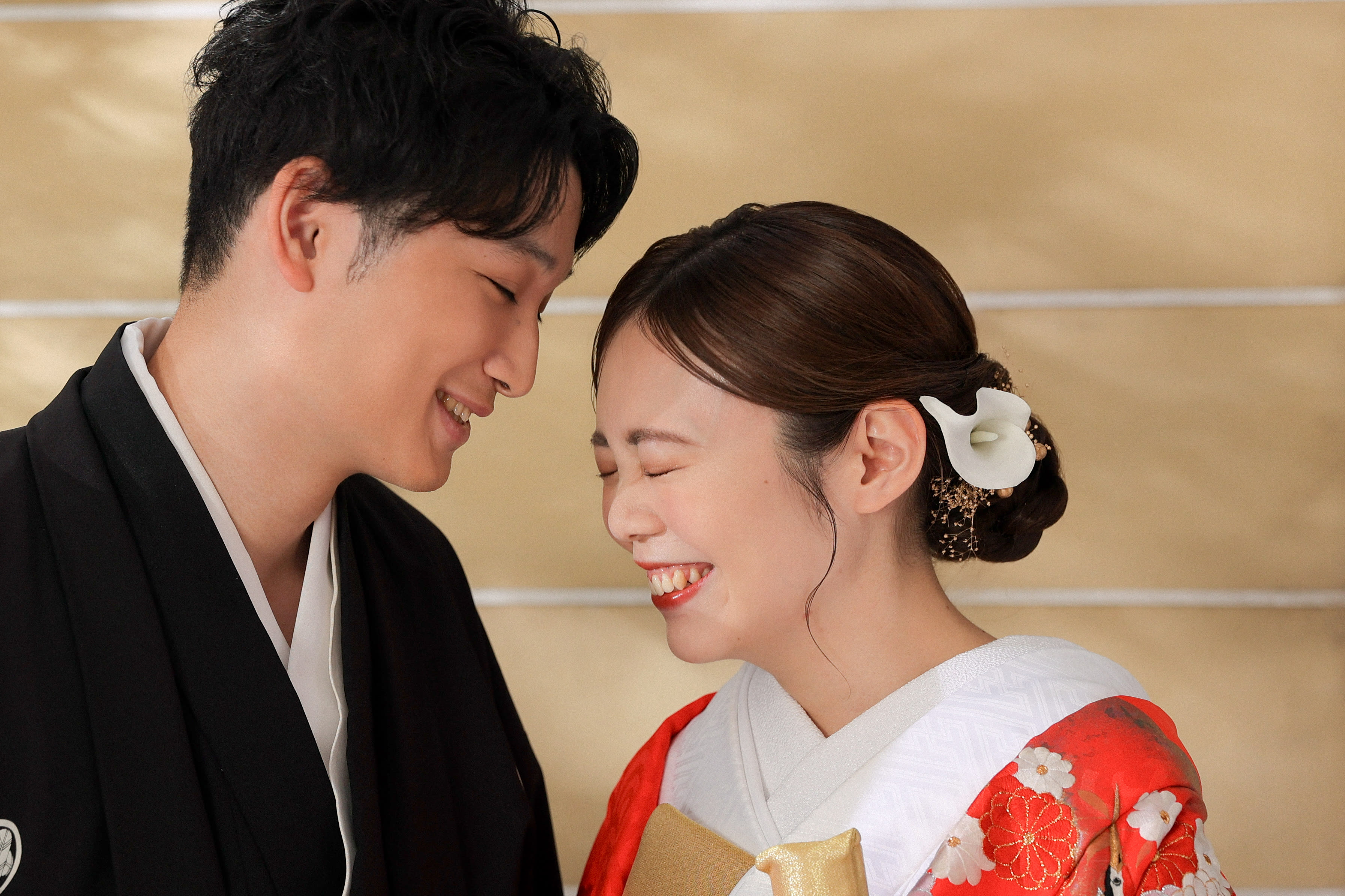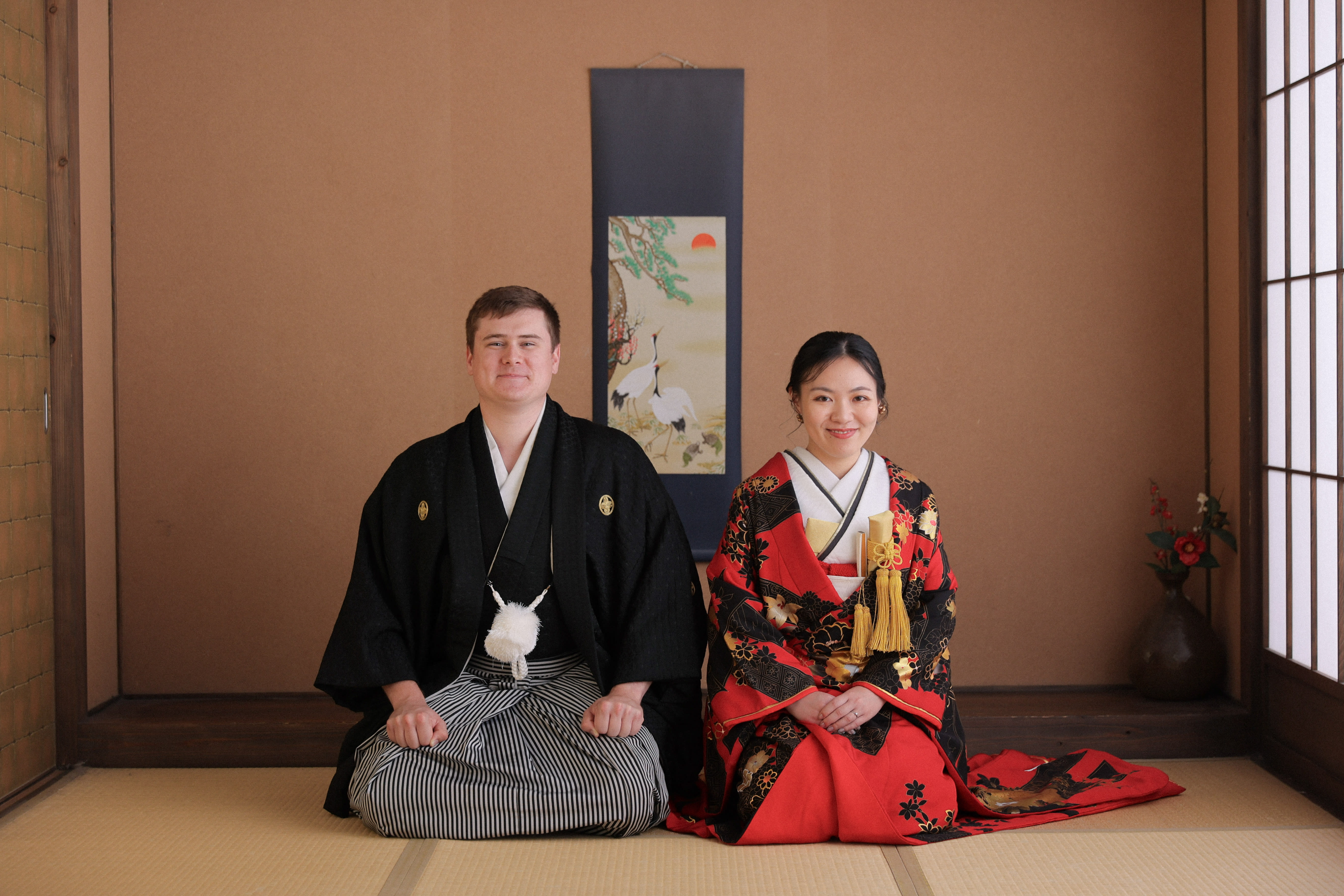 新宿店の本格的な茶室スタジオで撮影する、和装の結婚写真