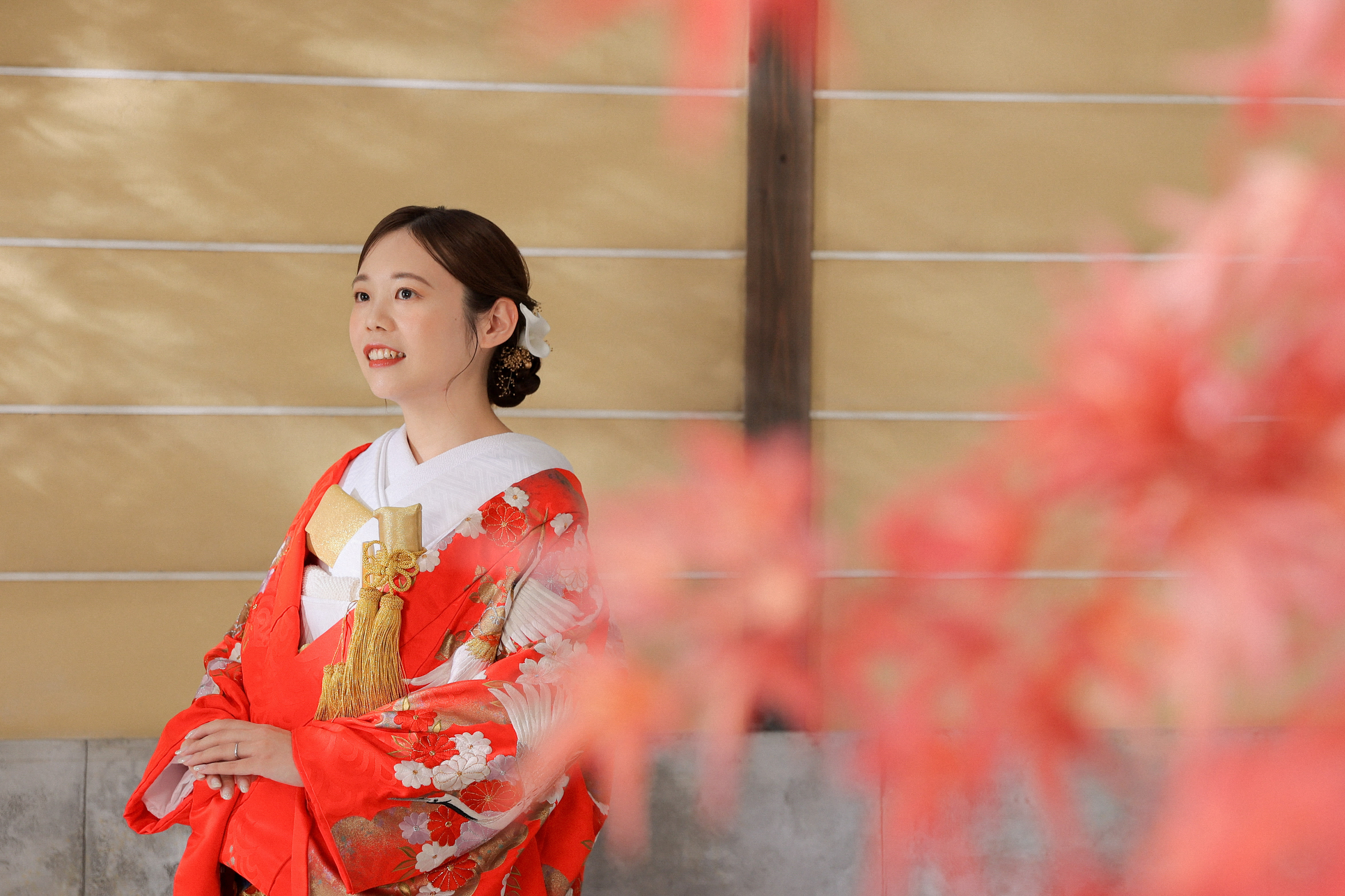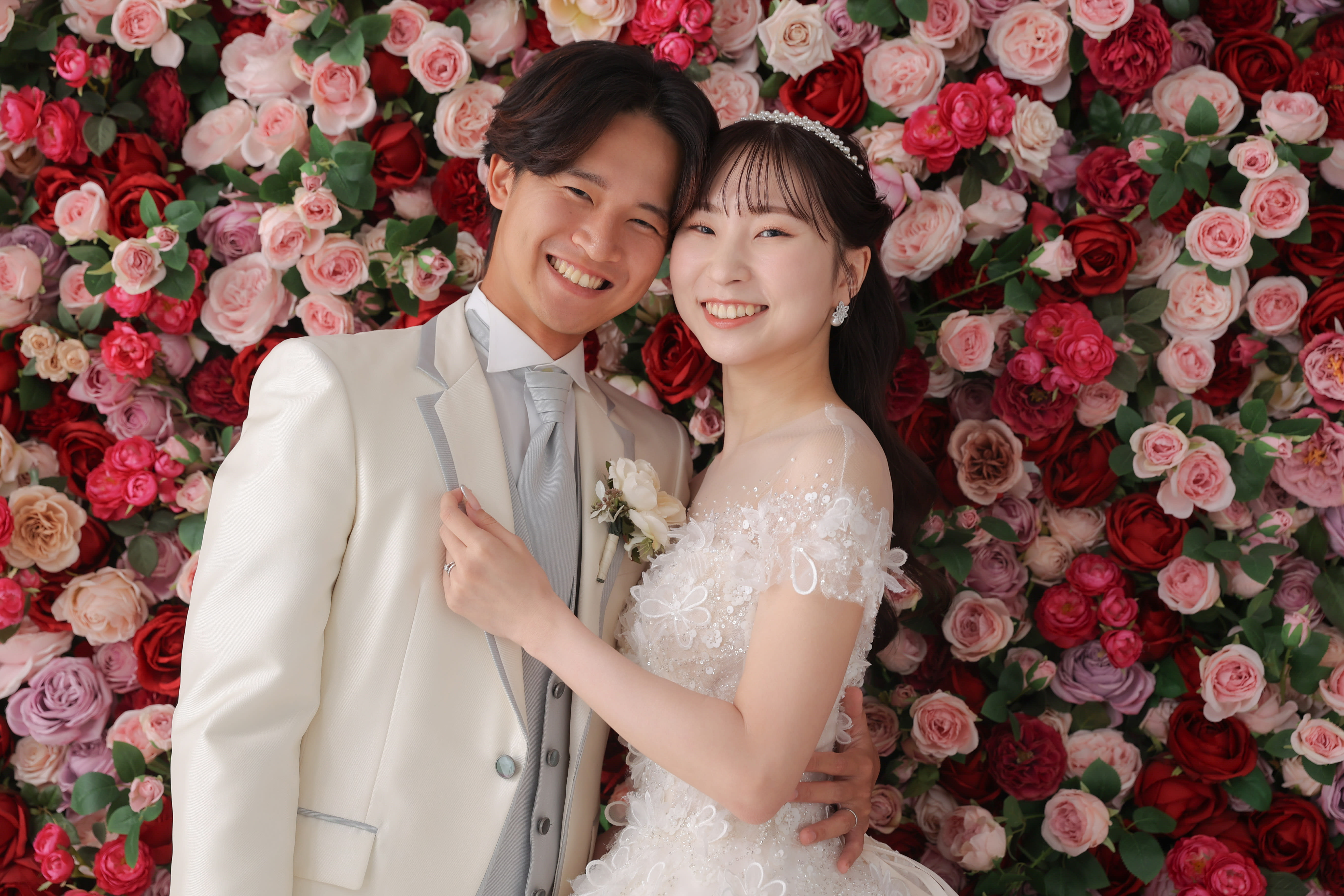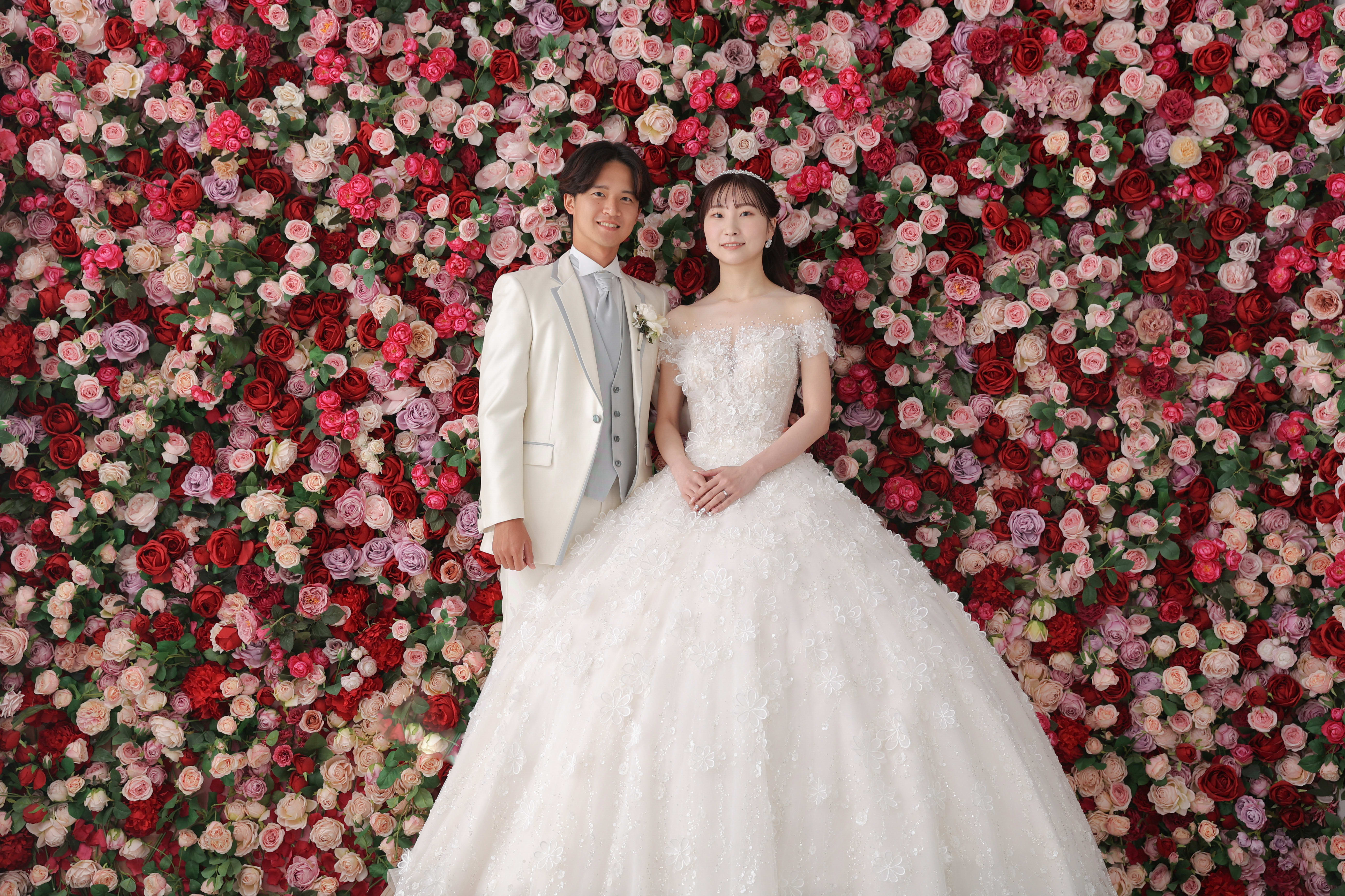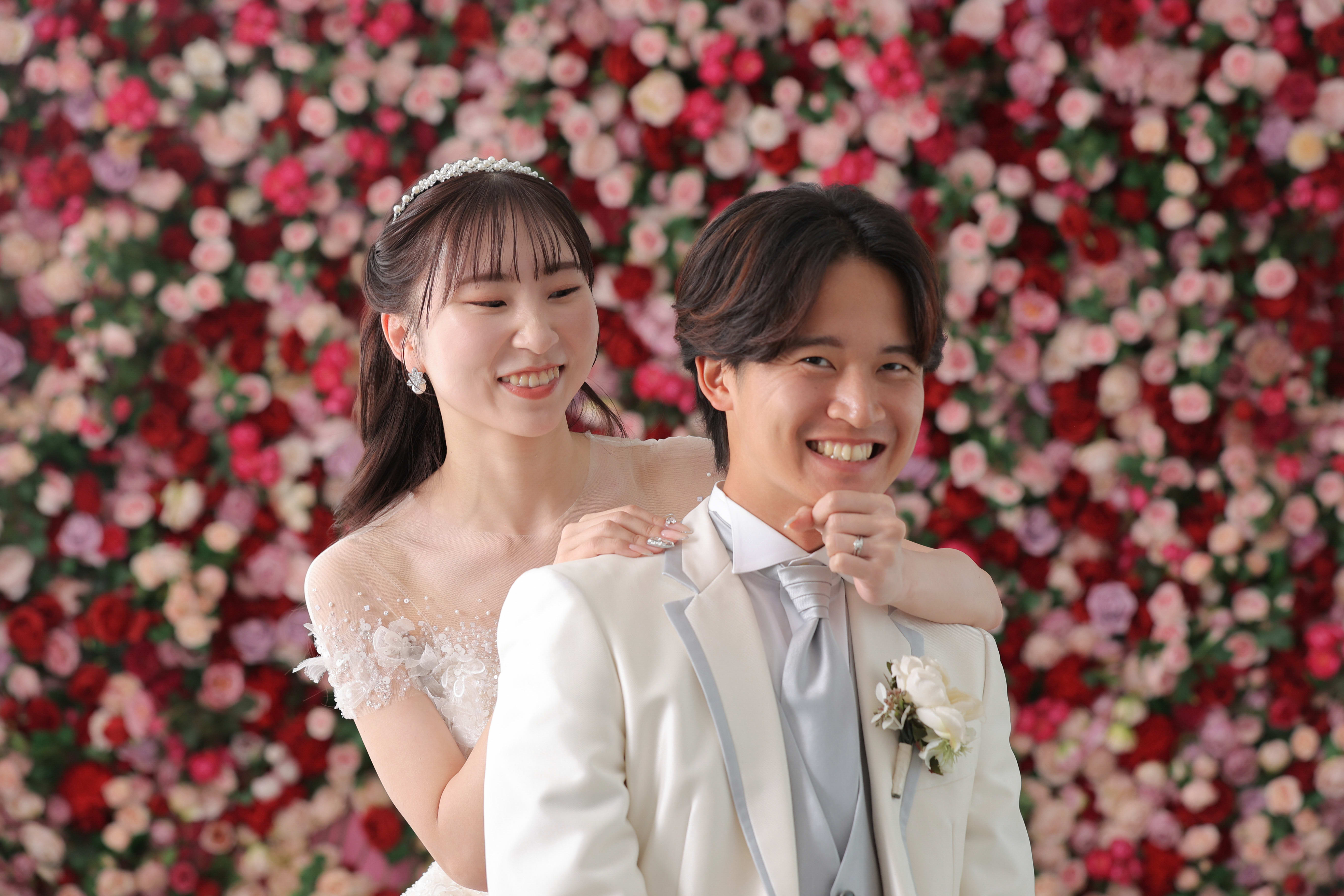 一面お花の壁が登場!新宿店ハウススタジオで撮影する洋装ウェディングフォトプラン