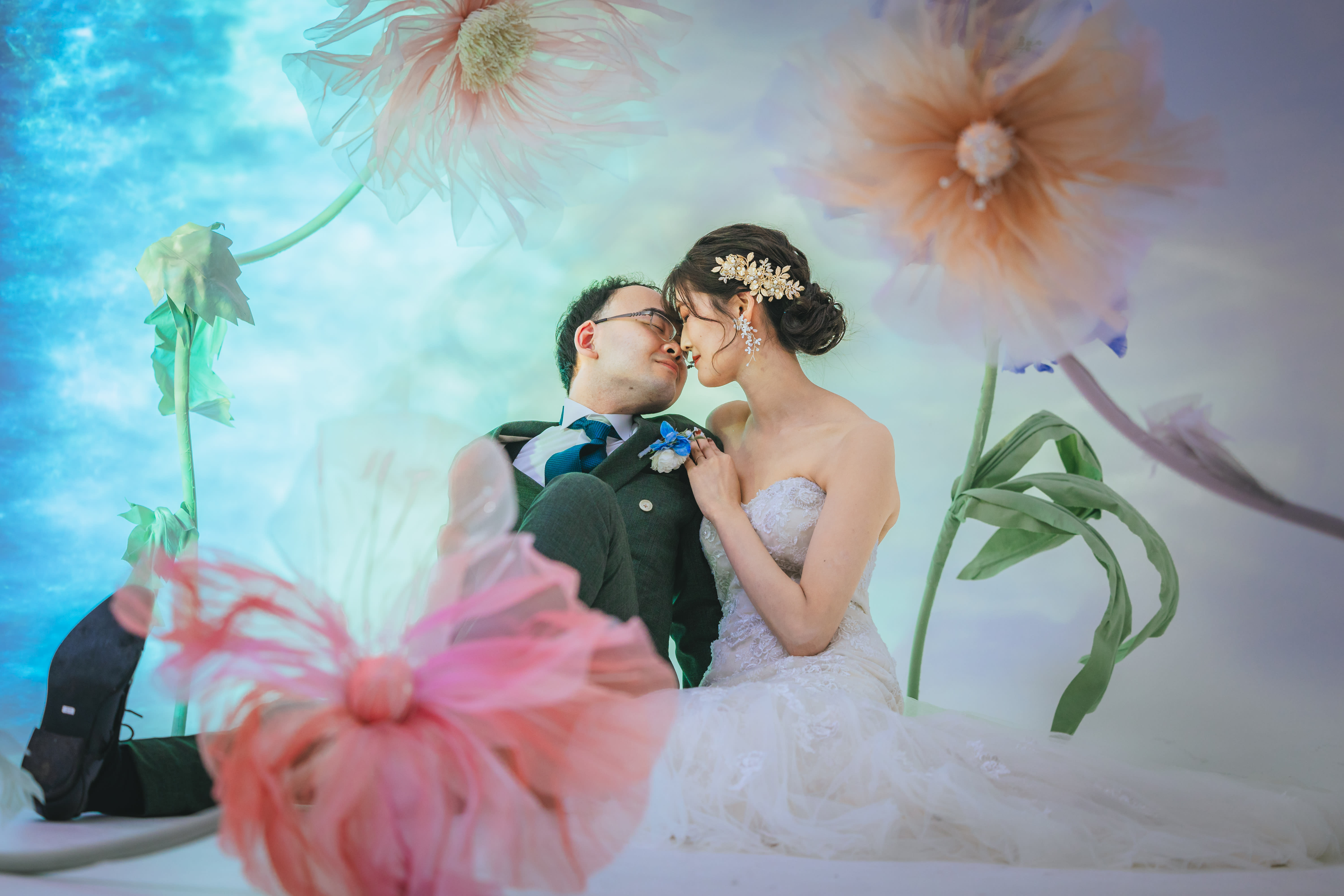 一面お花の壁が登場!ハウススタジオで撮影する洋装ウェディングフォトプラン