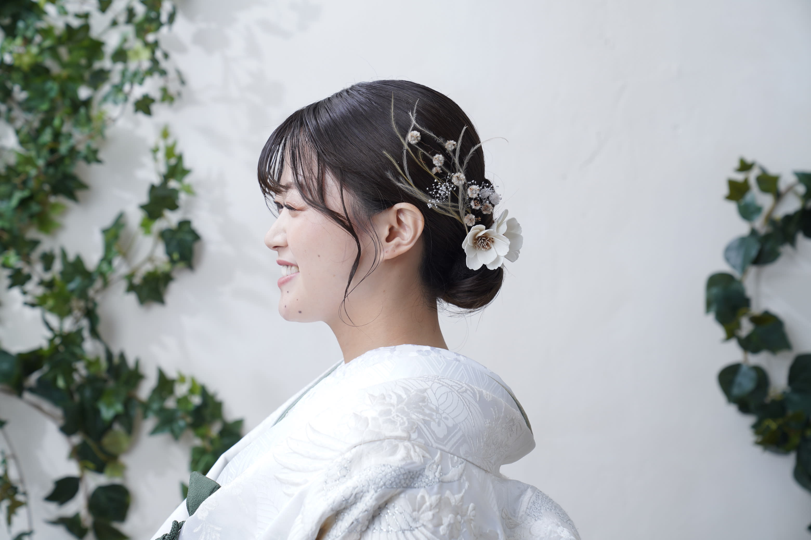 一面お花の壁が登場! 洋館風の立川店スタジオで撮影する洋装ウェディングフォトプラン
