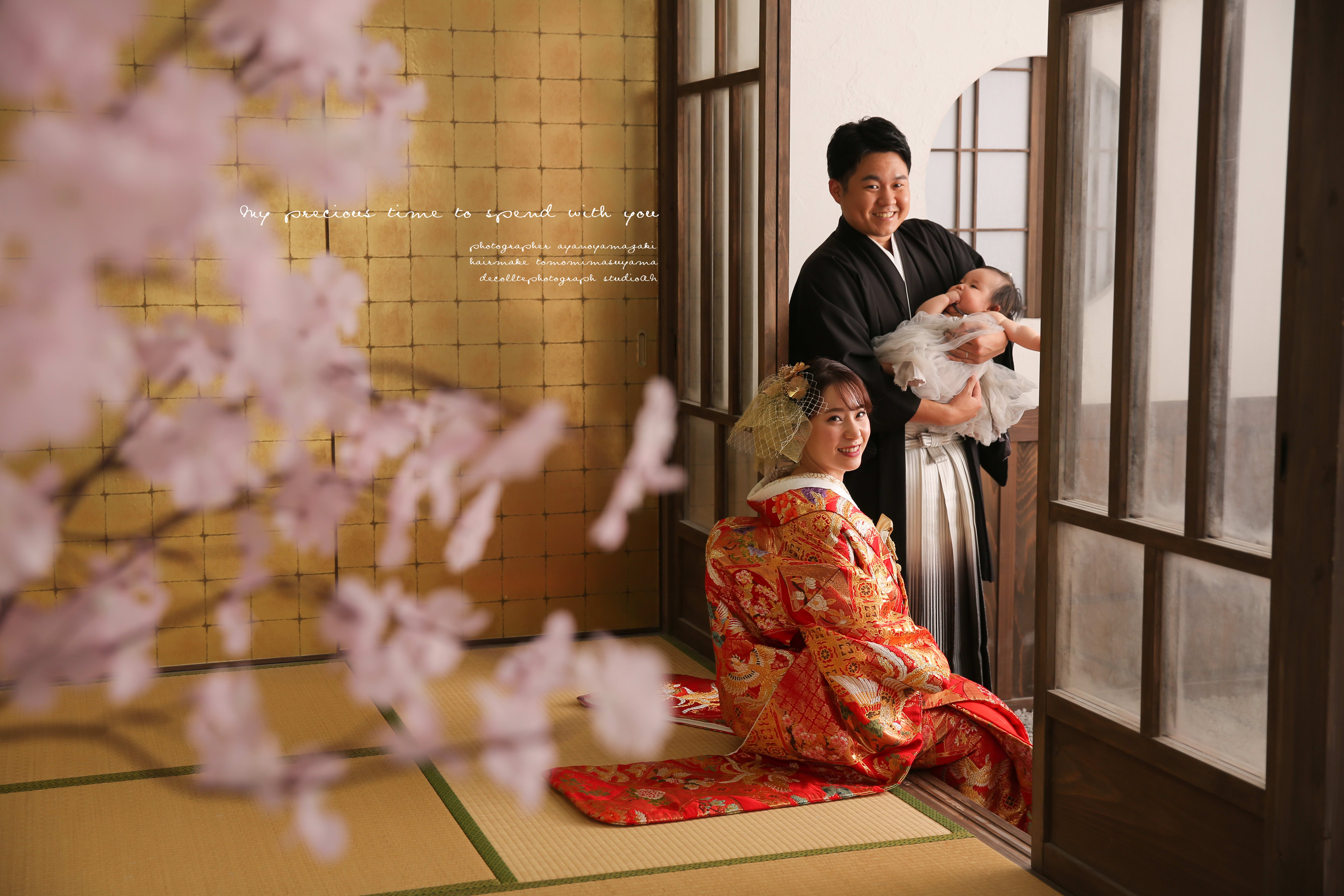 本格的な茶室スタジオで撮影する、和装の結婚写真