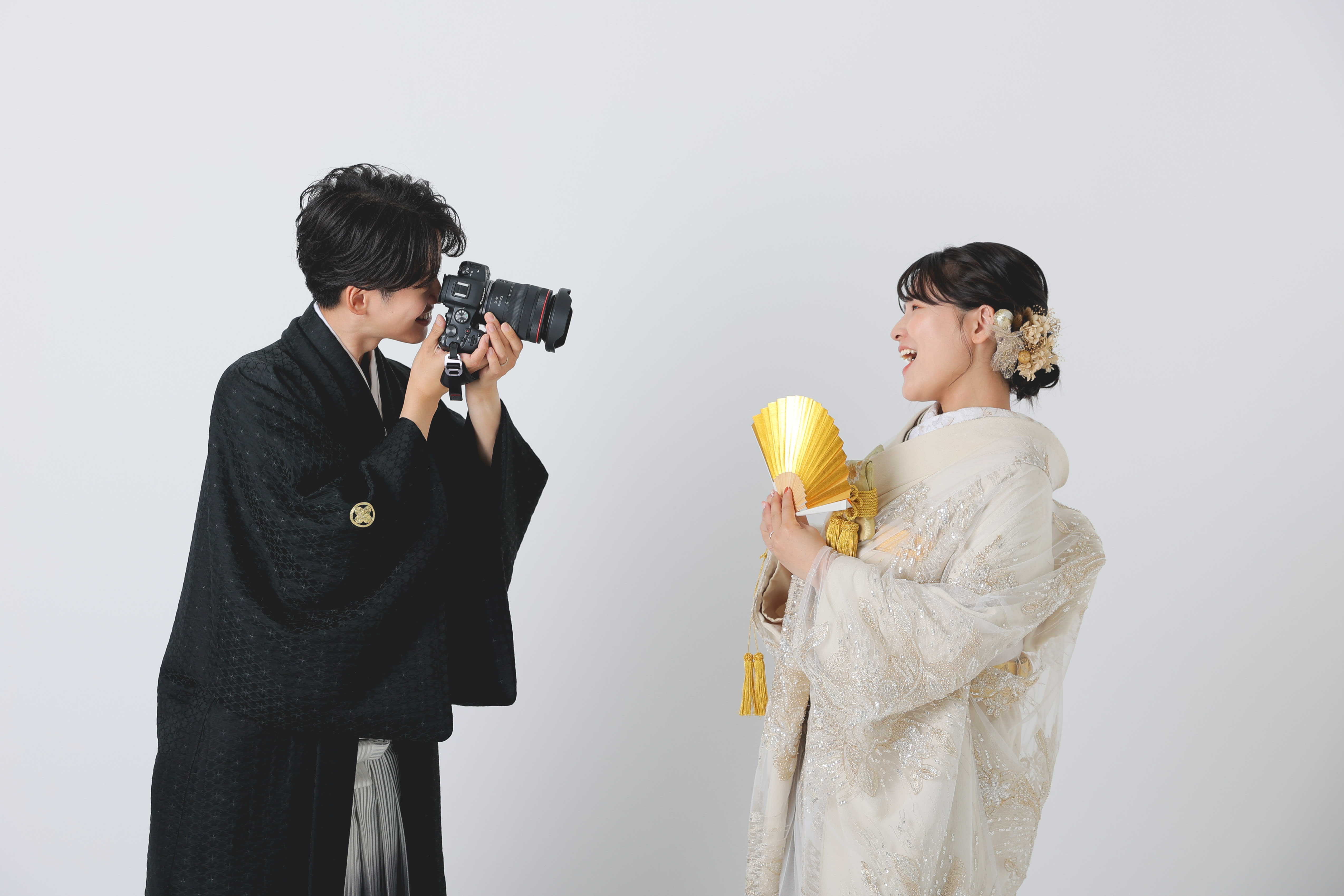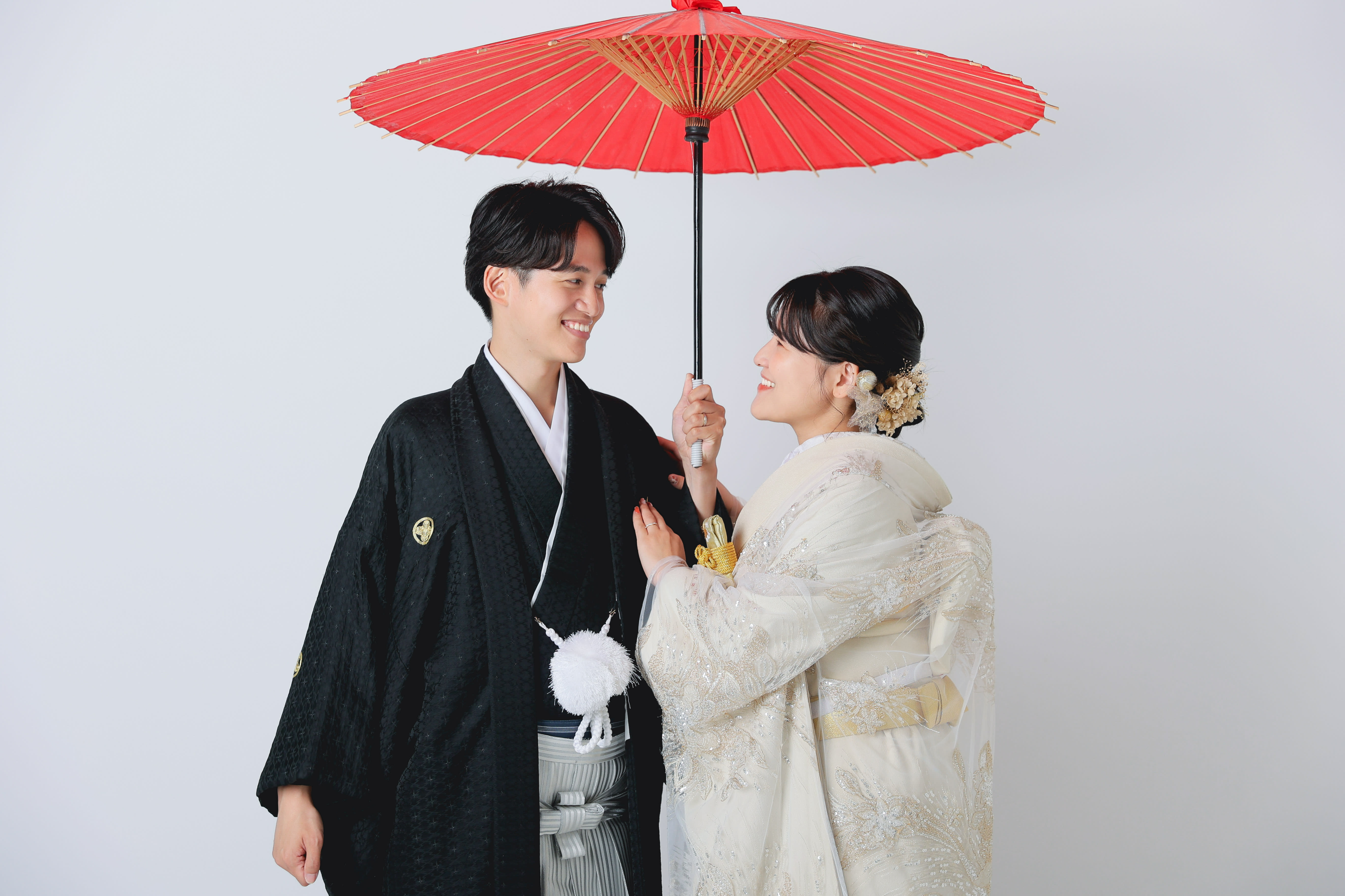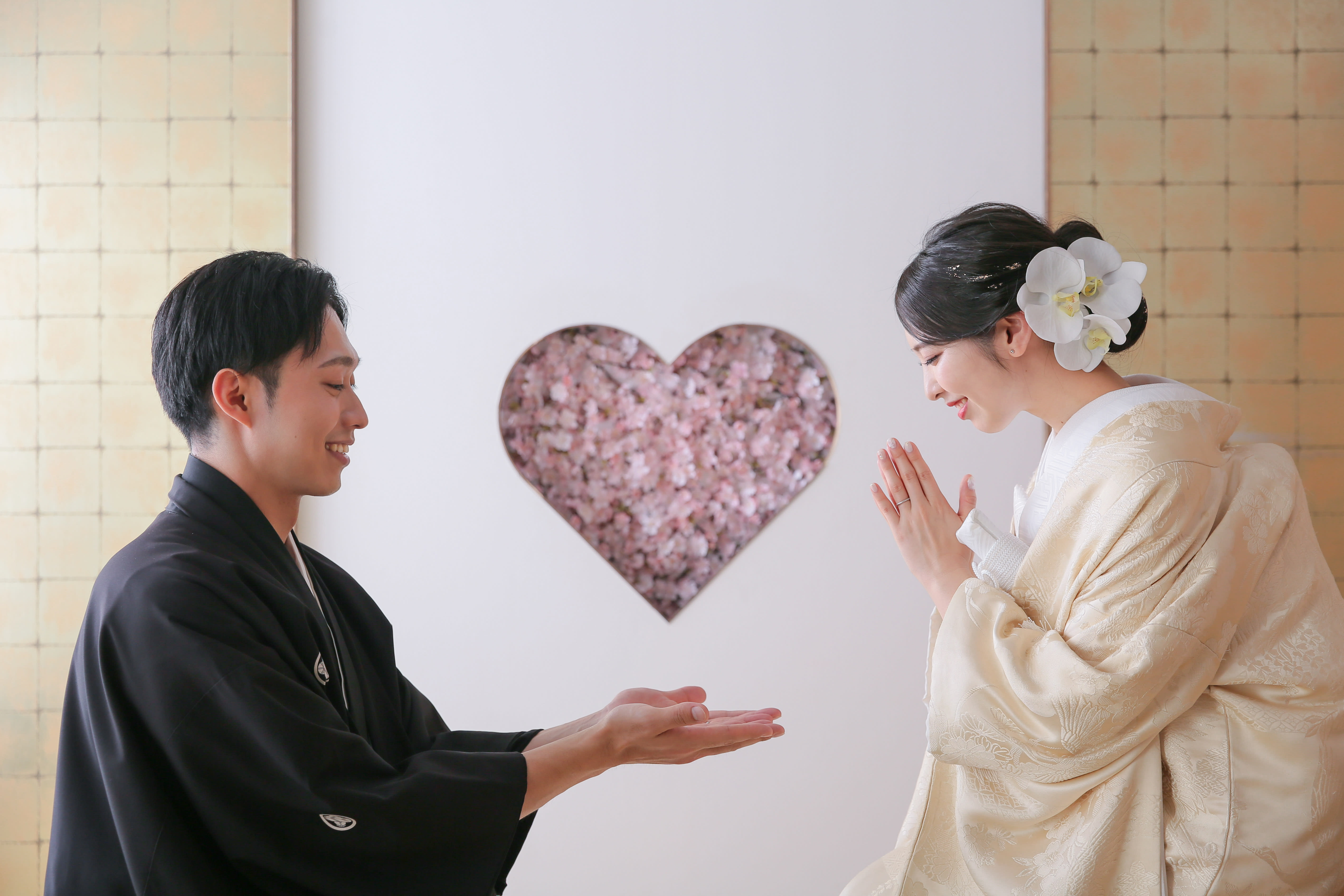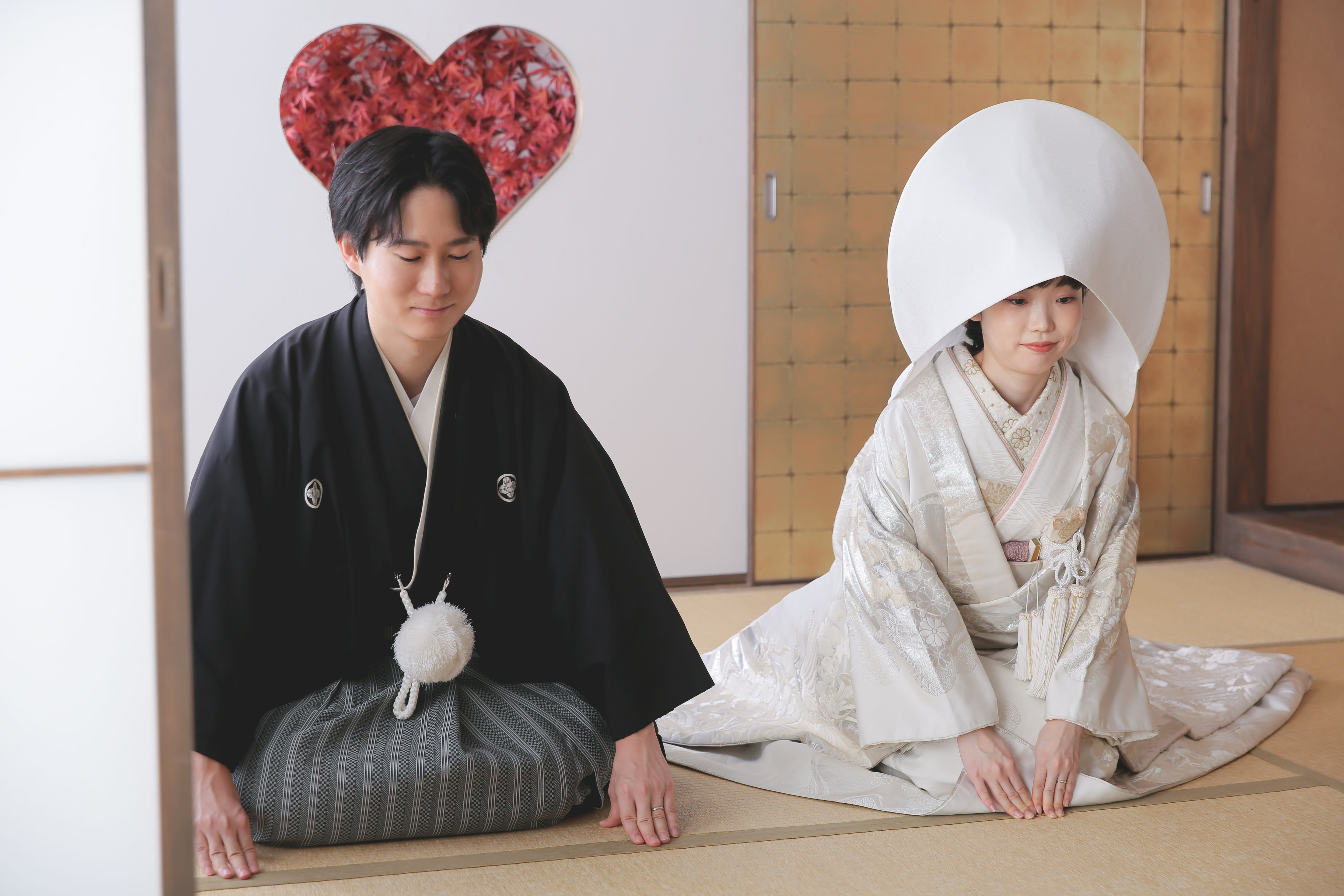 新宿店の本格的な茶室スタジオで撮影する、和装の結婚写真