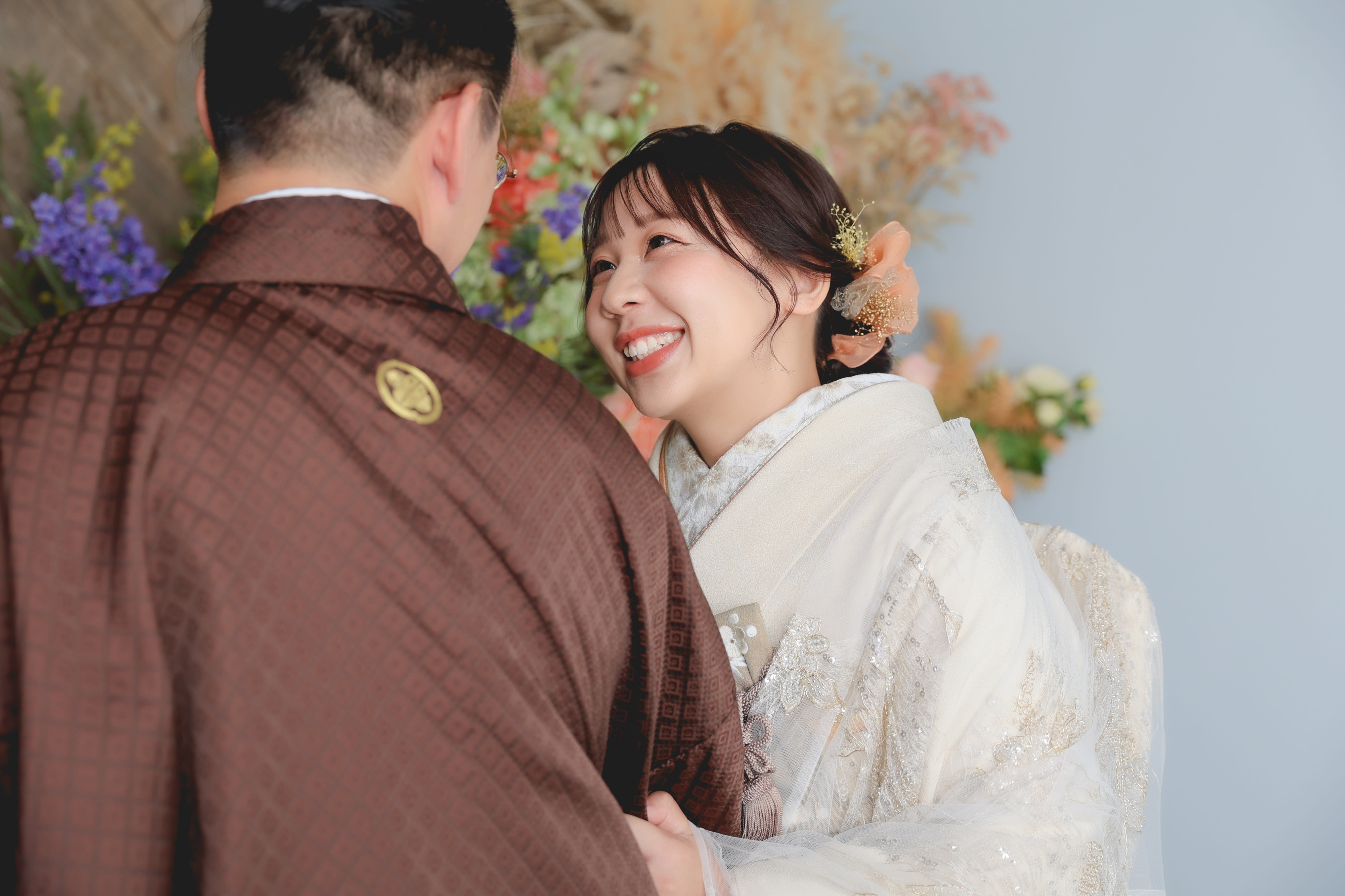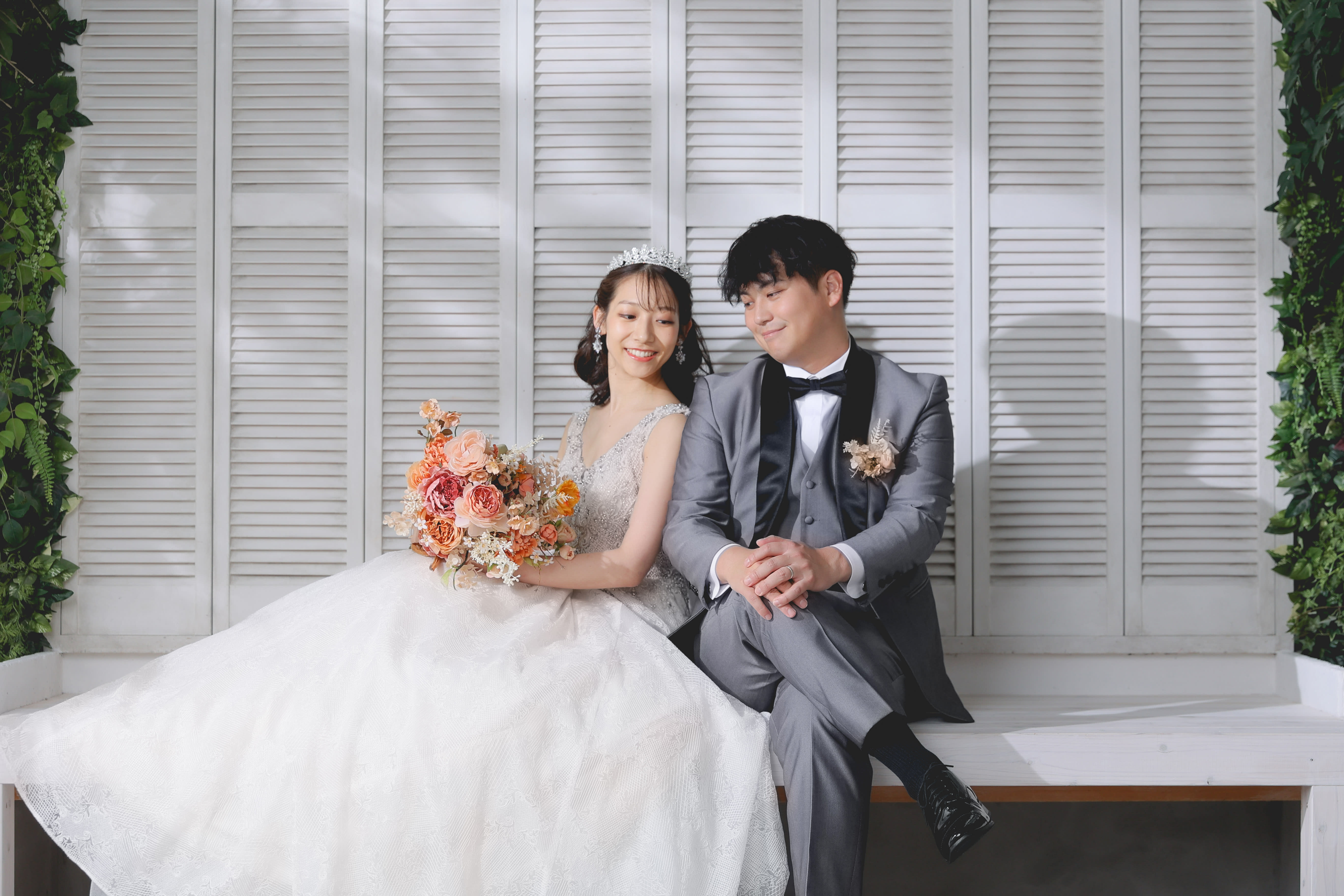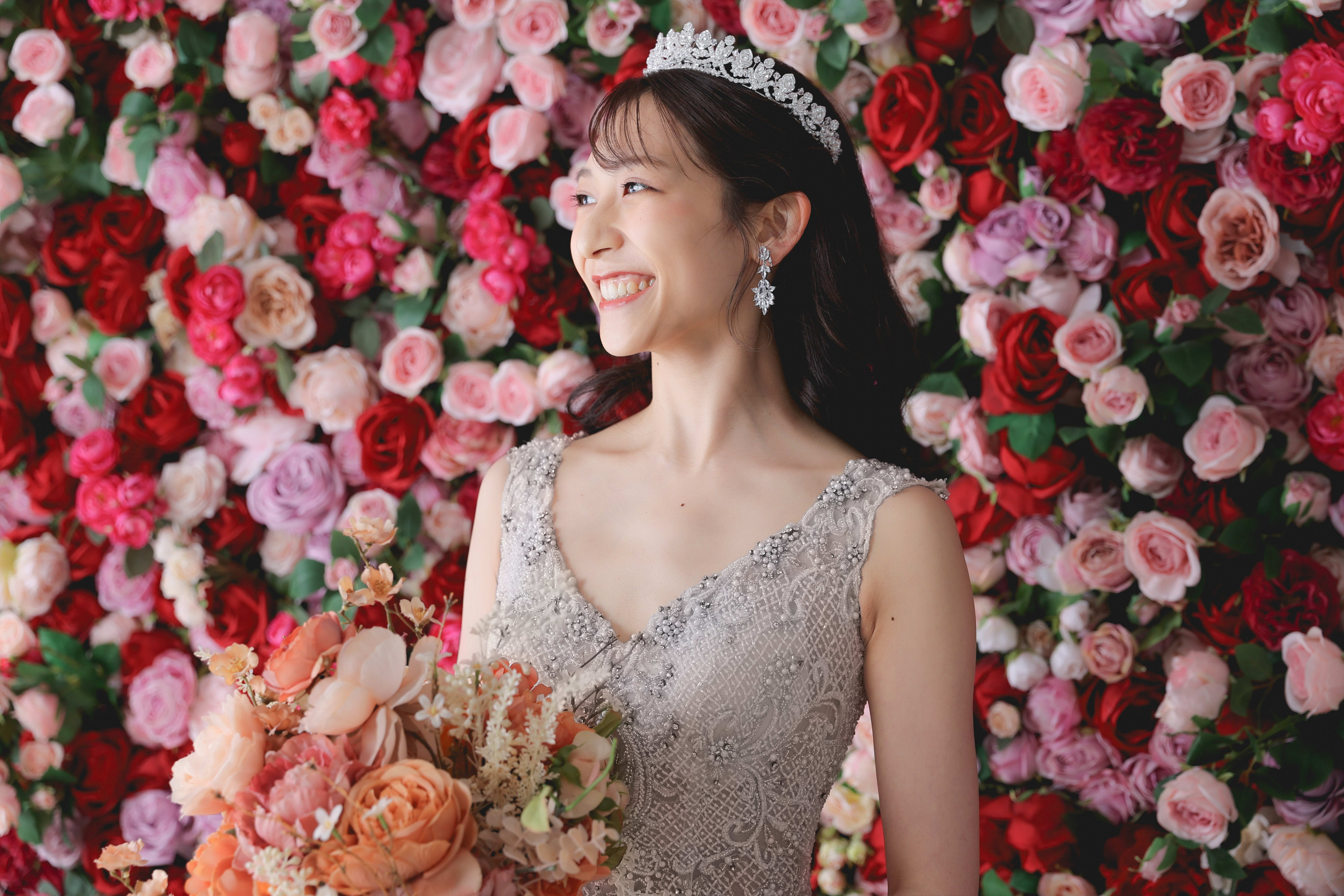 一面お花の壁が登場!新宿店ハウススタジオで撮影する洋装ウェディングフォトプラン