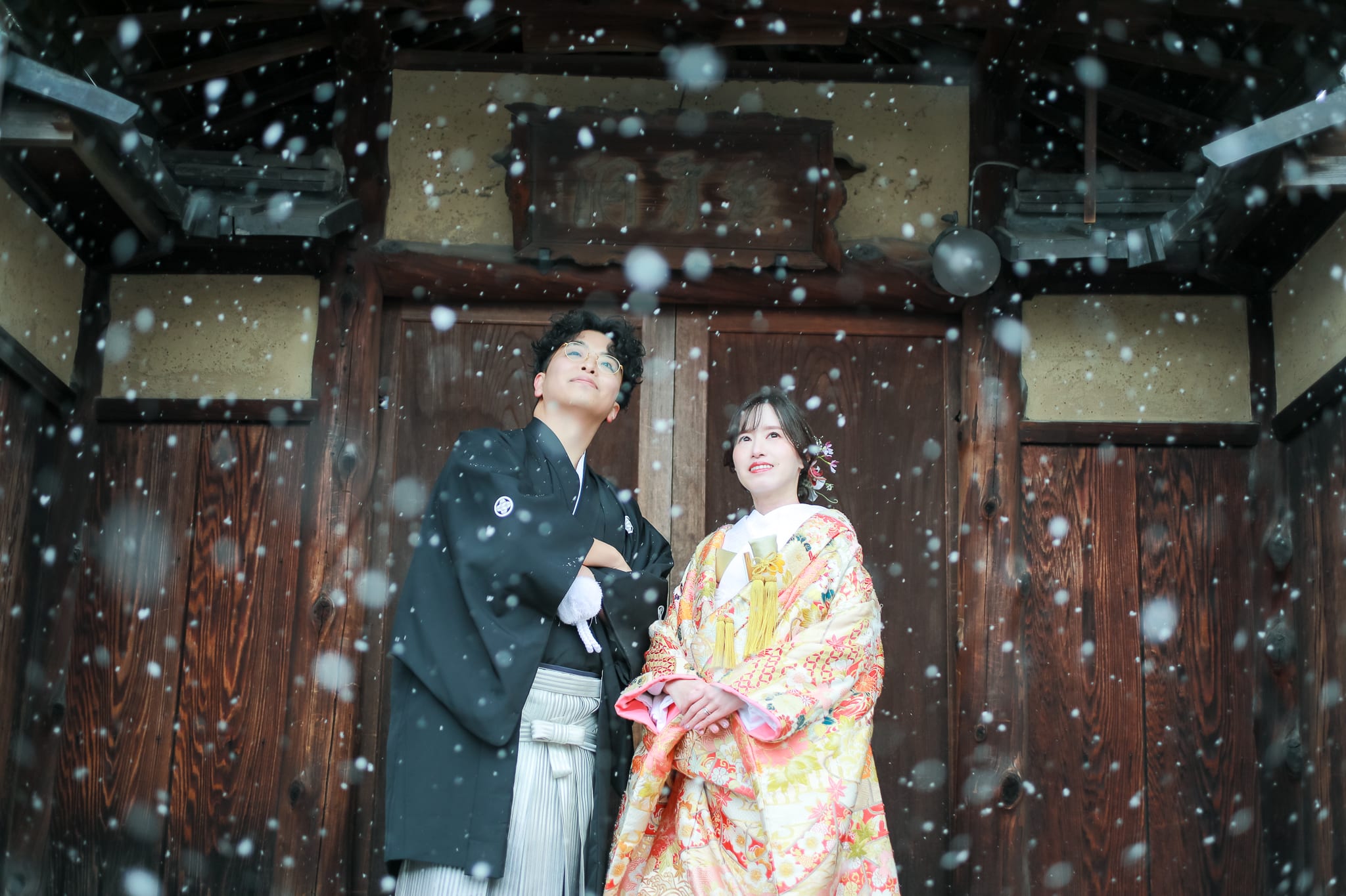 本格日本庭園を再現したスタジオで撮る 和装の結婚写真