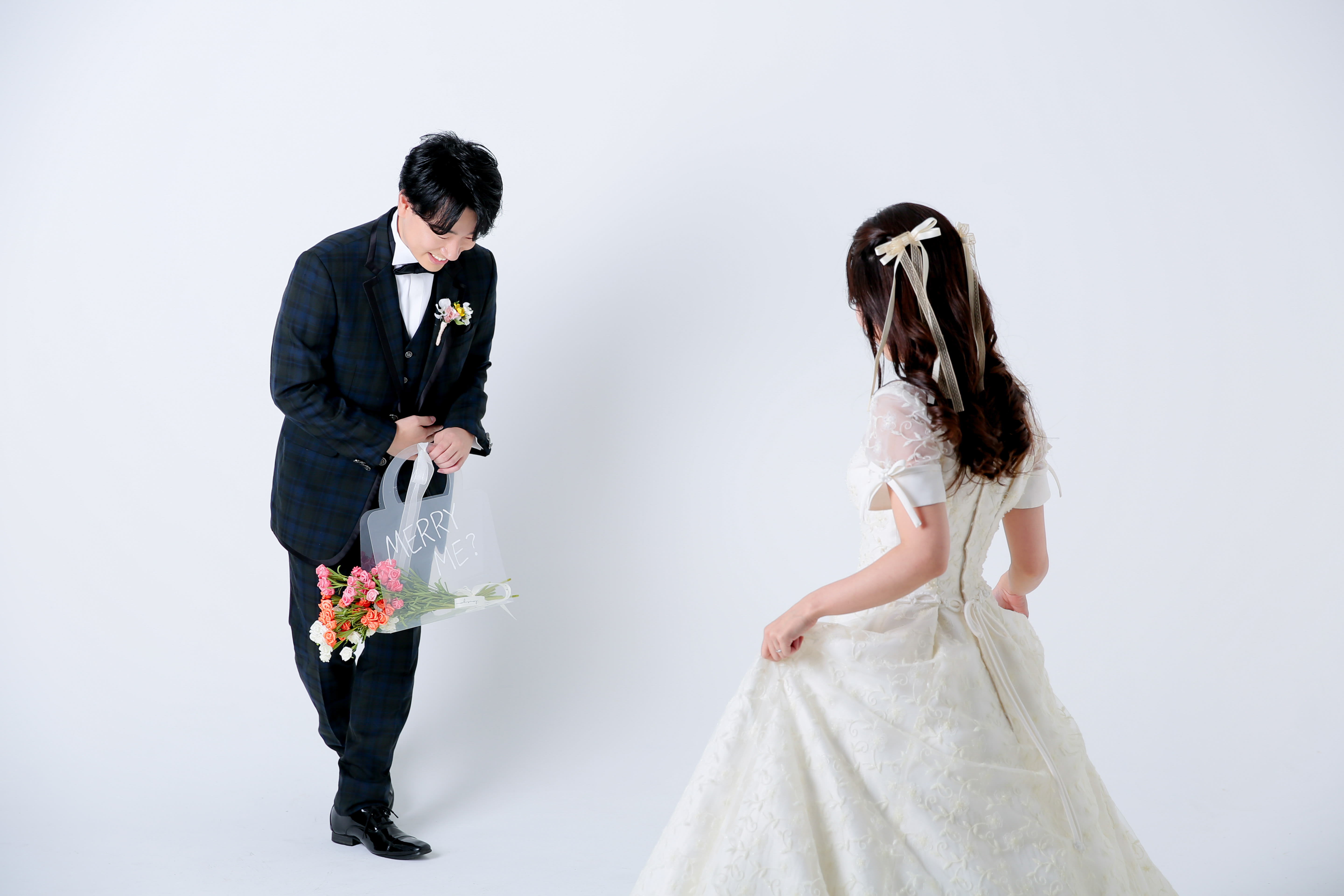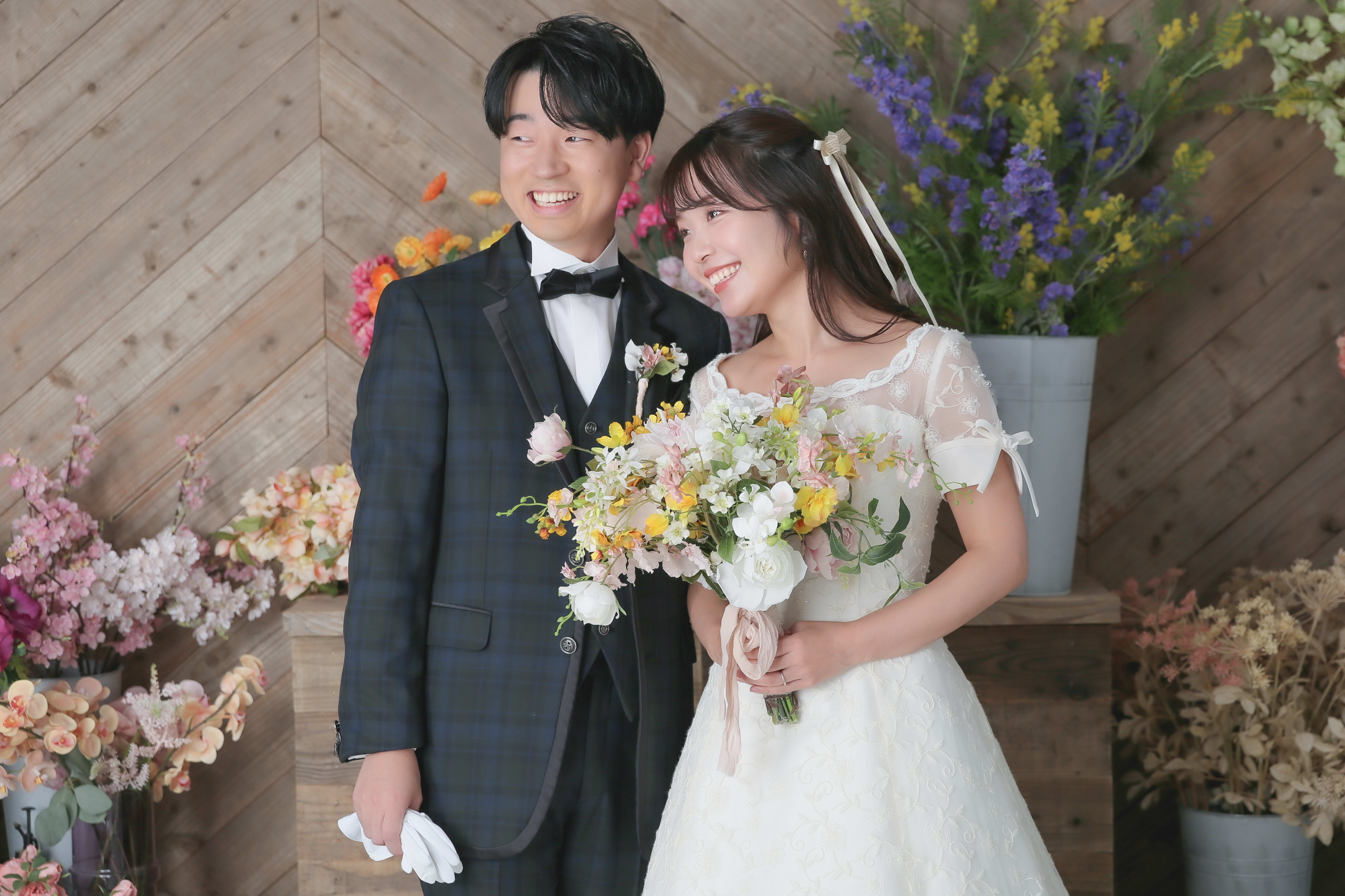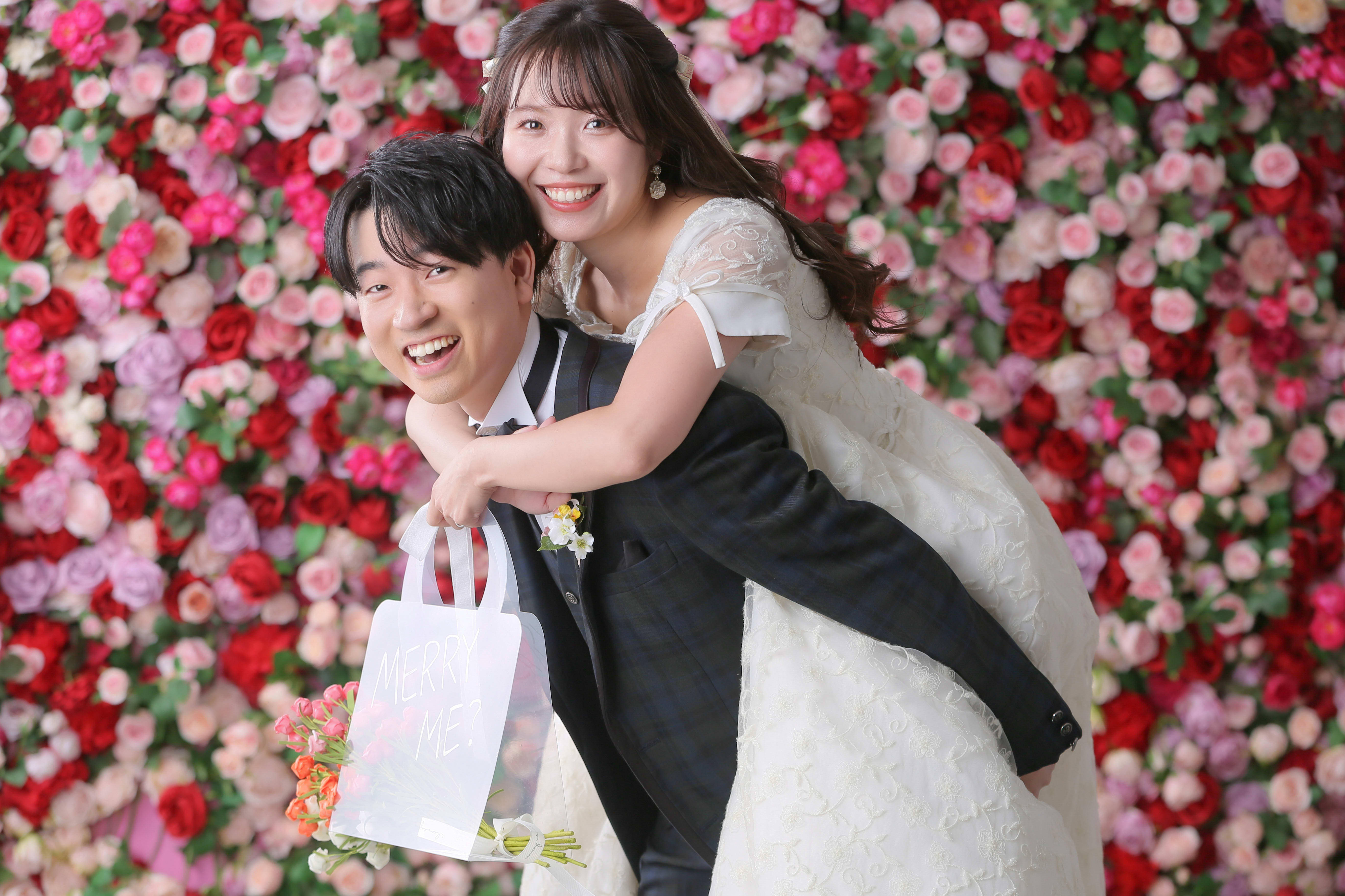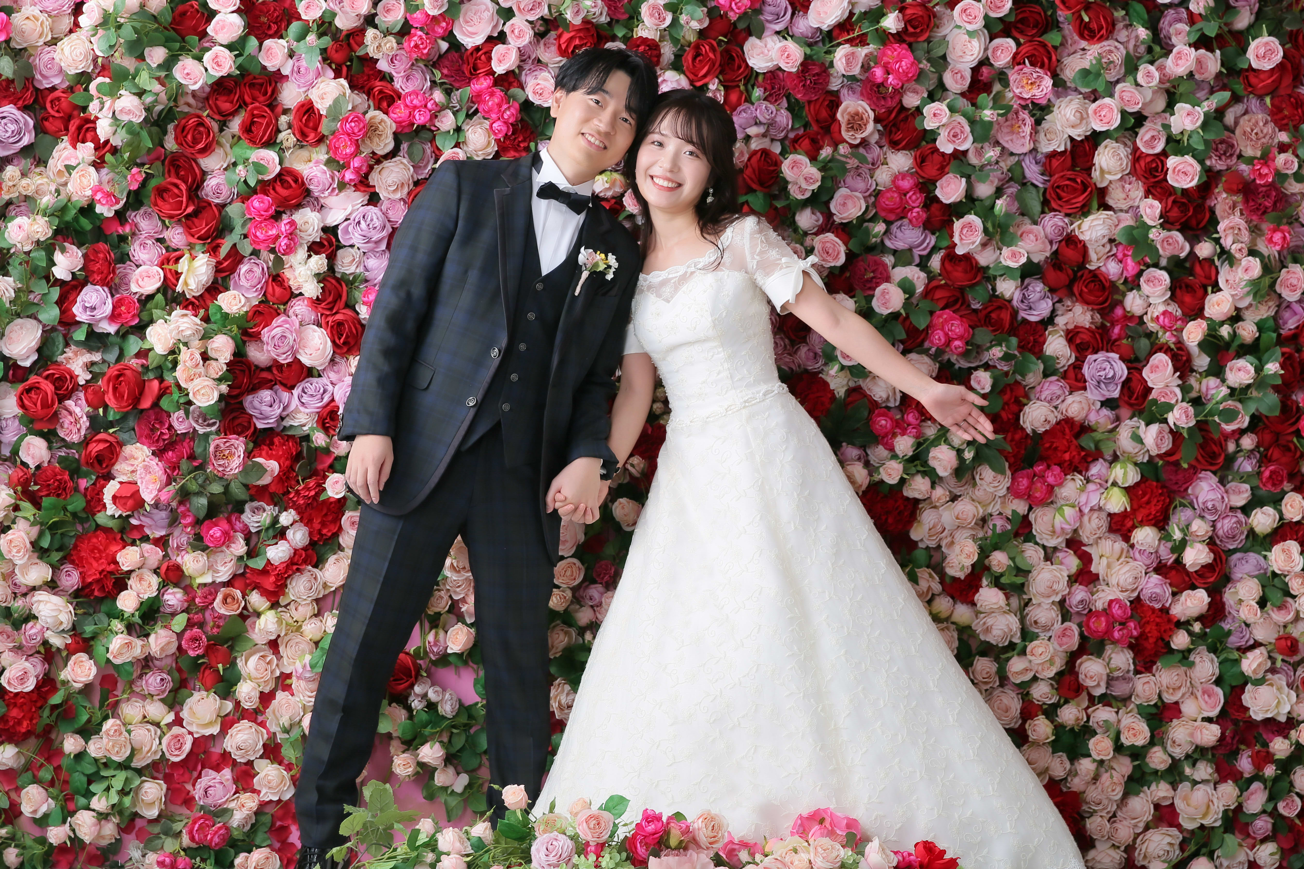 一面お花の壁が登場!新宿店ハウススタジオで撮影する洋装ウェディングフォトプラン