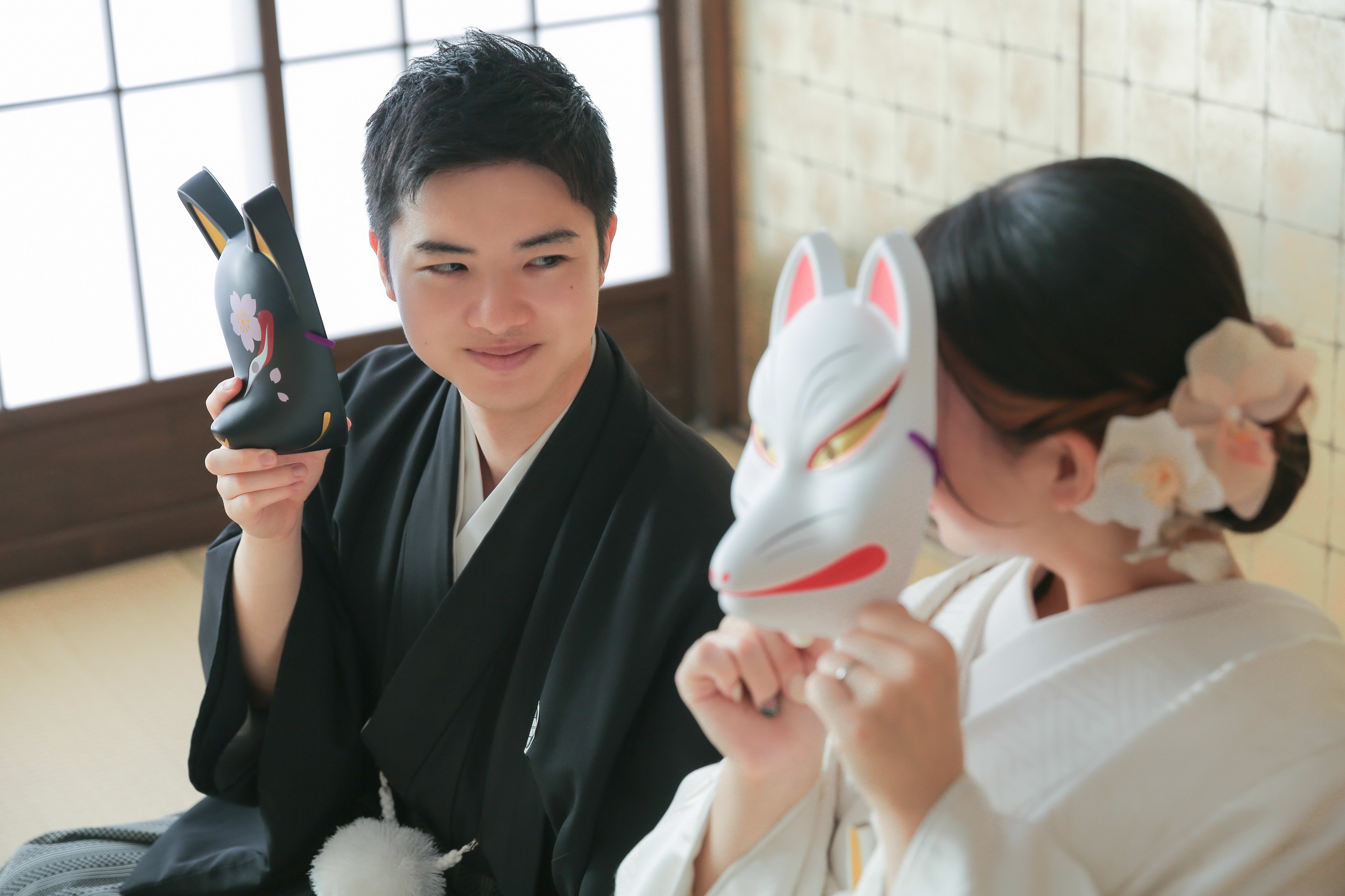 新宿店の本格的な茶室スタジオで撮影する、和装の結婚写真