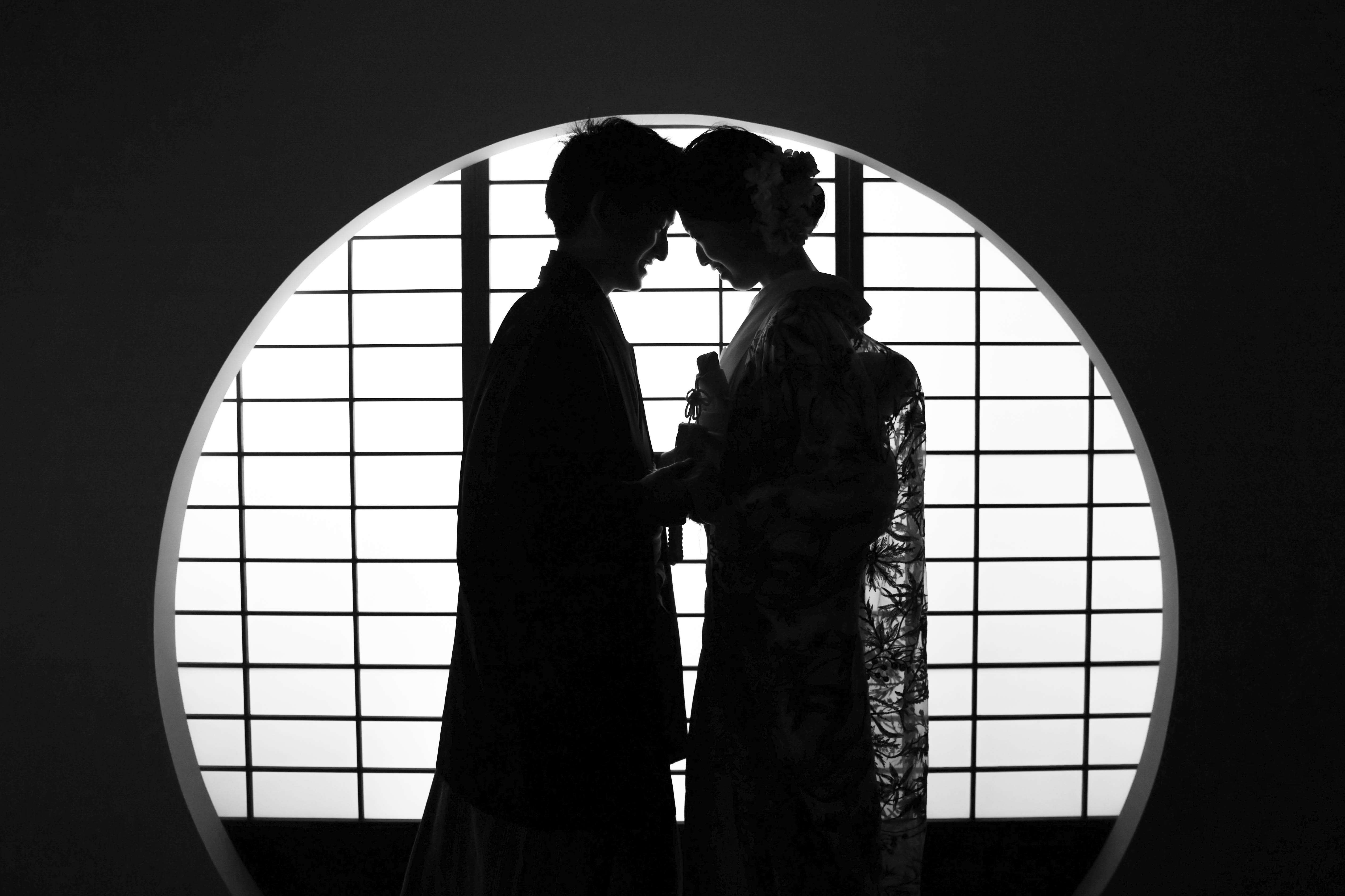 本格日本庭園を再現したスタジオで撮る 和装の結婚写真